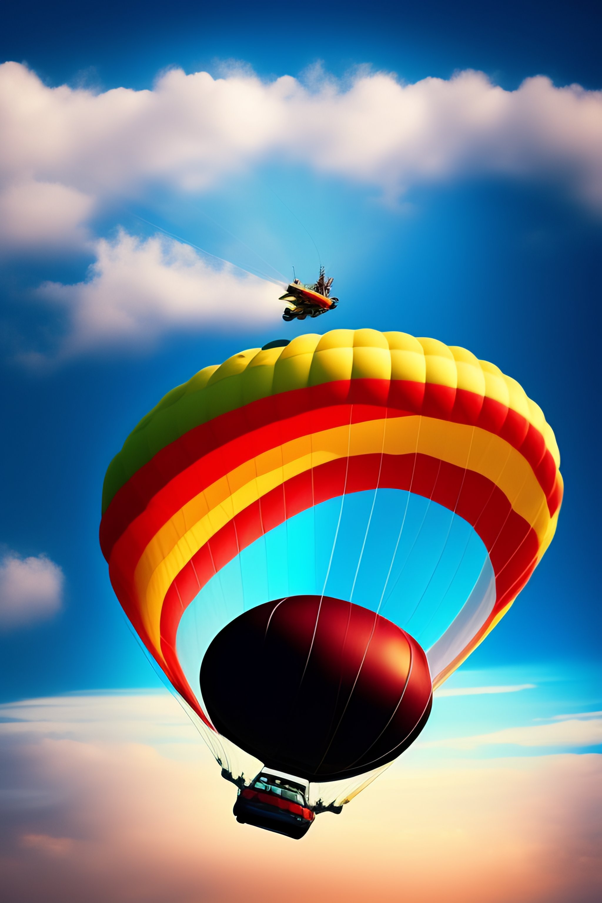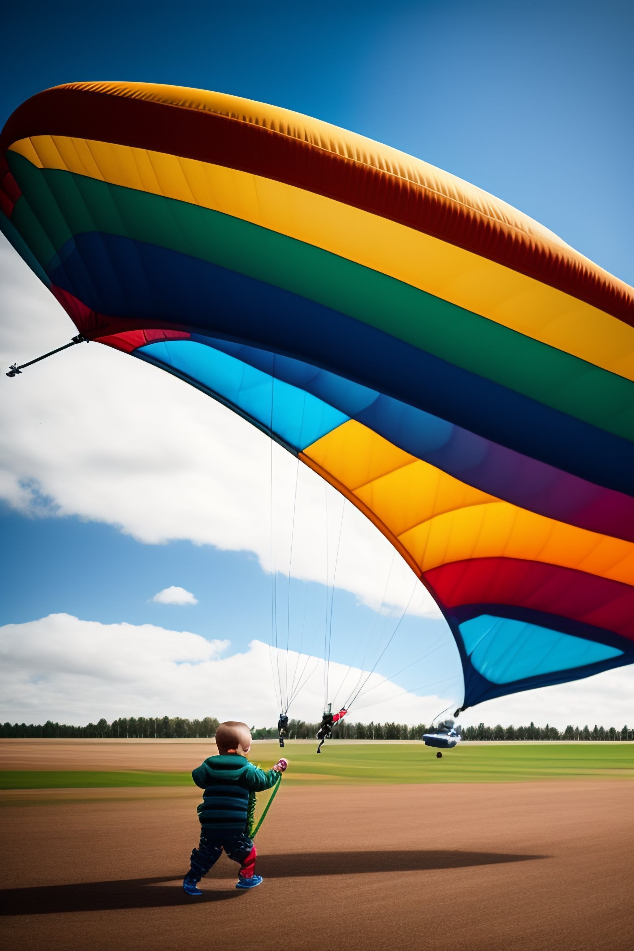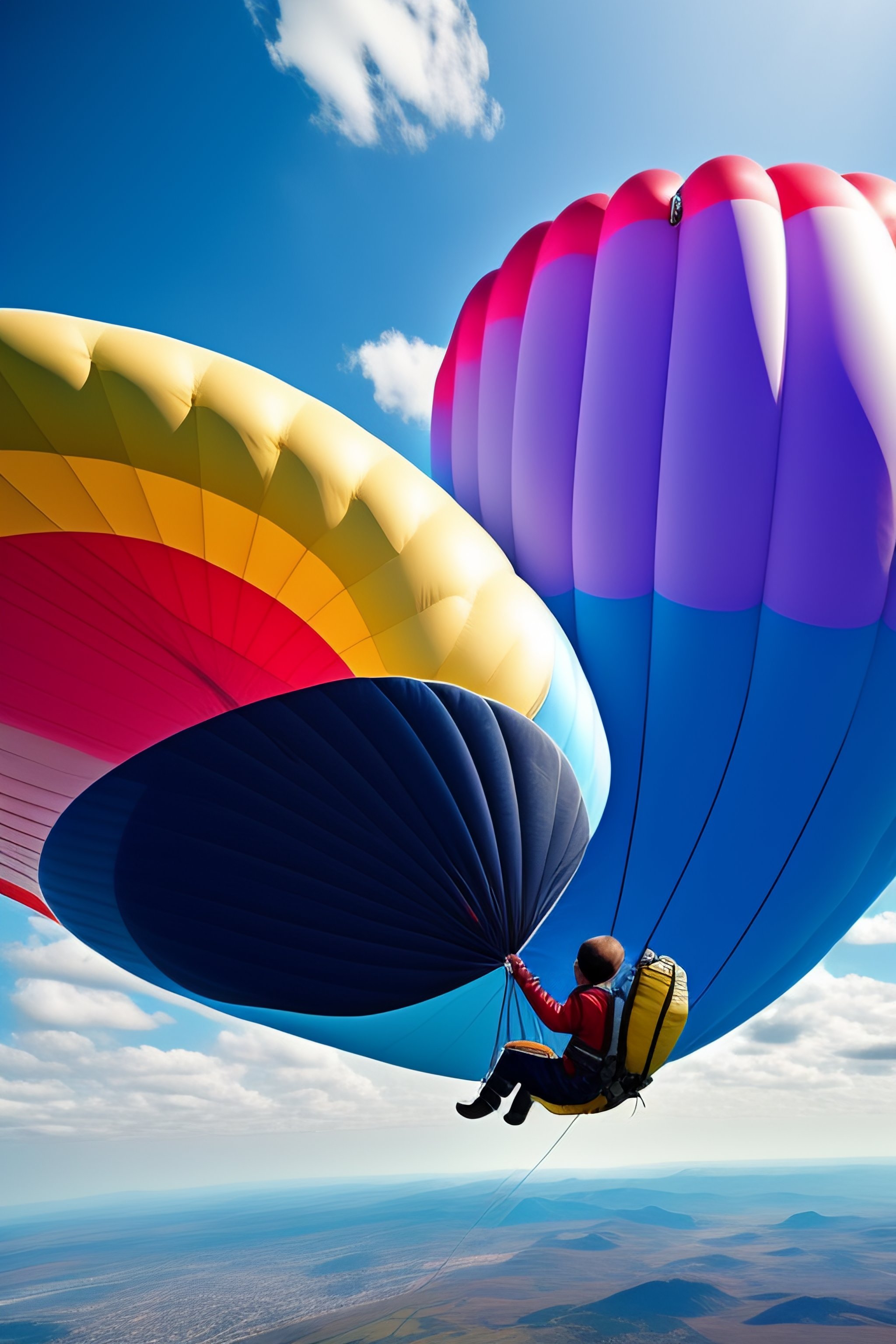 A child parachutes out of an airplane