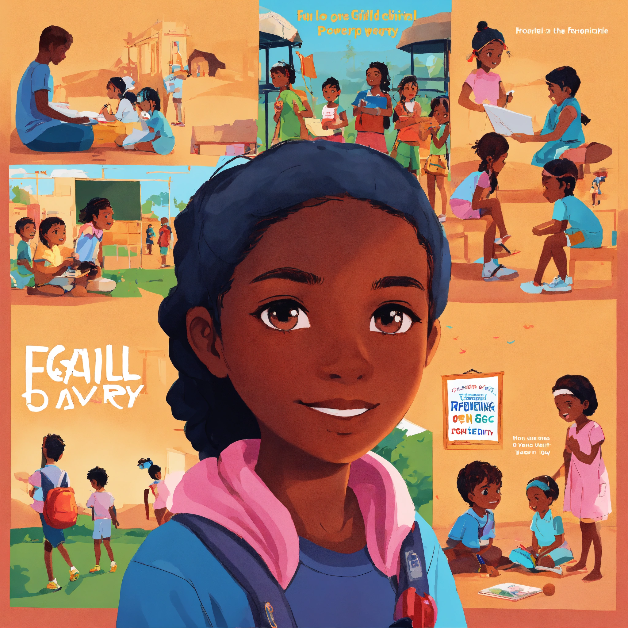 Real documentary, illustration highlighting the importance of equal opportunities for girls and boys in overcoming child poverty. show girls and boys of different ages engaged in various activities like studying, playing sports, and pursuing careers, illustrating the freedom attained through education.