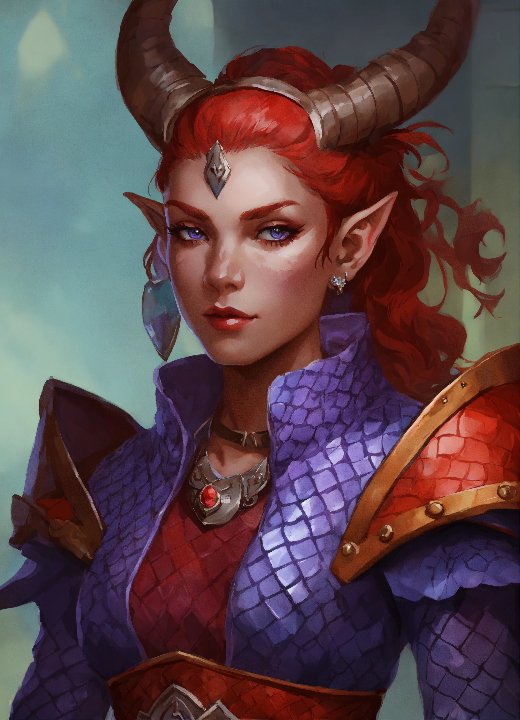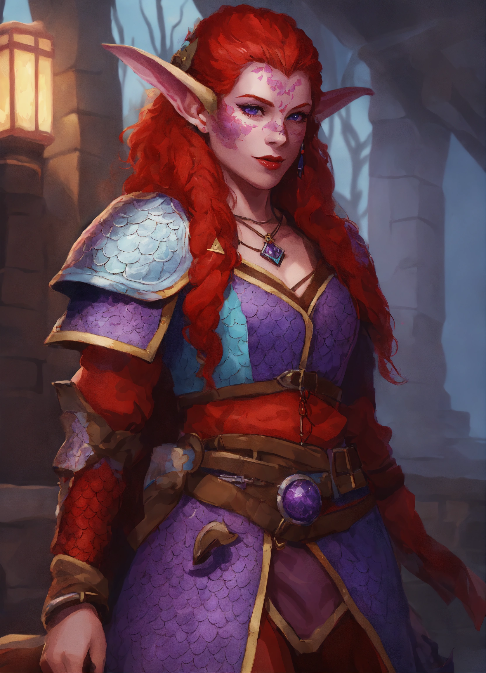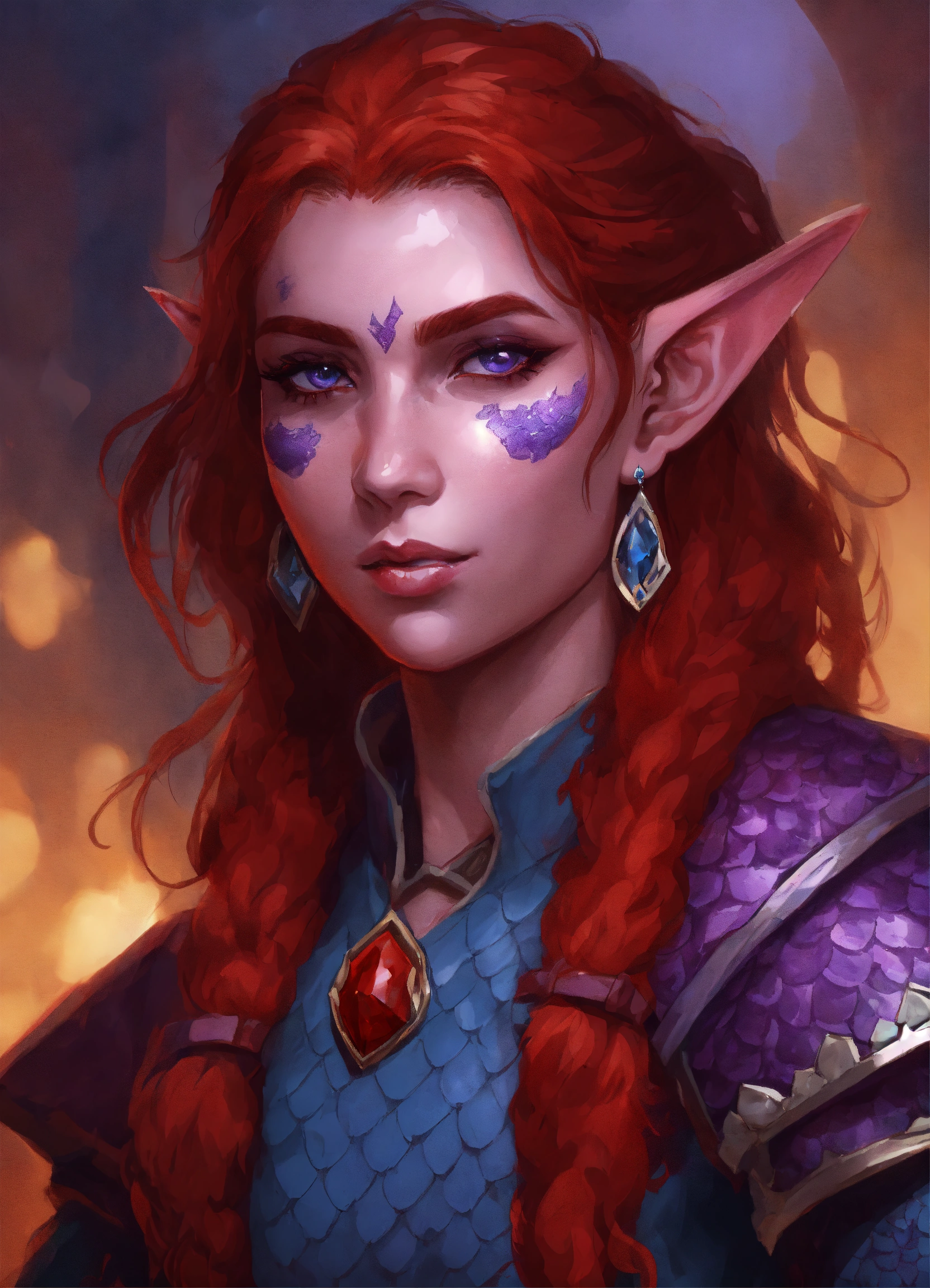 she has red skin with some patches of blueish purple dragon scales