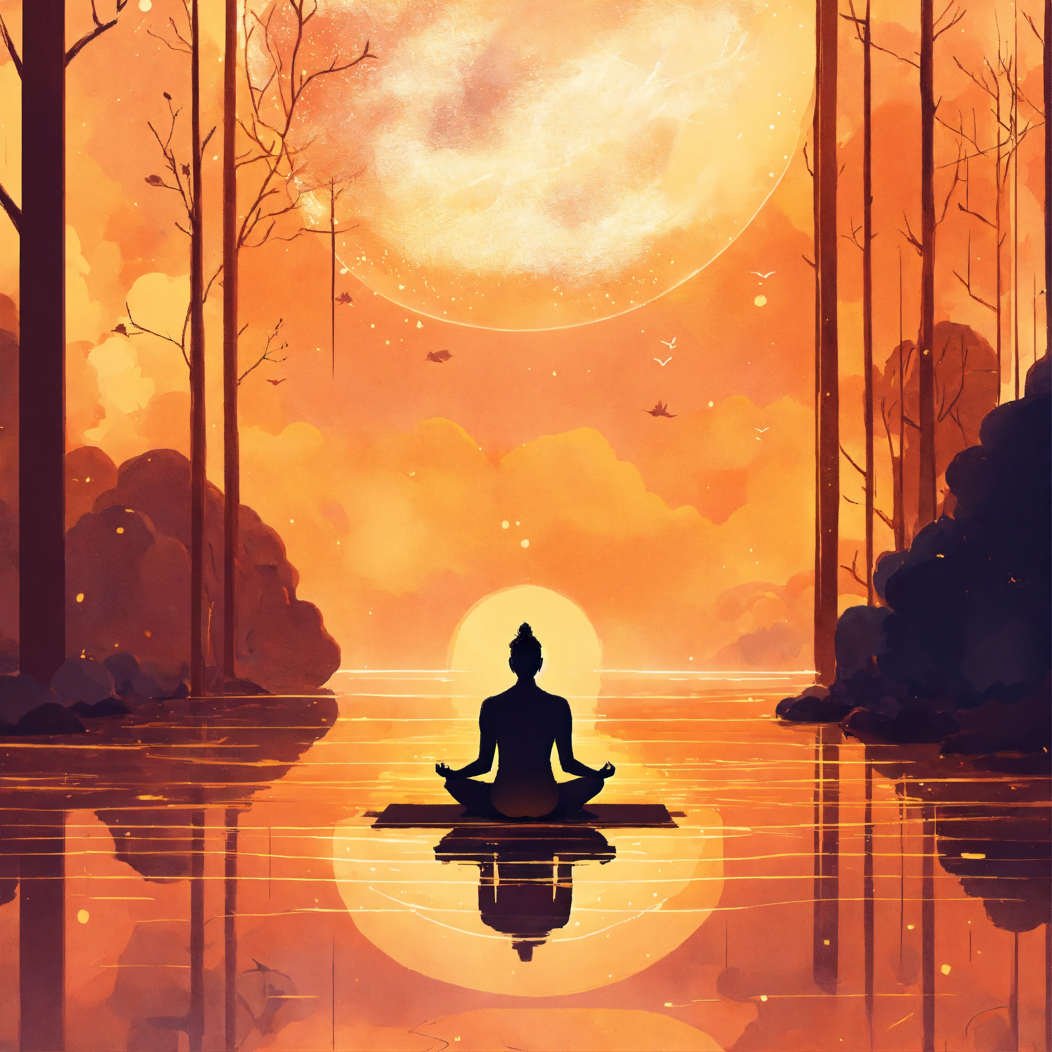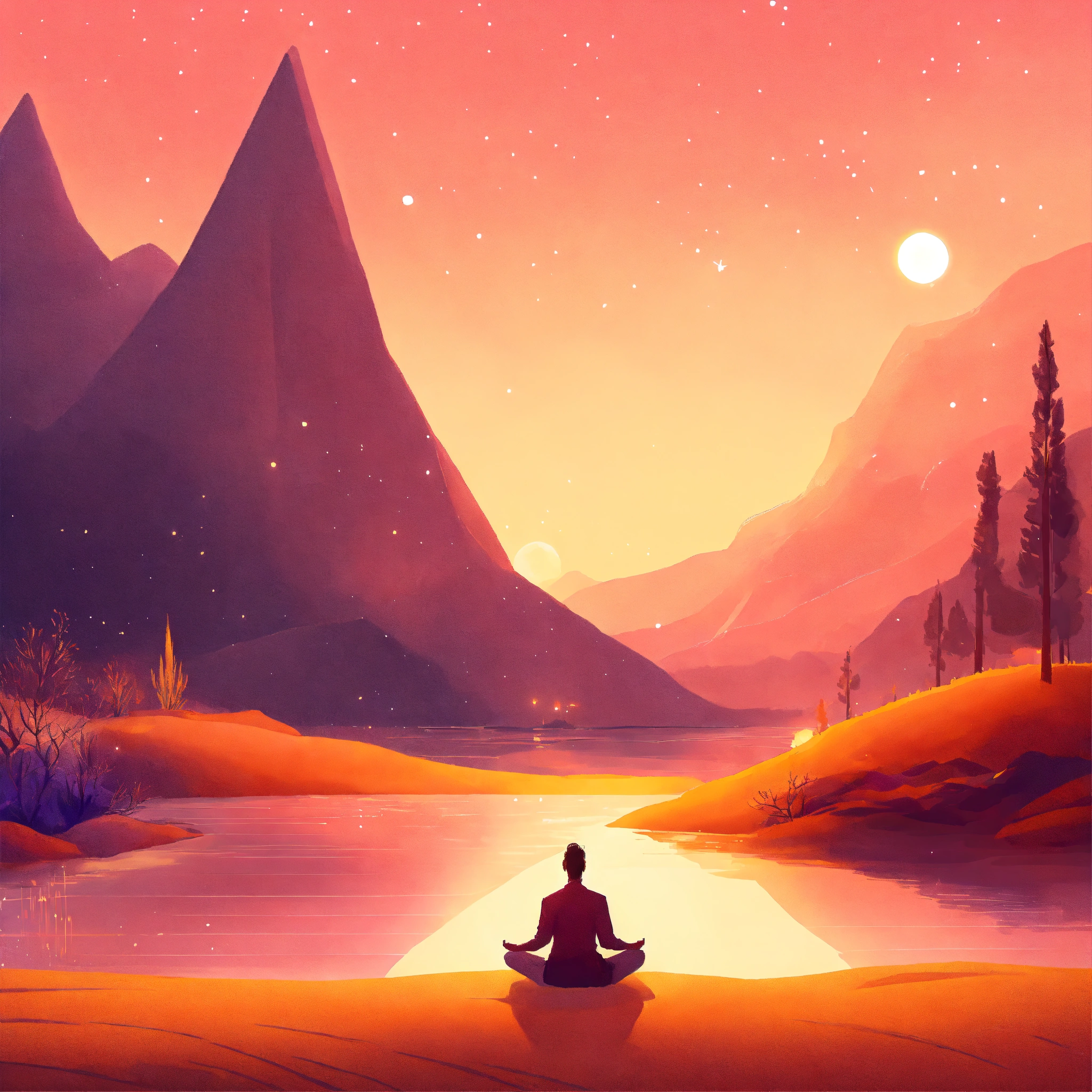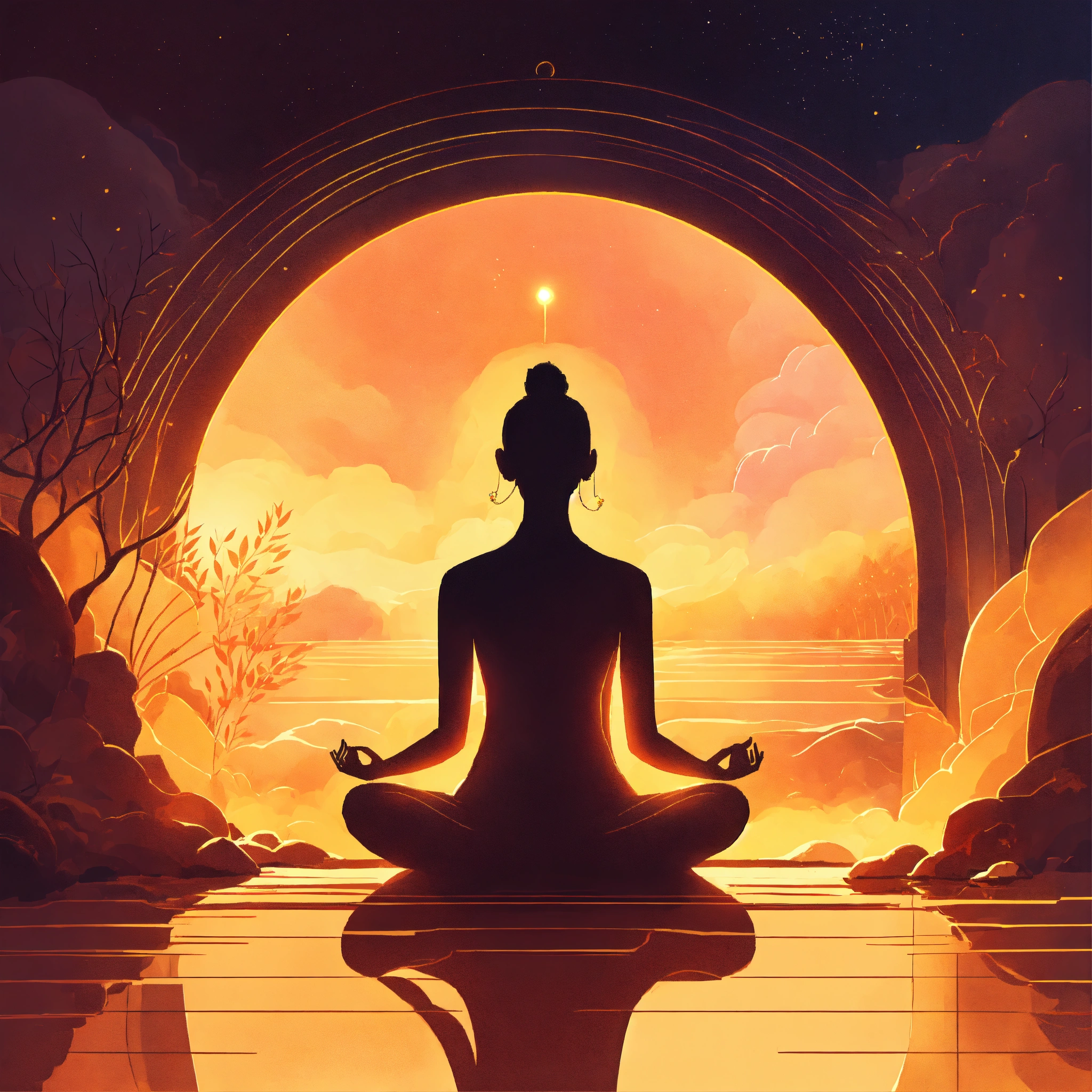 Meditation, i am presence, light, illumination, golden light, divine, sci fi, abstract, nature cozy webpage background hero image for adorable platform modern minimalist illustration