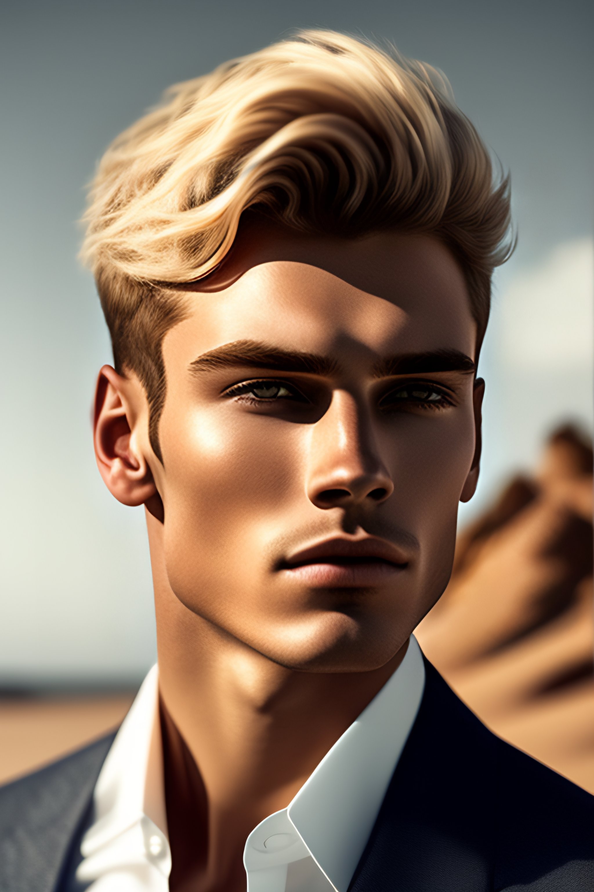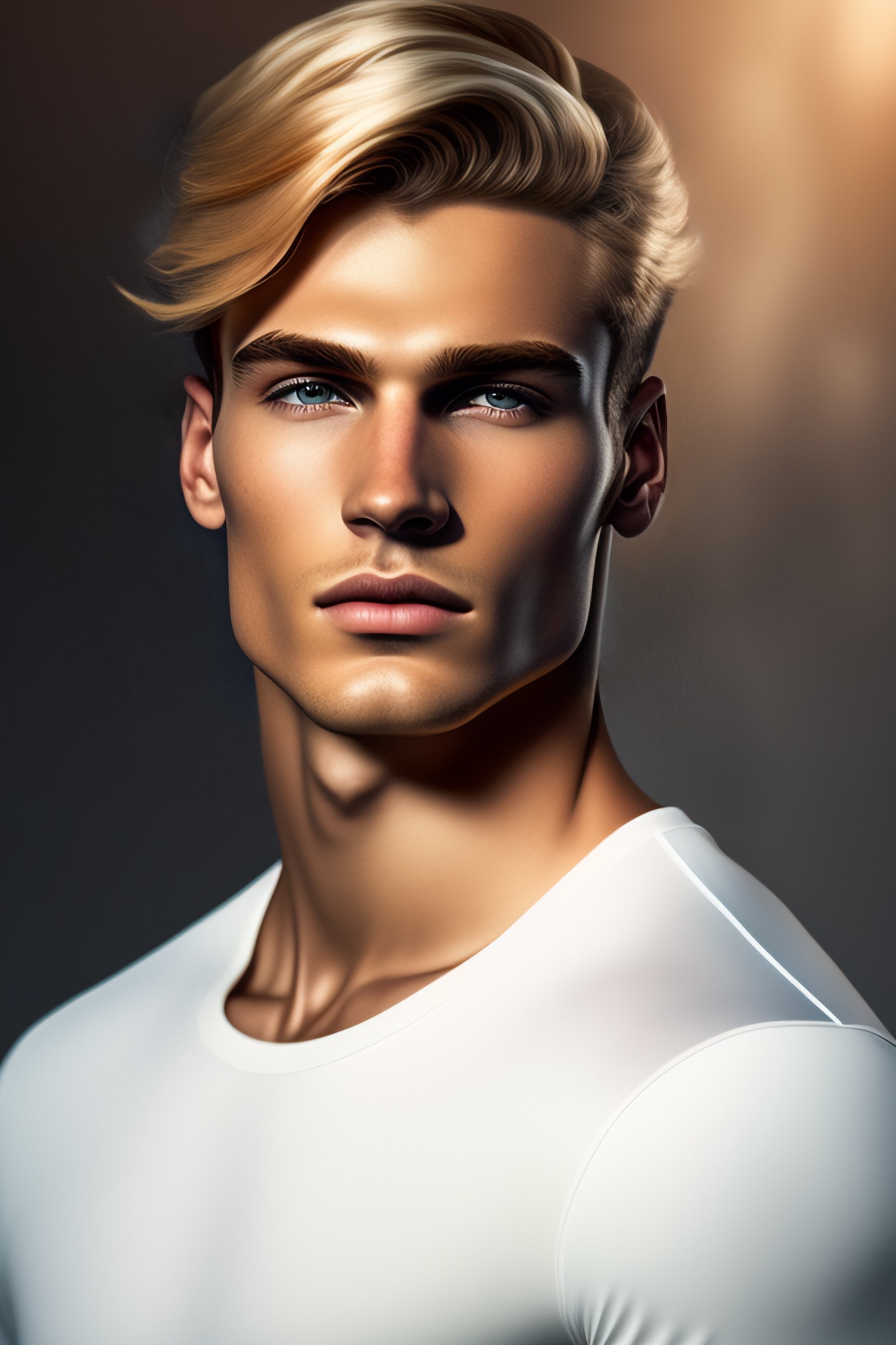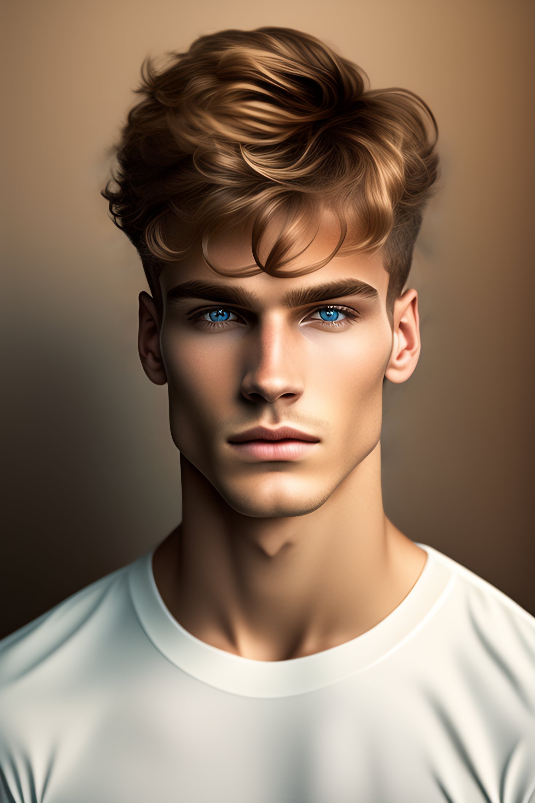 Visage jeune homme inquiet blond cheveux courts yeux marrons hétéro