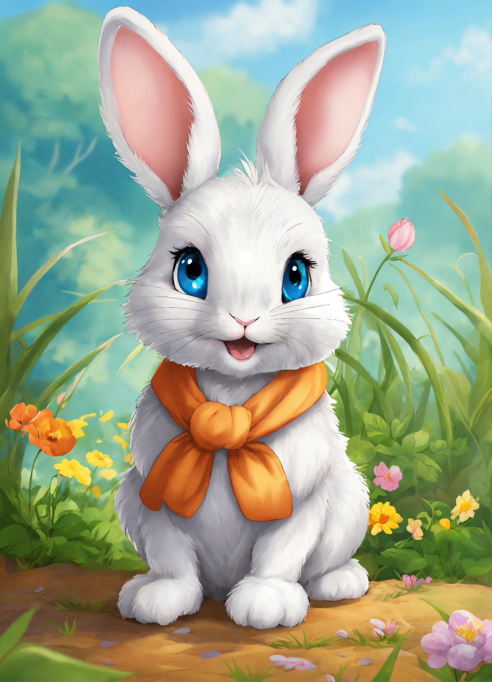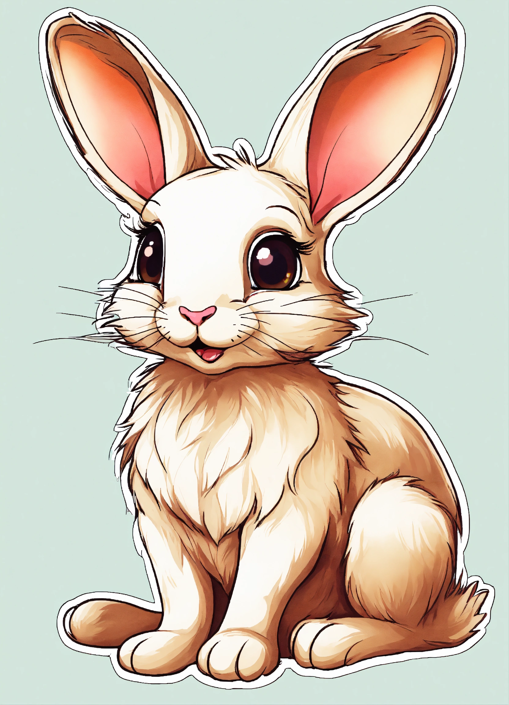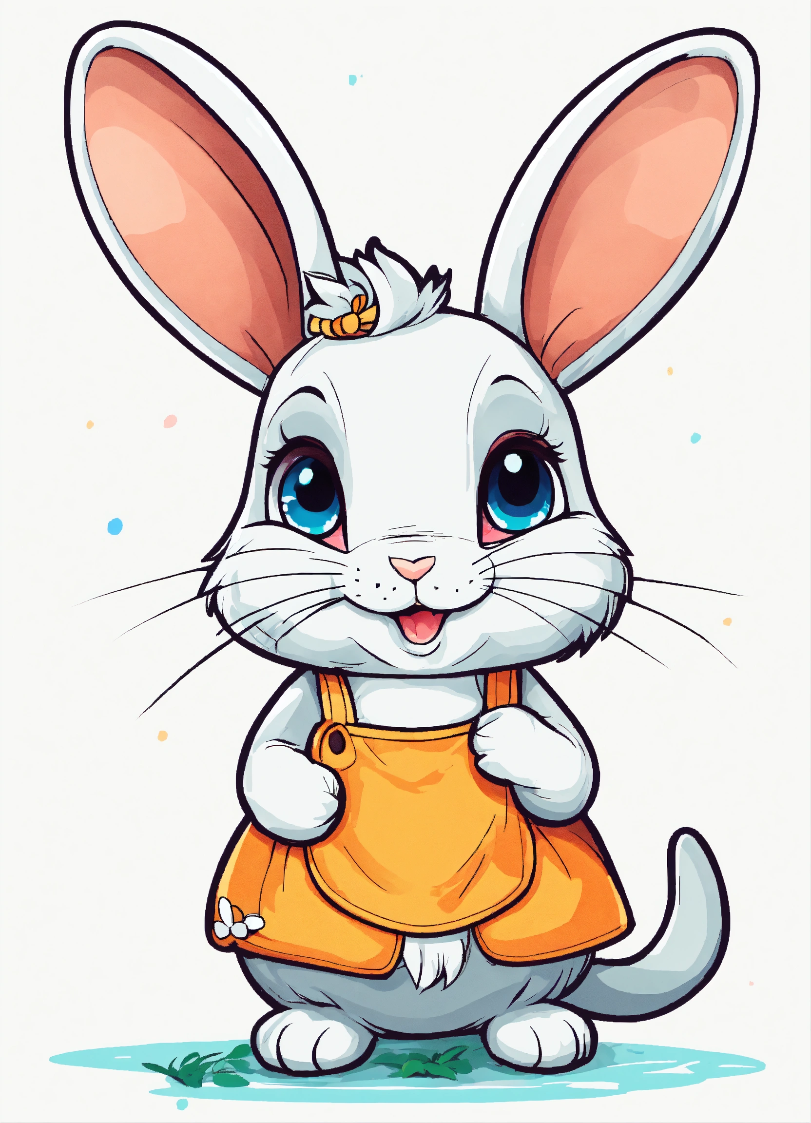Generate a cute little rabbit, super eye-catching illustration, resolution, cartoon-sticker style with clear lines on a pure white background suitable for a children's coloring book.