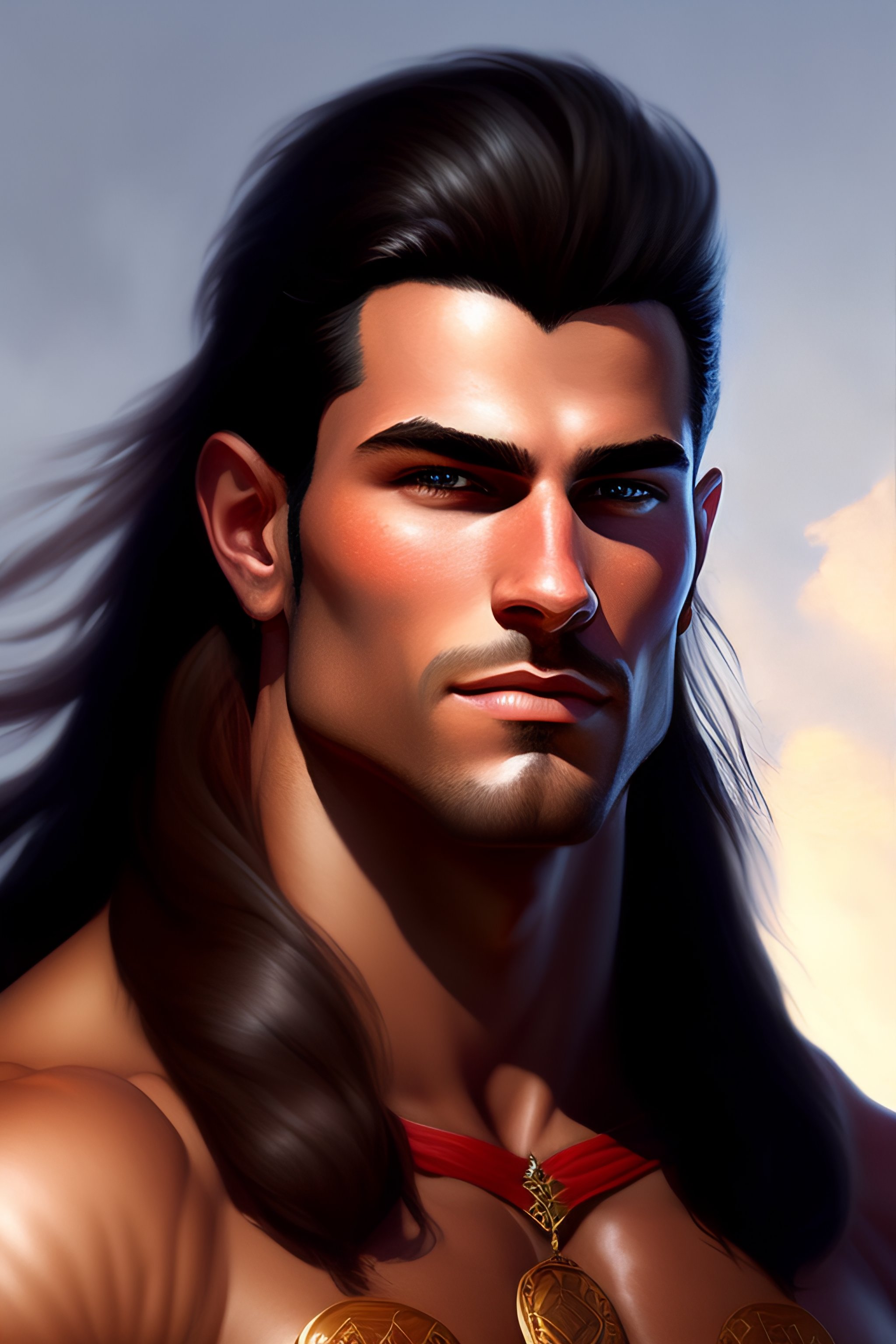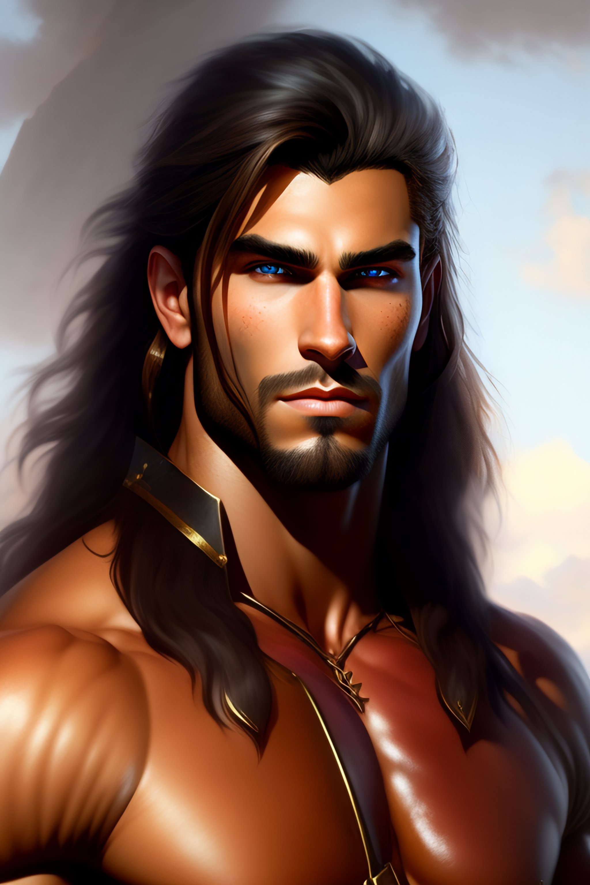 A _ fantasy _ style _ portrait _ painting _ of barbarian, young man, no beard, long hair black, shredded, hills, oil _ painting _ unreal _ 5 _ daz. _ rpg _ portrait _ extremely _ detailed _ artgerm _ greg _ rutkowski _ greg