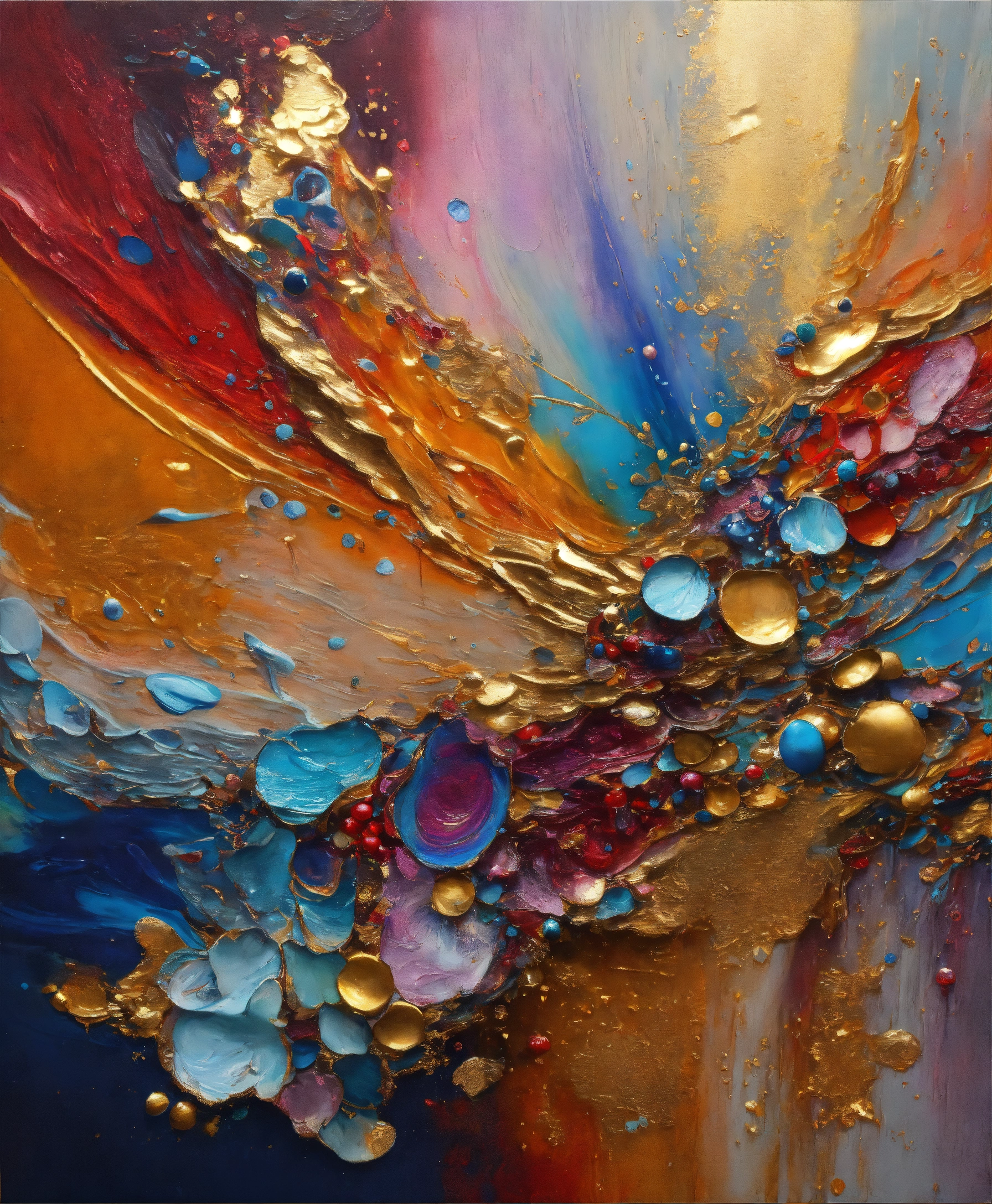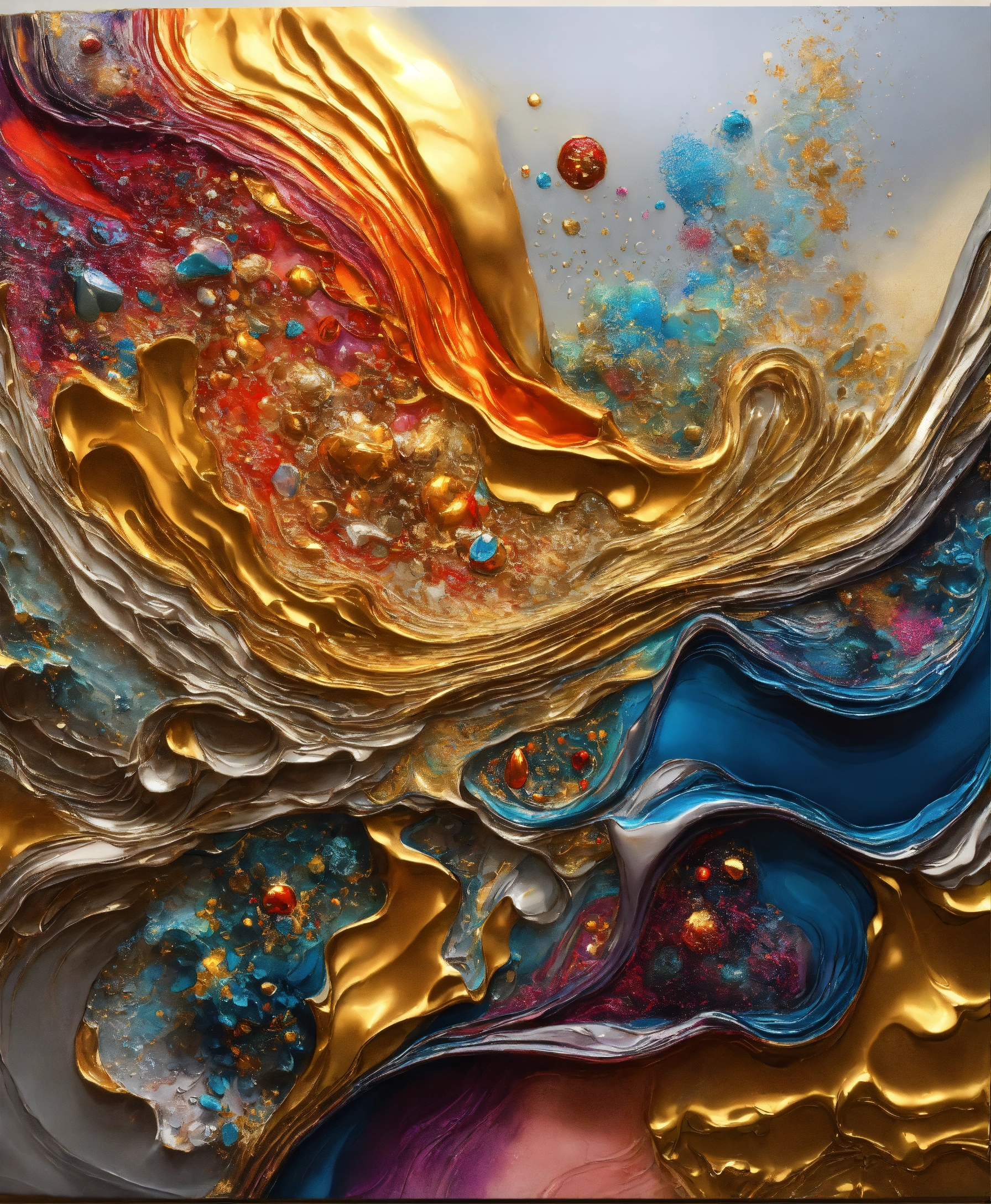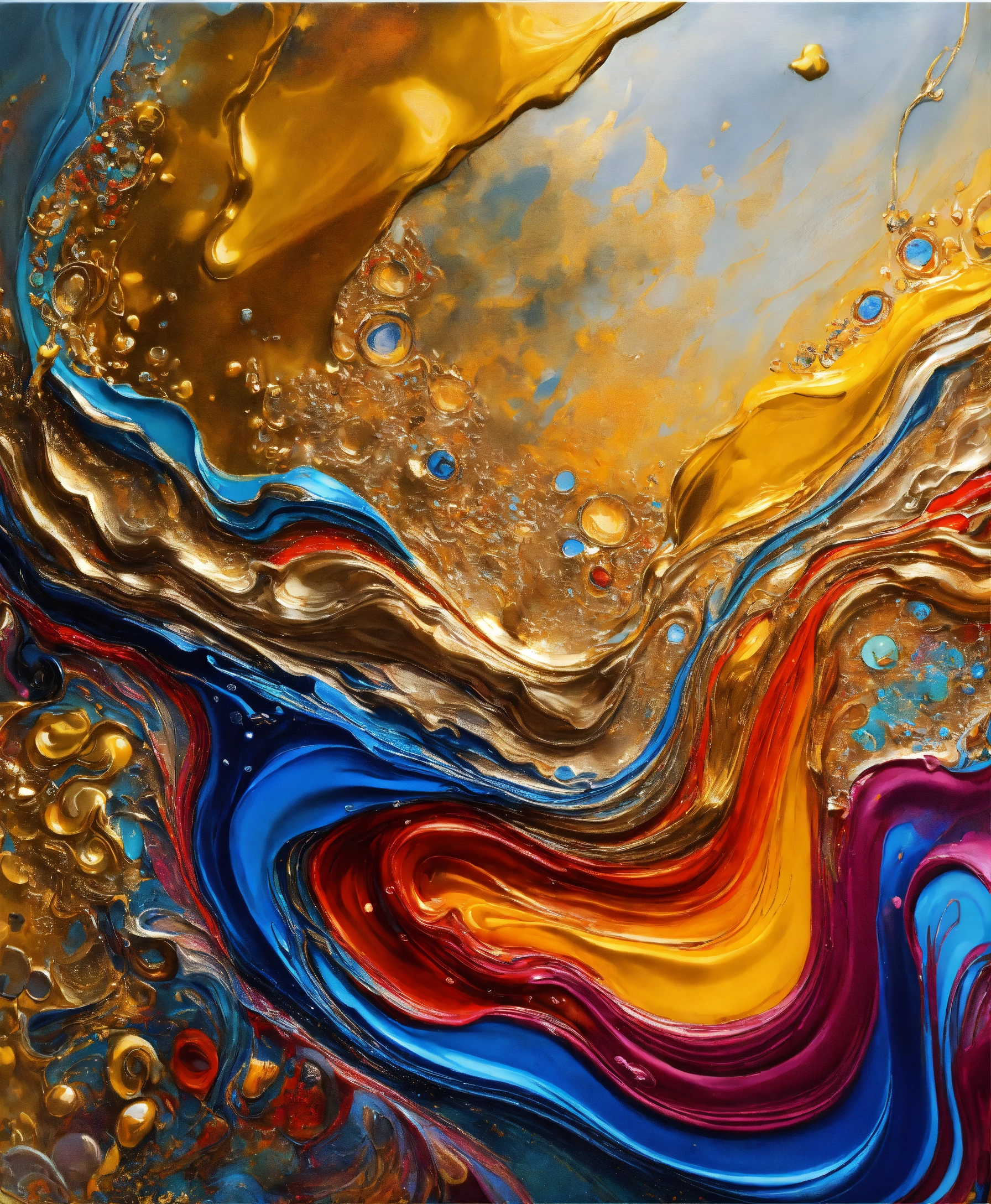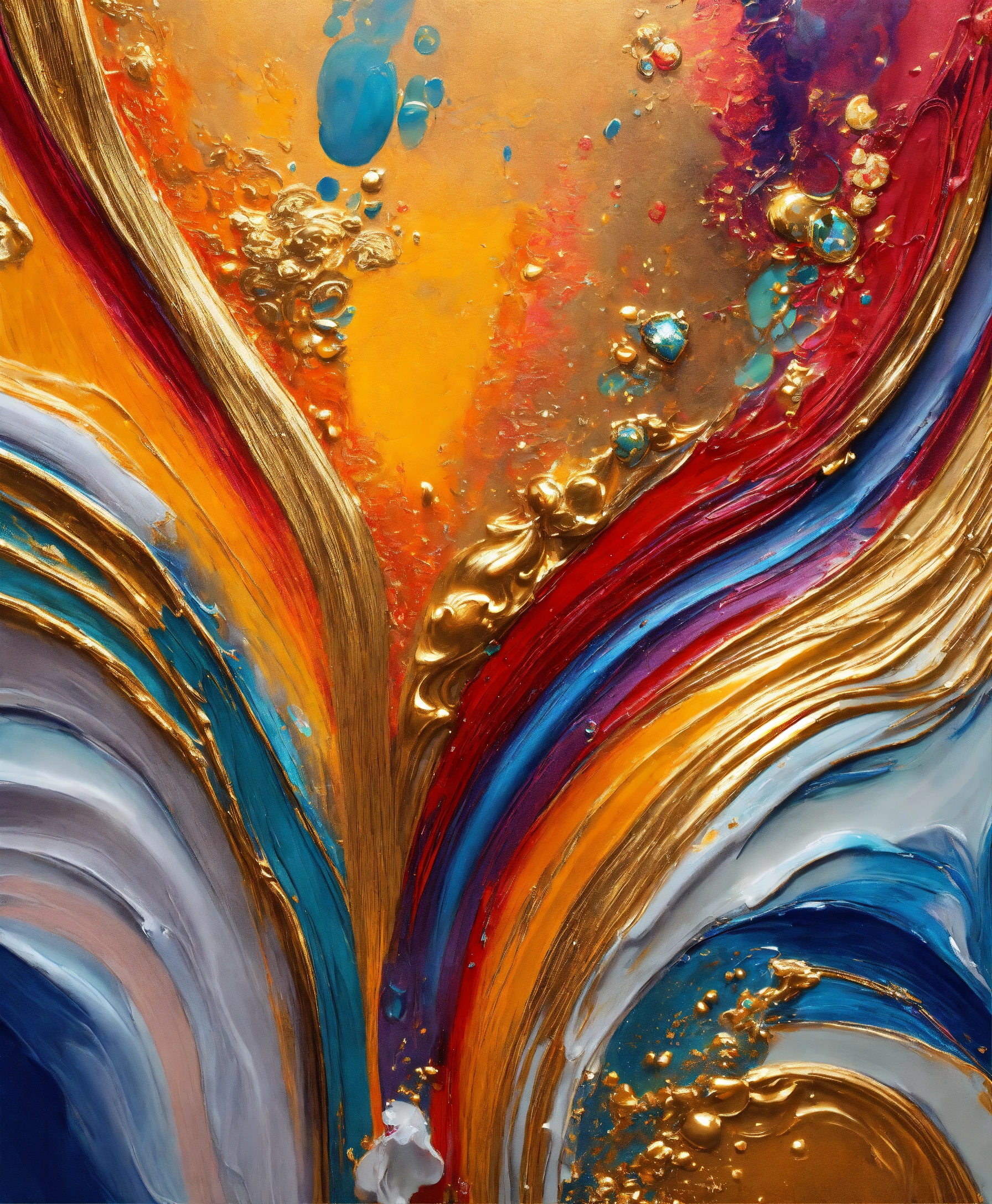 Colorful abstract painting oil and water complex complicated bright vivid colors beautiful opulent wealthy intricate all hues magnificent amazing sublime delicate hyperdetailed masterpiece metallic sheen elaborate awesome 24k gold and silver trim 8k