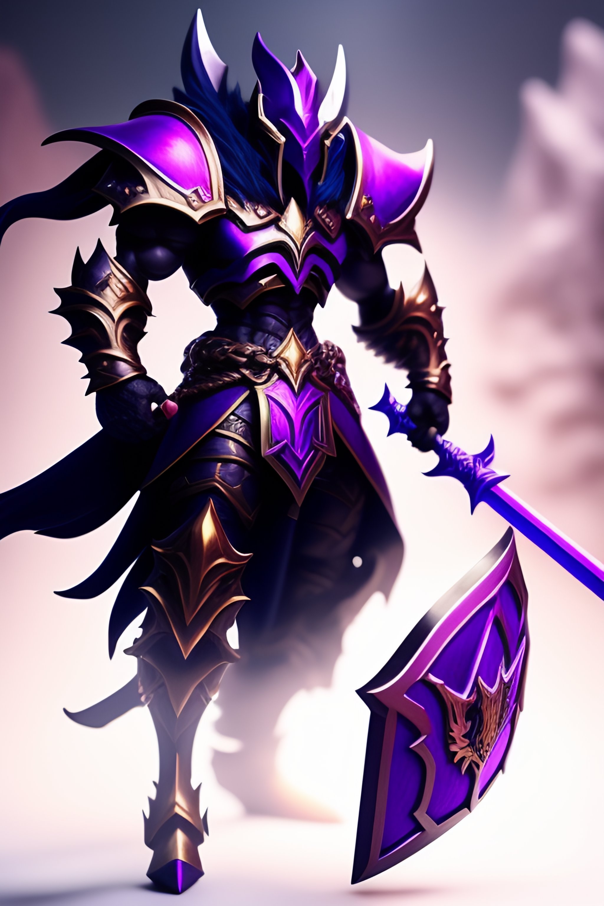 Mordekaiser from league of legends using dark armor, using purple sword, using skull shield, full body