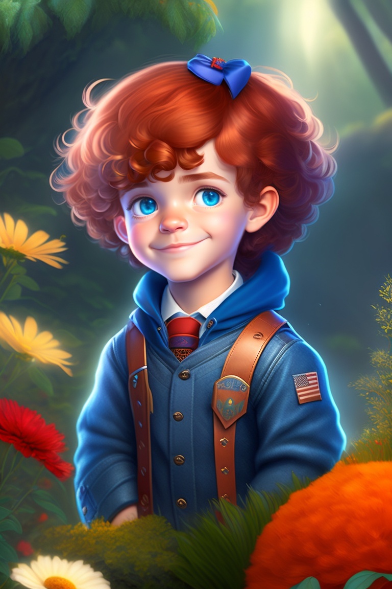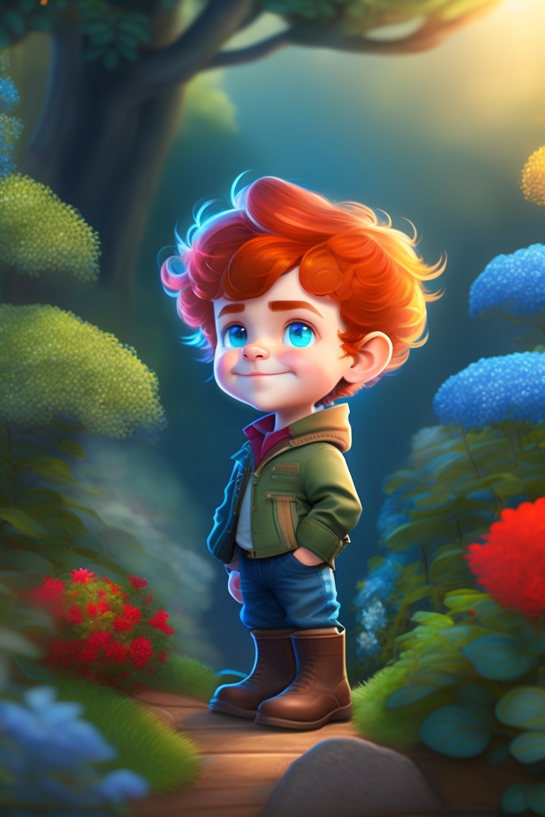A curious little kid named max. max had bright blue eyes, curly red hair, and a heart full of adventure. he loved exploring the world around him, but more than anything, he loved his magical garden