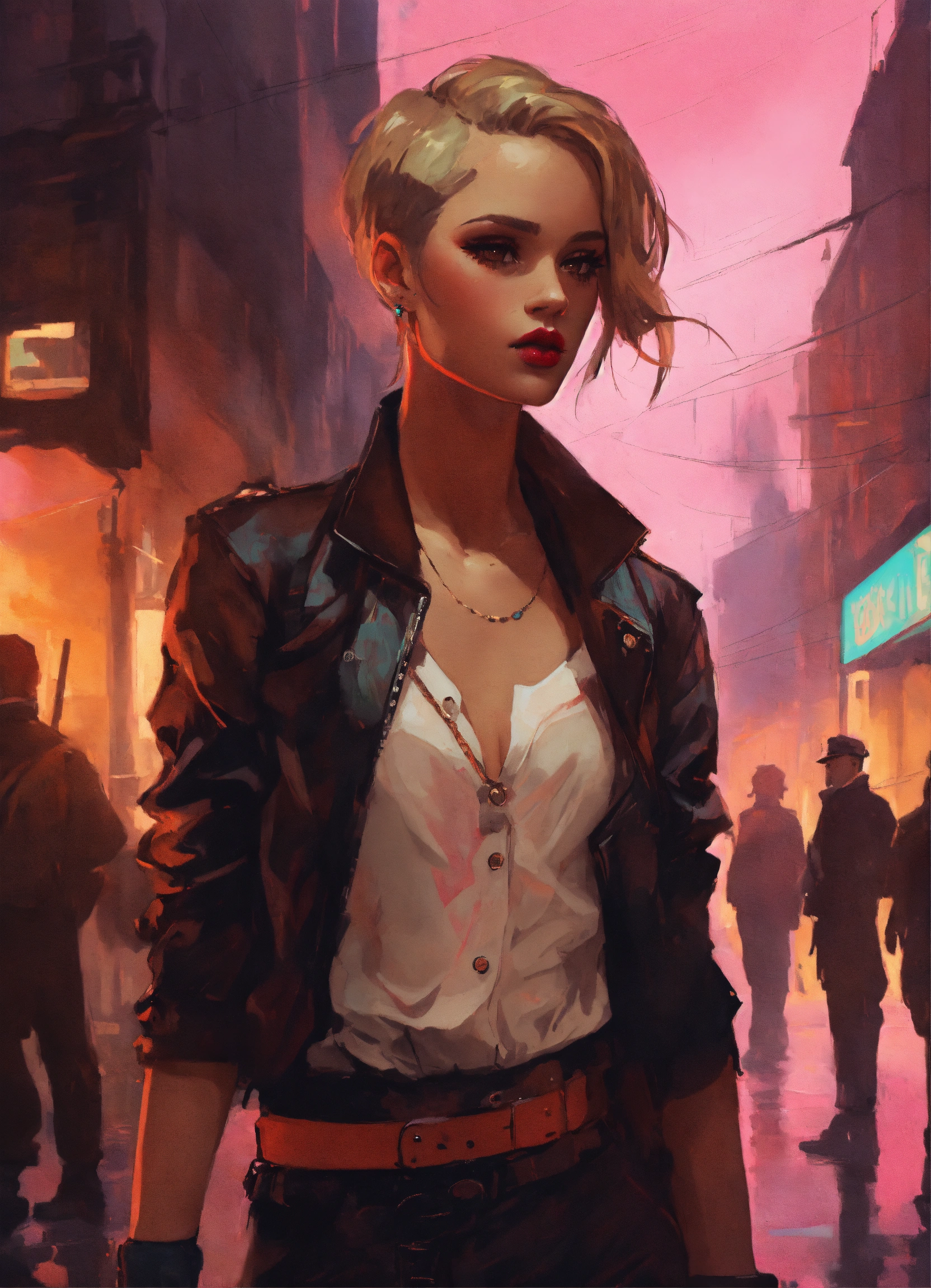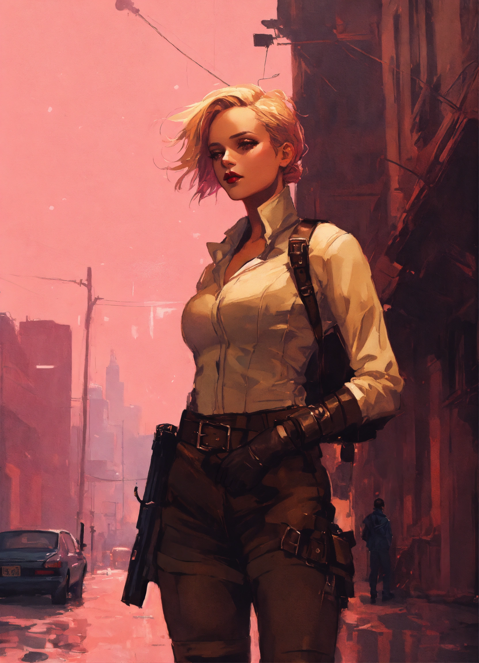 Highly detailed portrait of a sewer emo punk lady mercenary, alicia vikander, smoking cigarette, gloves, black corset, white blouse, tight trousers, black combat boots, pink lipstick, updo haircut, blonde hair, by atey ghailan, by greg rutkowski, by greg tocchini, by james gilleard, by joe fenton, by kathe butcher, gradient black, brown, umber color scheme, goth aesthetic!!! 1920s city raining background