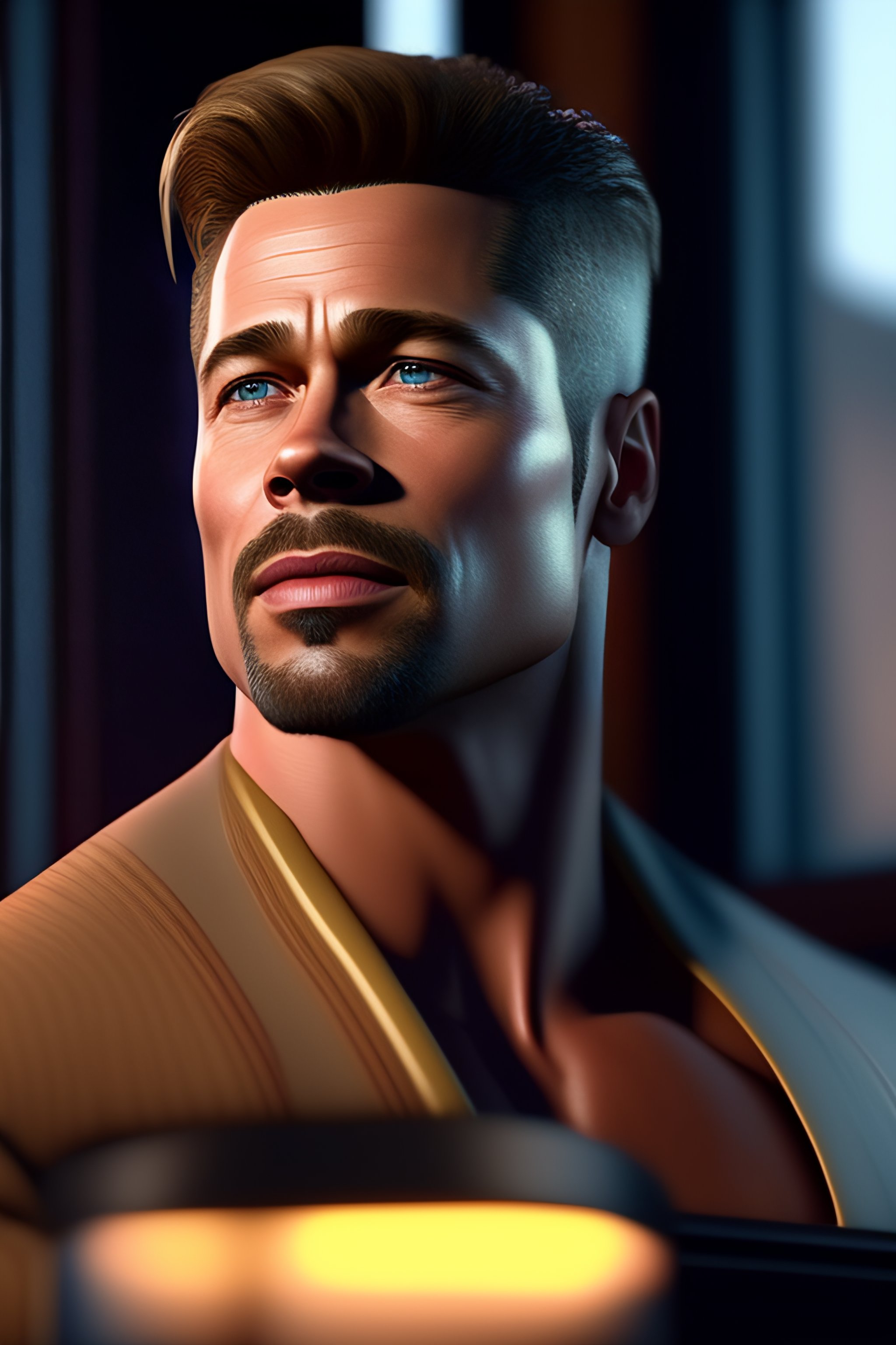 Brad pitt 3d render, pixar and disney animation character design, sharp, rendered in unreal engine 5, dramatic lighting, rendered in renderman