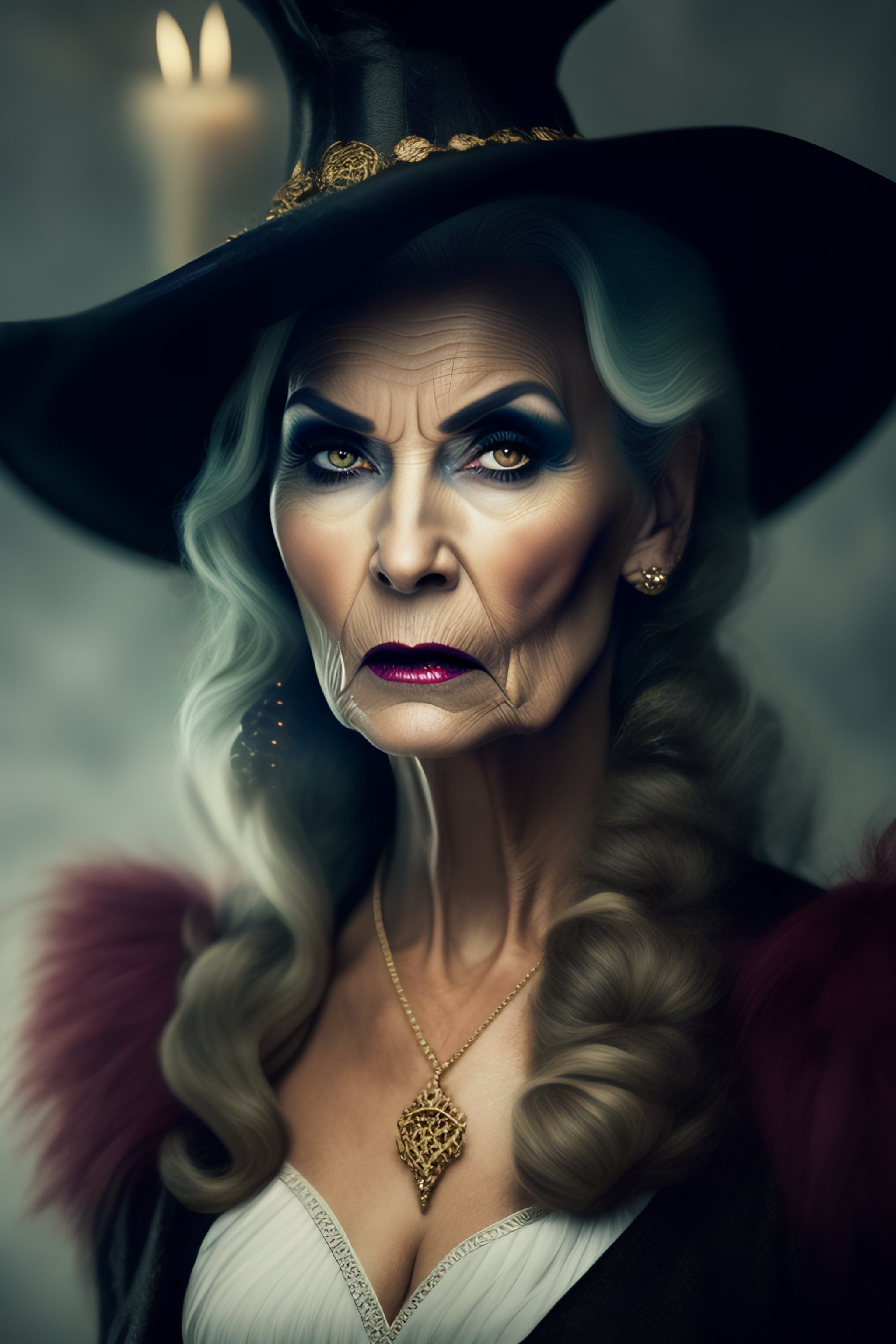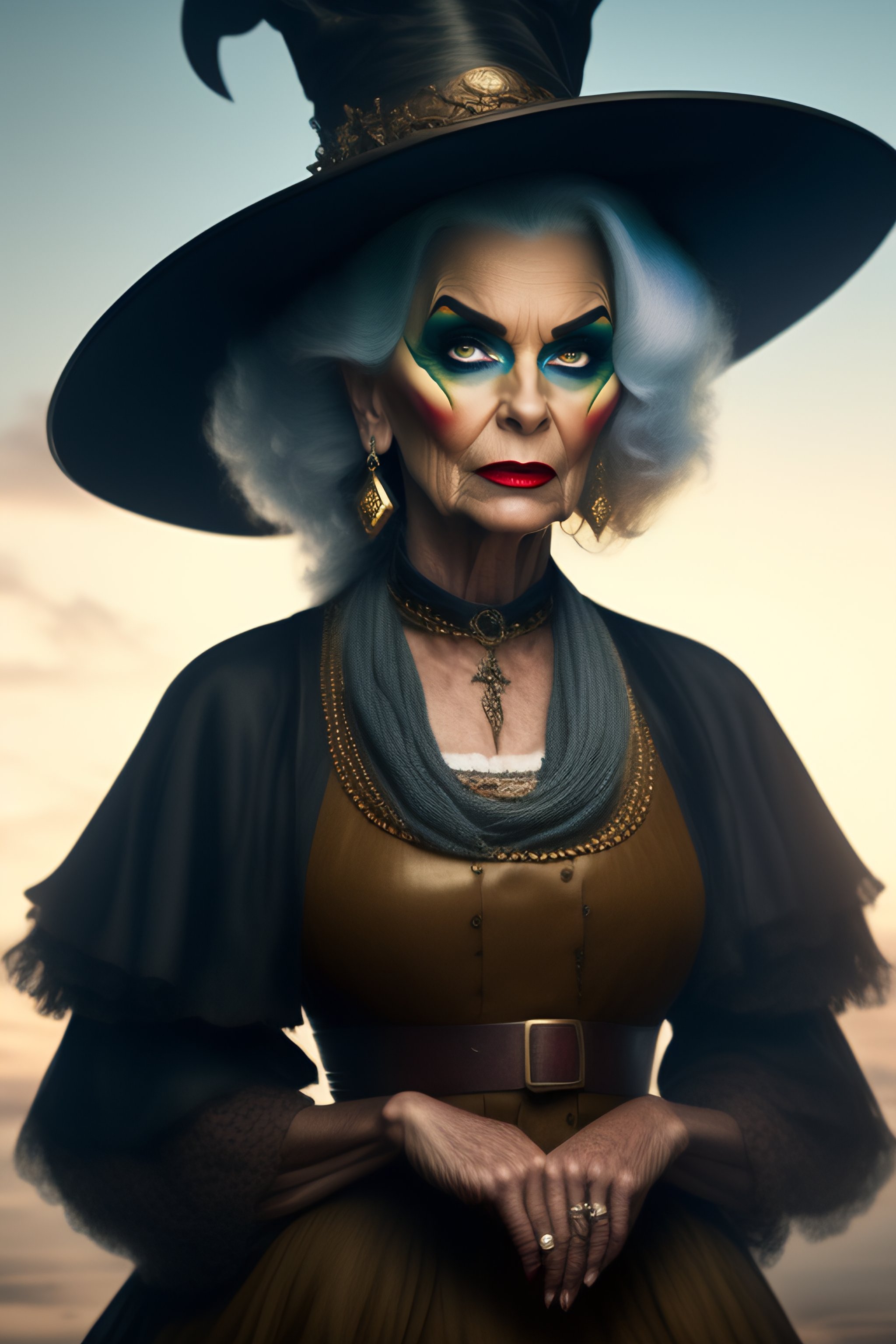Frighteningly ugly witch woman ready to kill