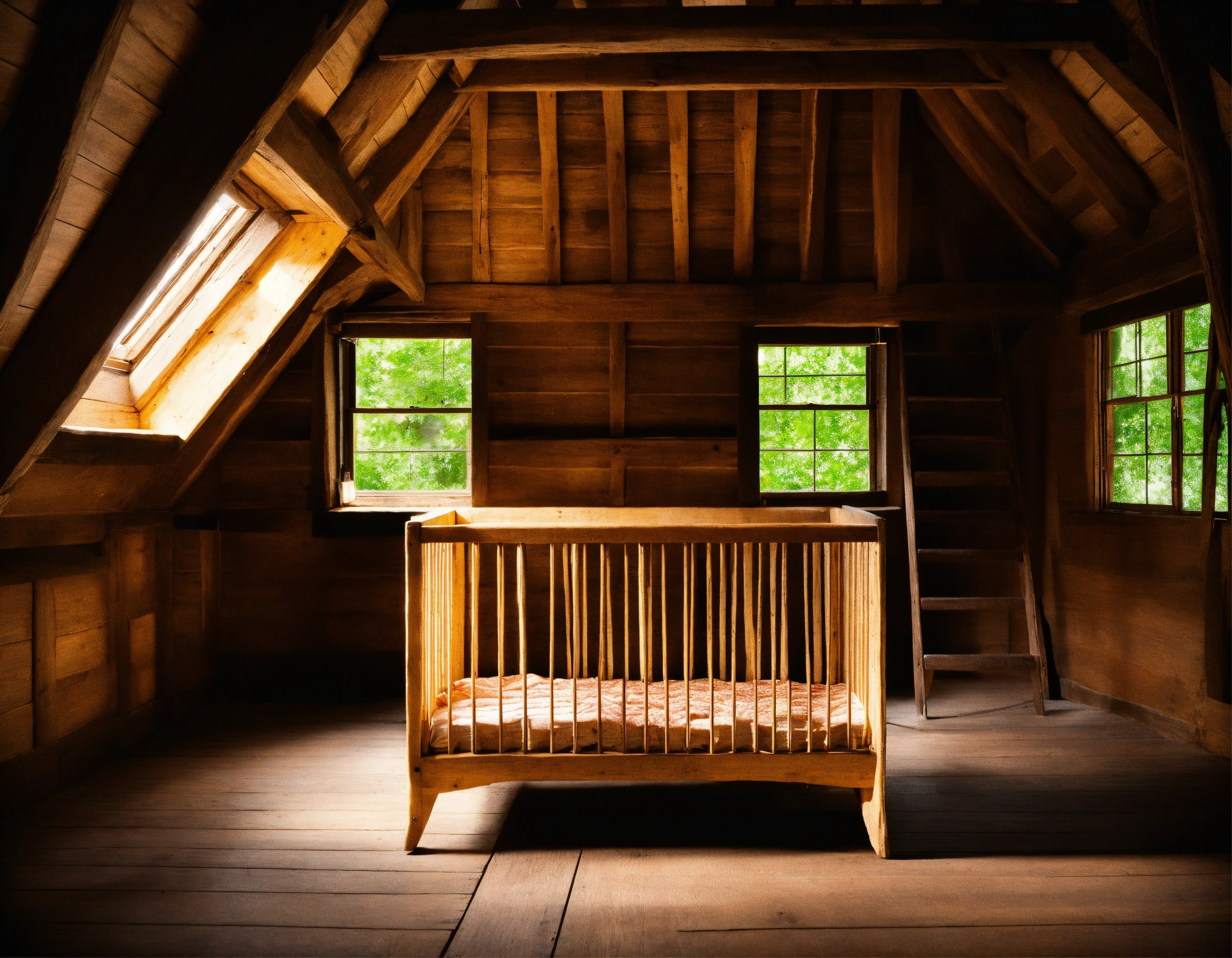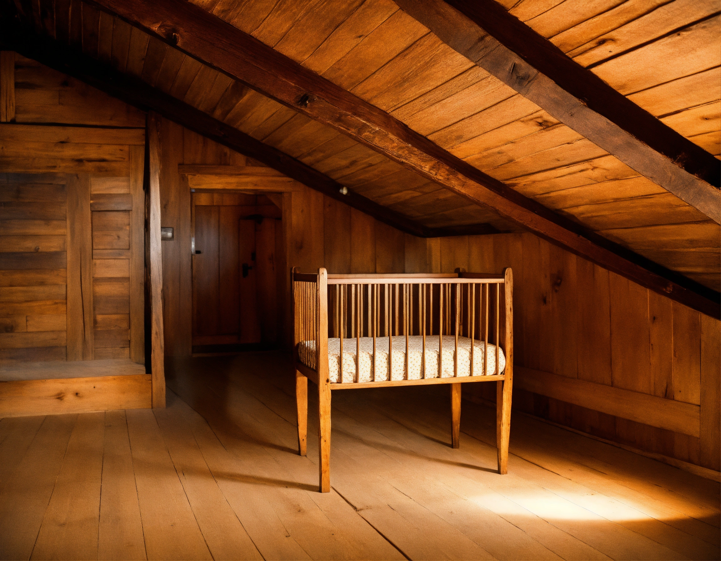 An old wooden crib in an attic