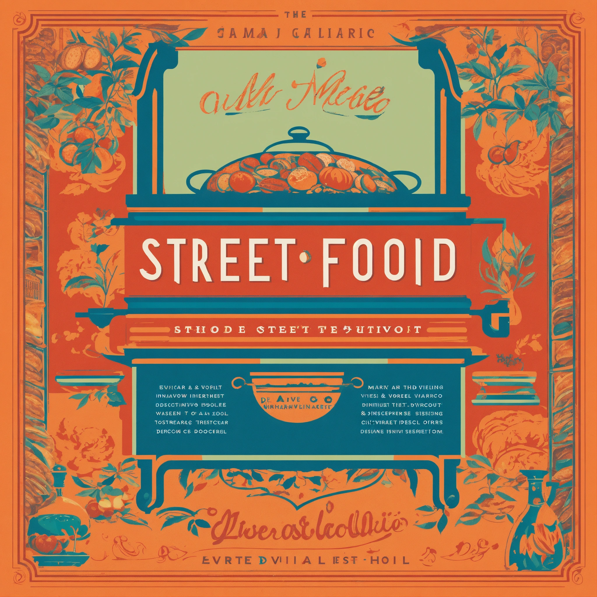 Design a distinctive and visually captivating logo for a street food documentary. the documentary explores the culinary treasures of the world's best places to eat in street food, as in the best restaurants. the program features a cinematic format, presenting each dish with a touch of poetry. the logo should encapsulate the essence of street food, the bold and lively colors, and an original and expressive look. it should be a visual feast for the eyes, evoking the magic of discovering unique flavors. make this logo in an elegant style as if it was a street food sign with a blue, orange, and red pantones, use mexico as the principal reference.
