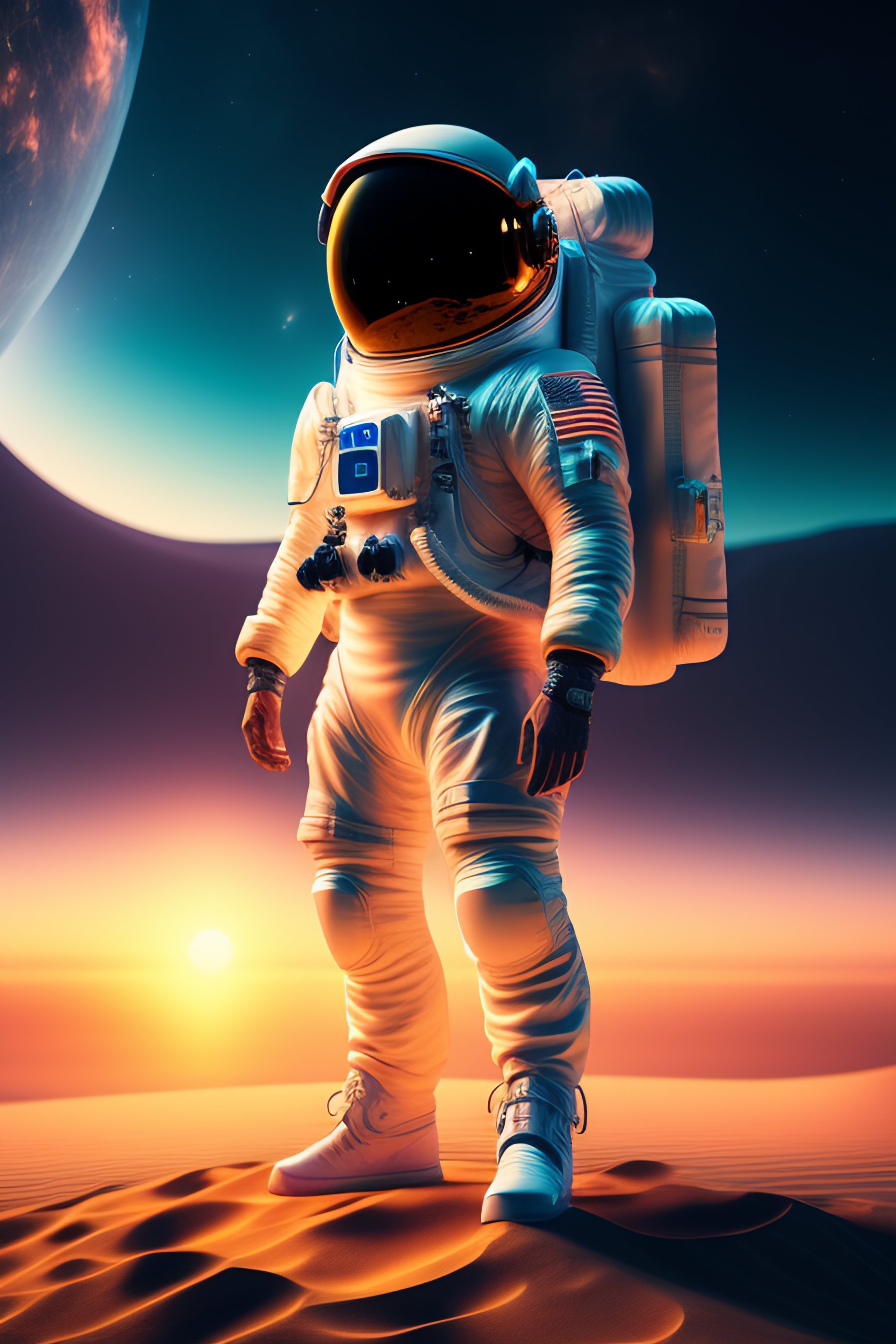 An astronaut in sand beach, pixiv, instagram photo, 8 k, octane render, unreal engine 5, cinematic, full hd, ultra realistic, ultra detailed, 8 k 3 d