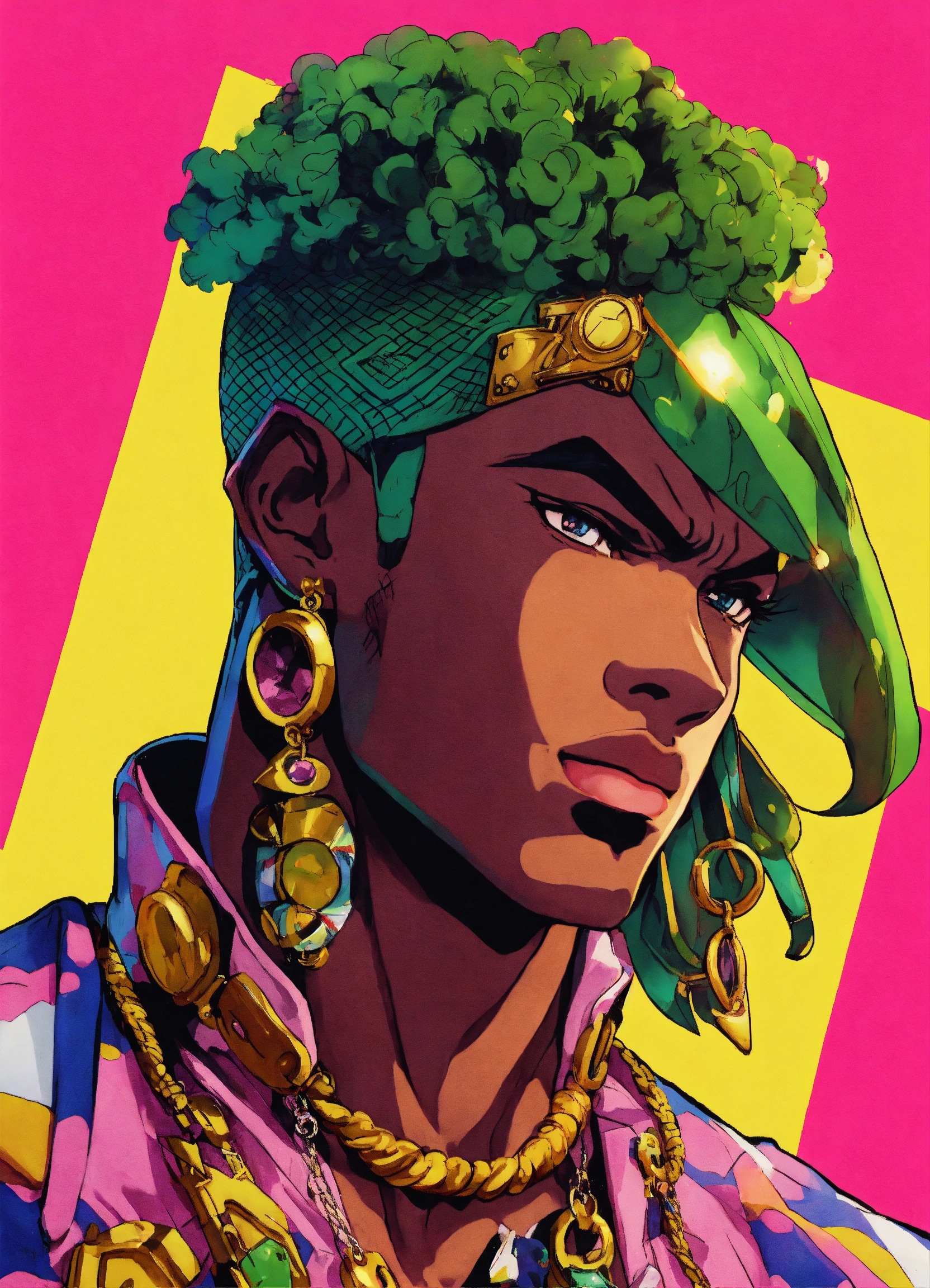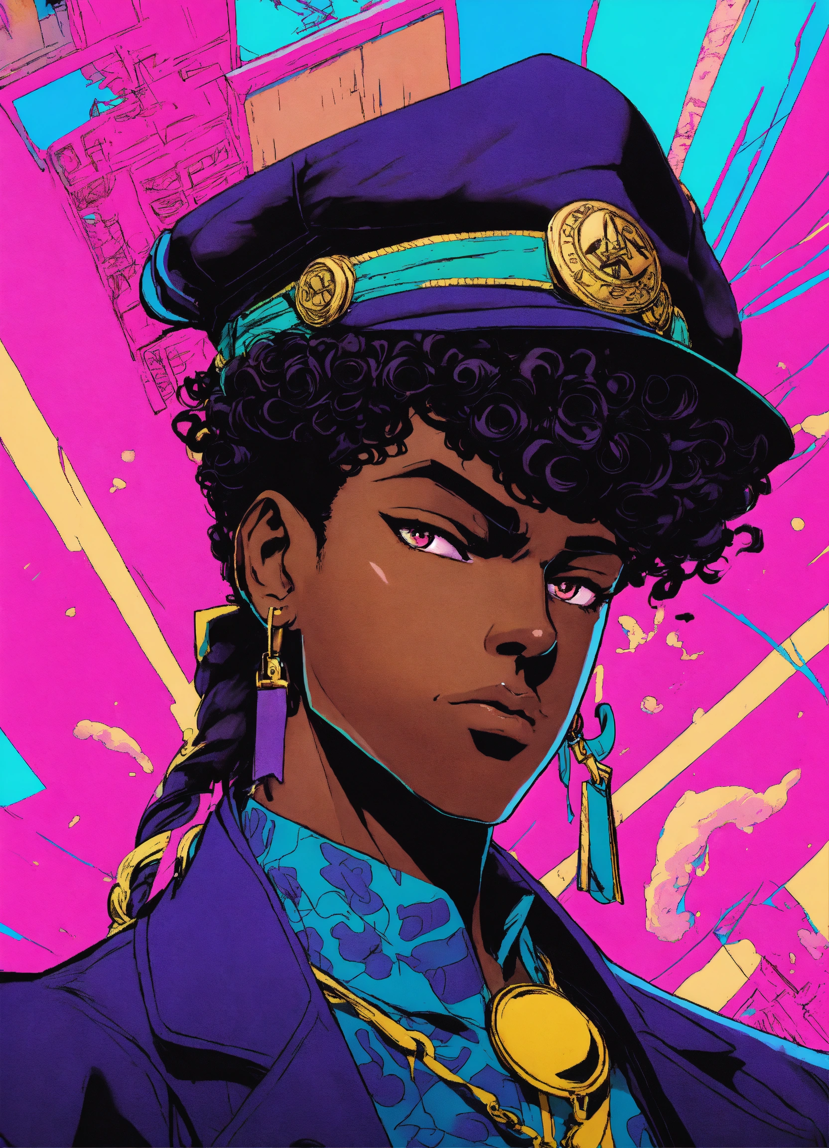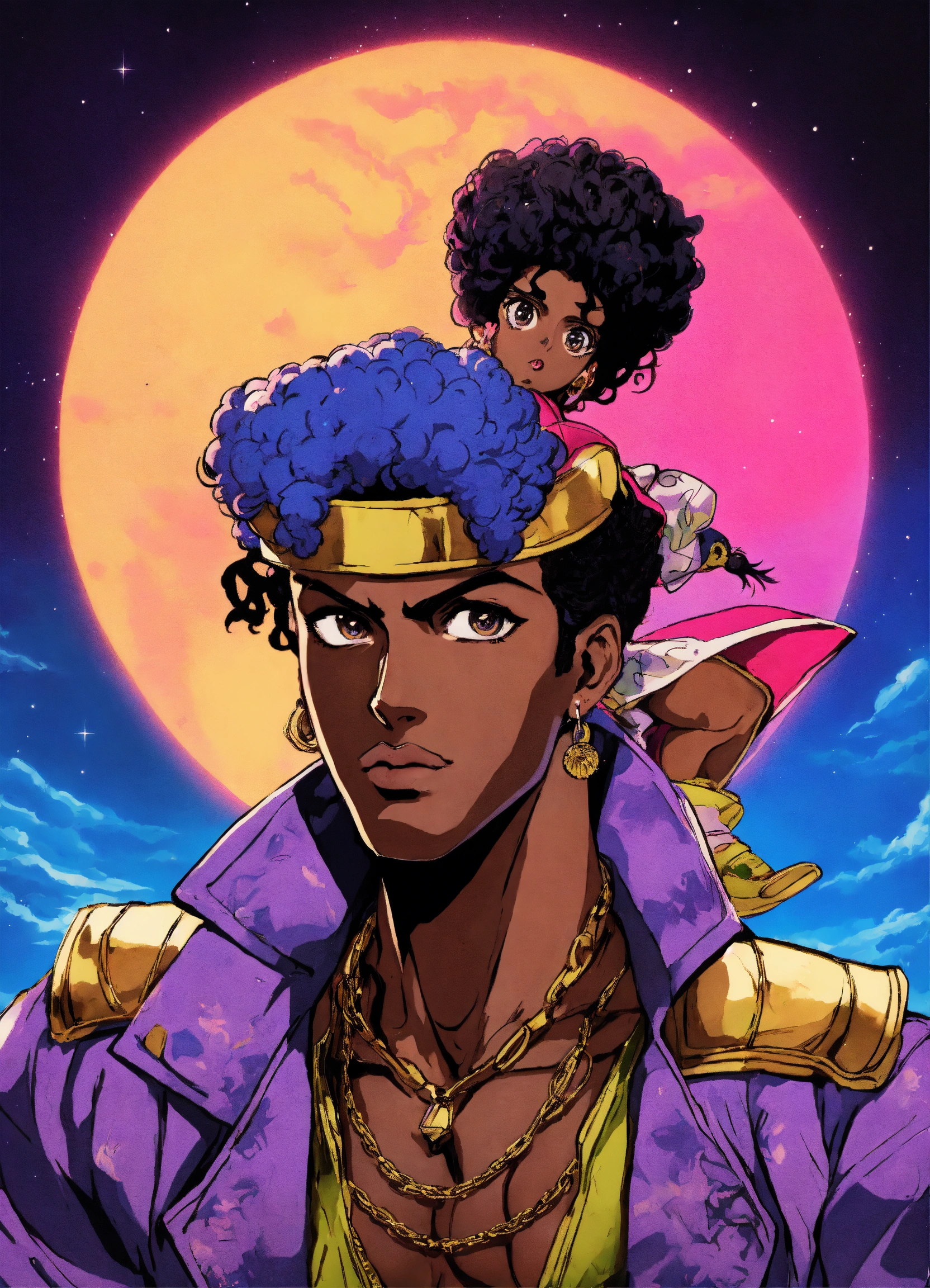 80's anime black character jojo's bizarre adventure manga art style