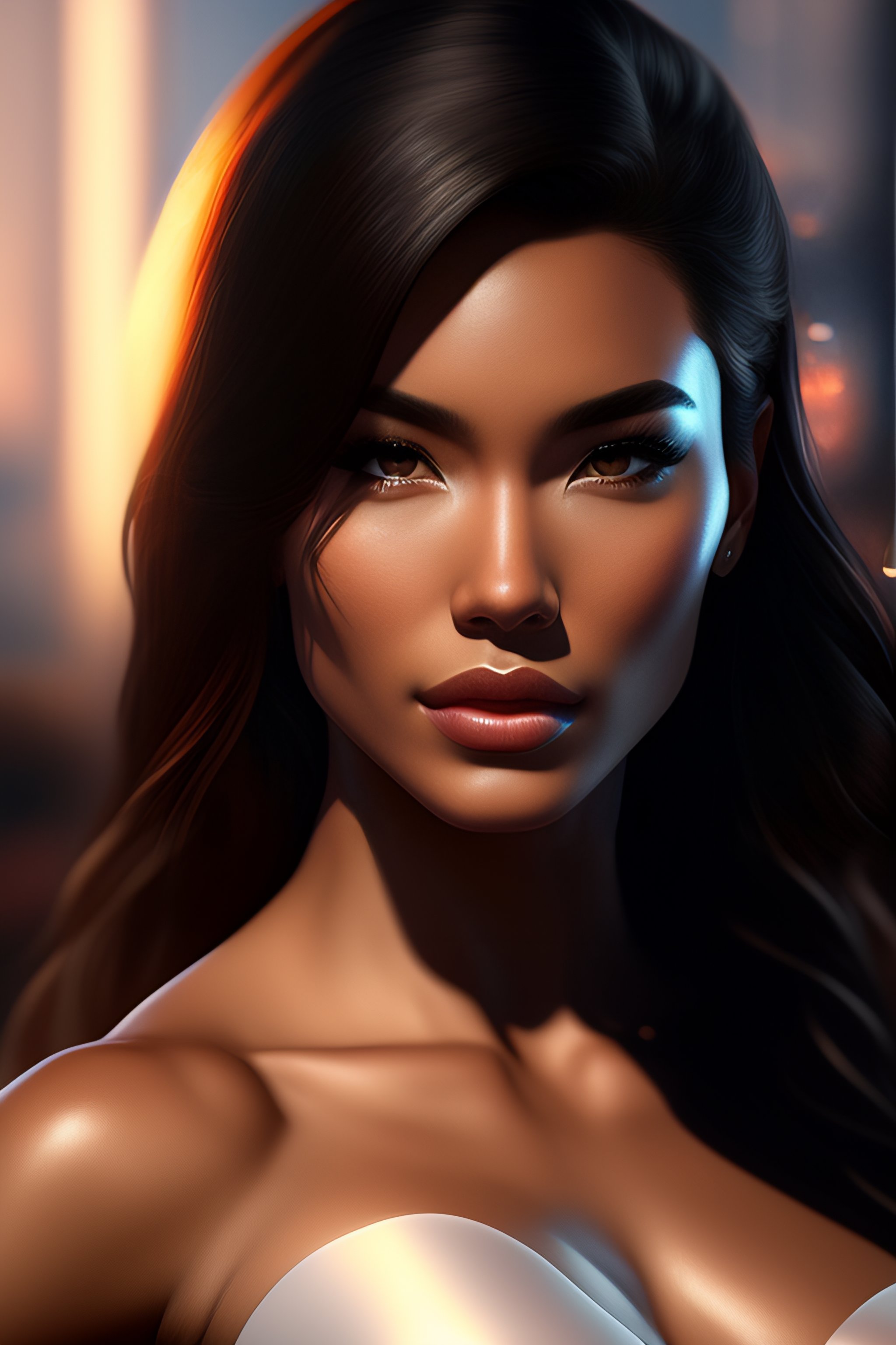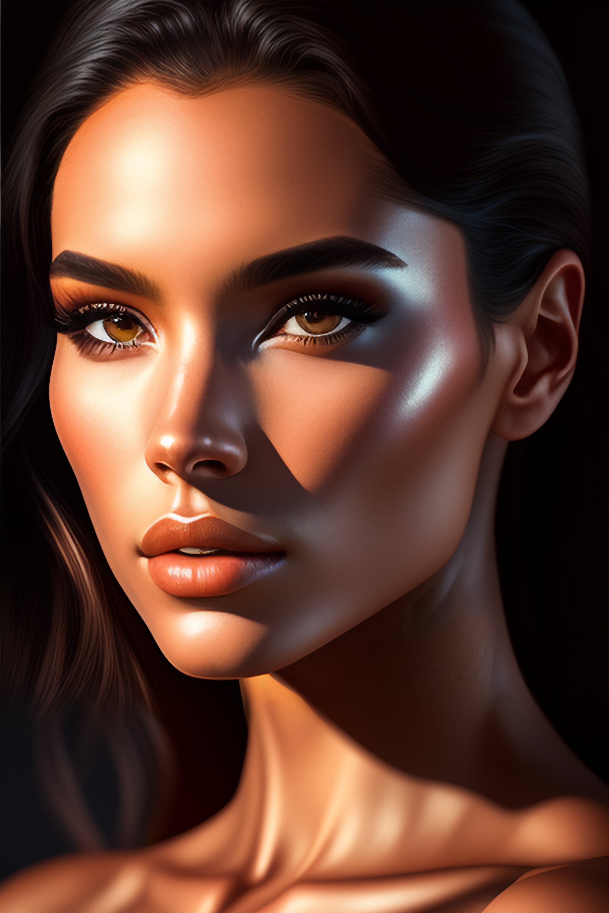 Professional portrait of a perfect young sexy female model with a perfect body, by artgerm and moebius, beautiful, hyperrealism, highly detailed, 8k, intricate, dynamic dramatic dark moody lighting, shadows, artstation, concept art, octane render, 8k, no make up
