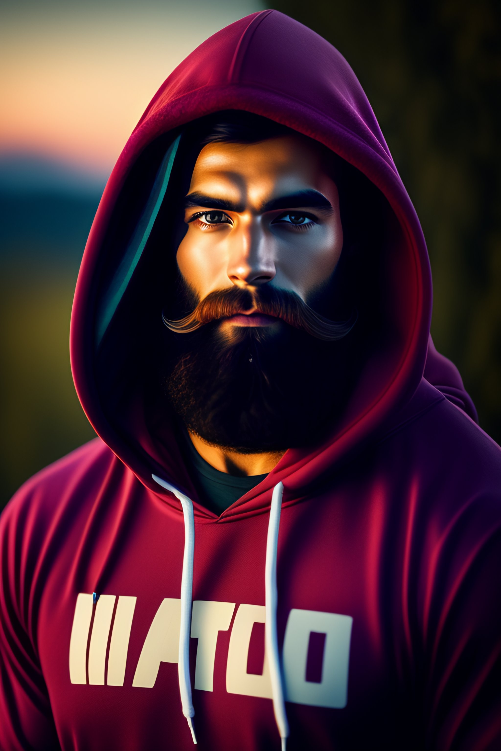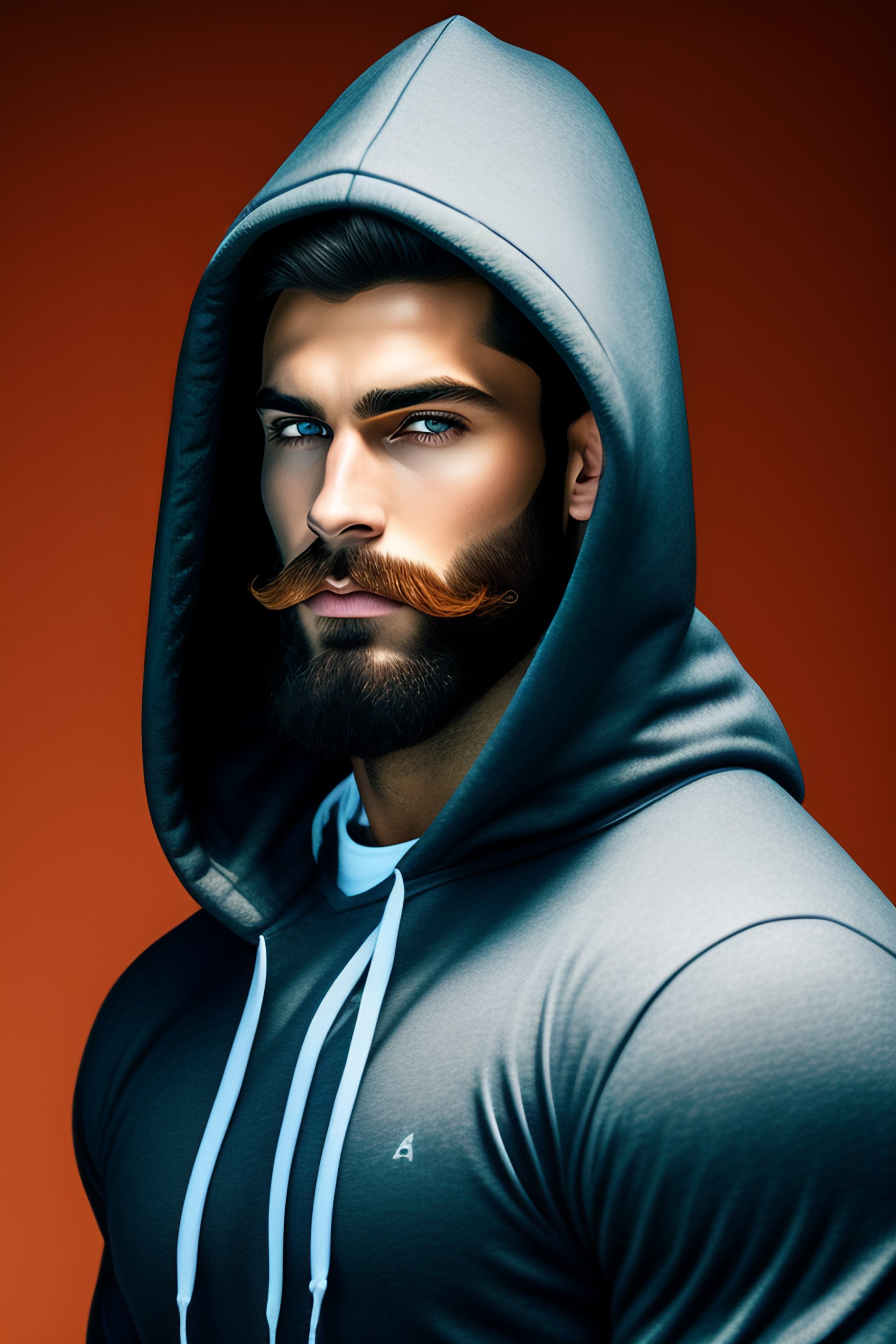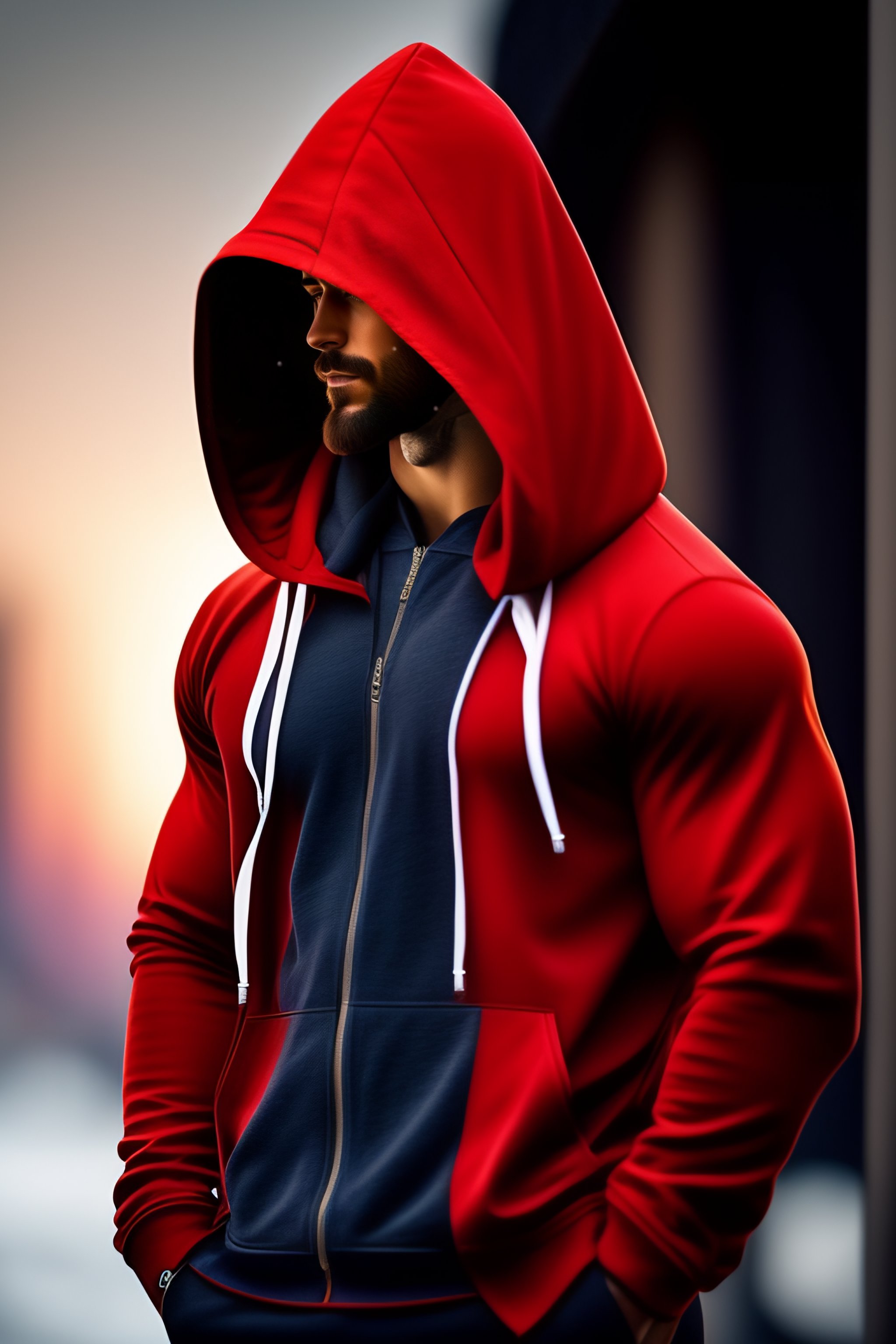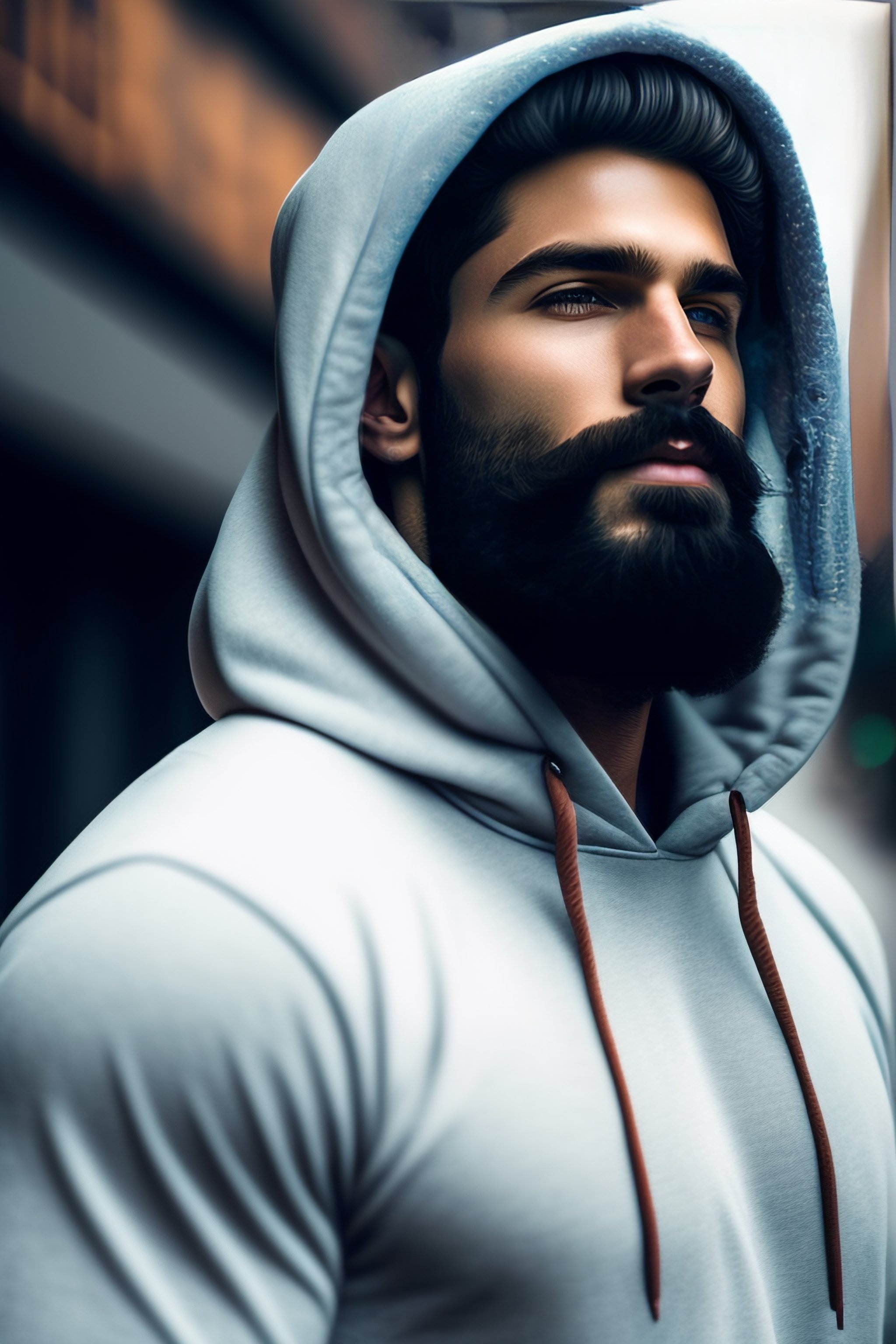Cute man with beard wearing hoodie with hood up