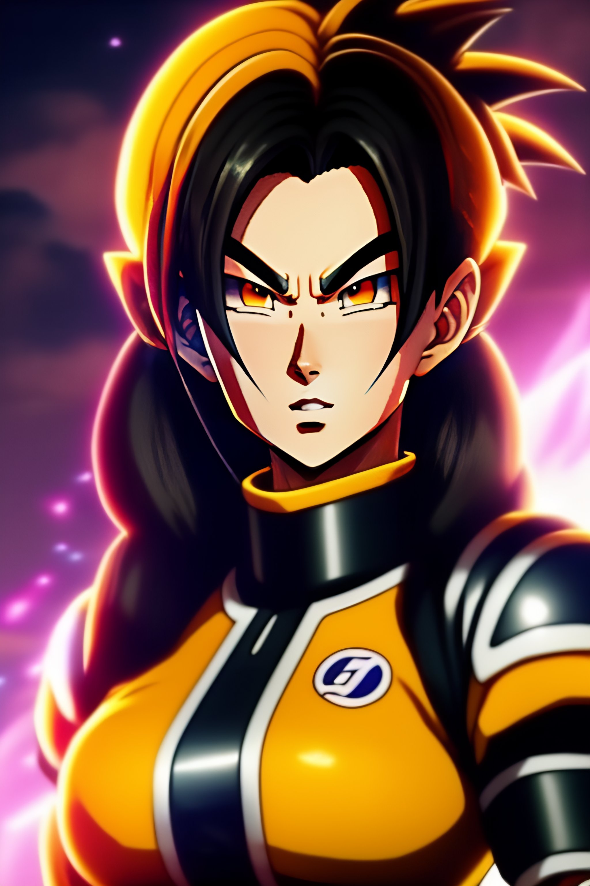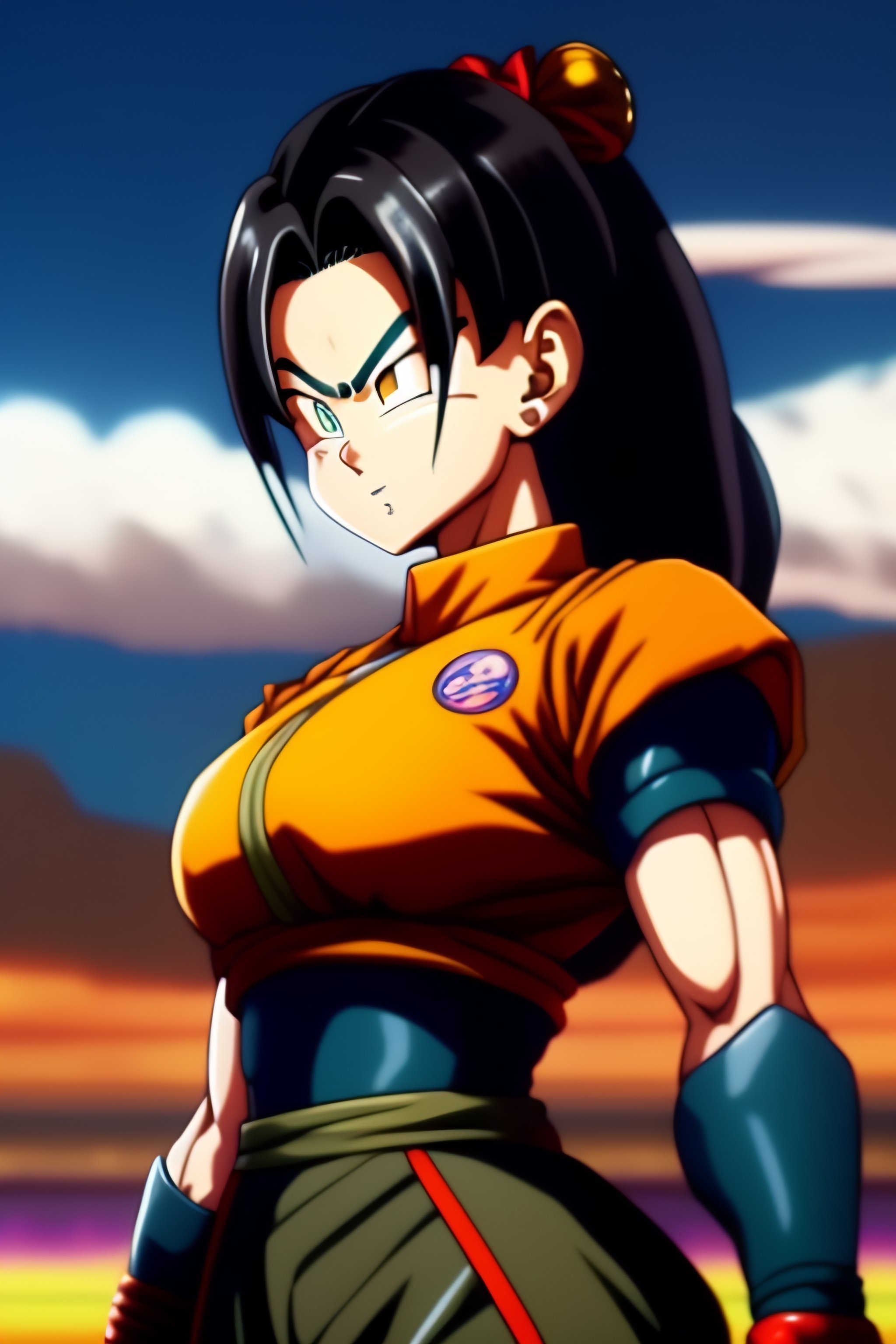Dragon ball, half saiyan girl with long black hair, black eye pupils, feature similar to android 18 in dbz, wearing combat clothes