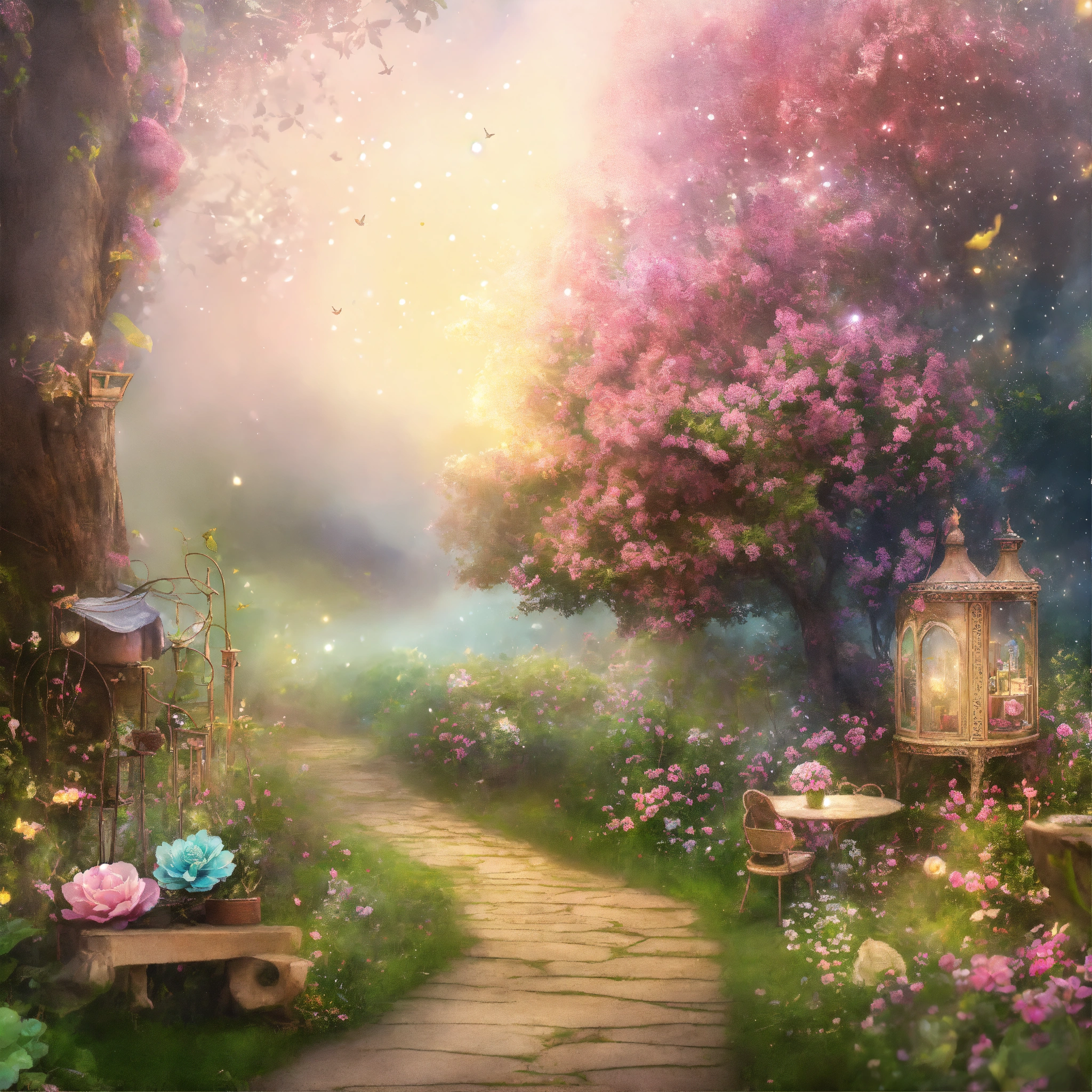 Shabby chic dreamy mist pastel junk journals secret fairy garden swirling magical fairytale abstract art style