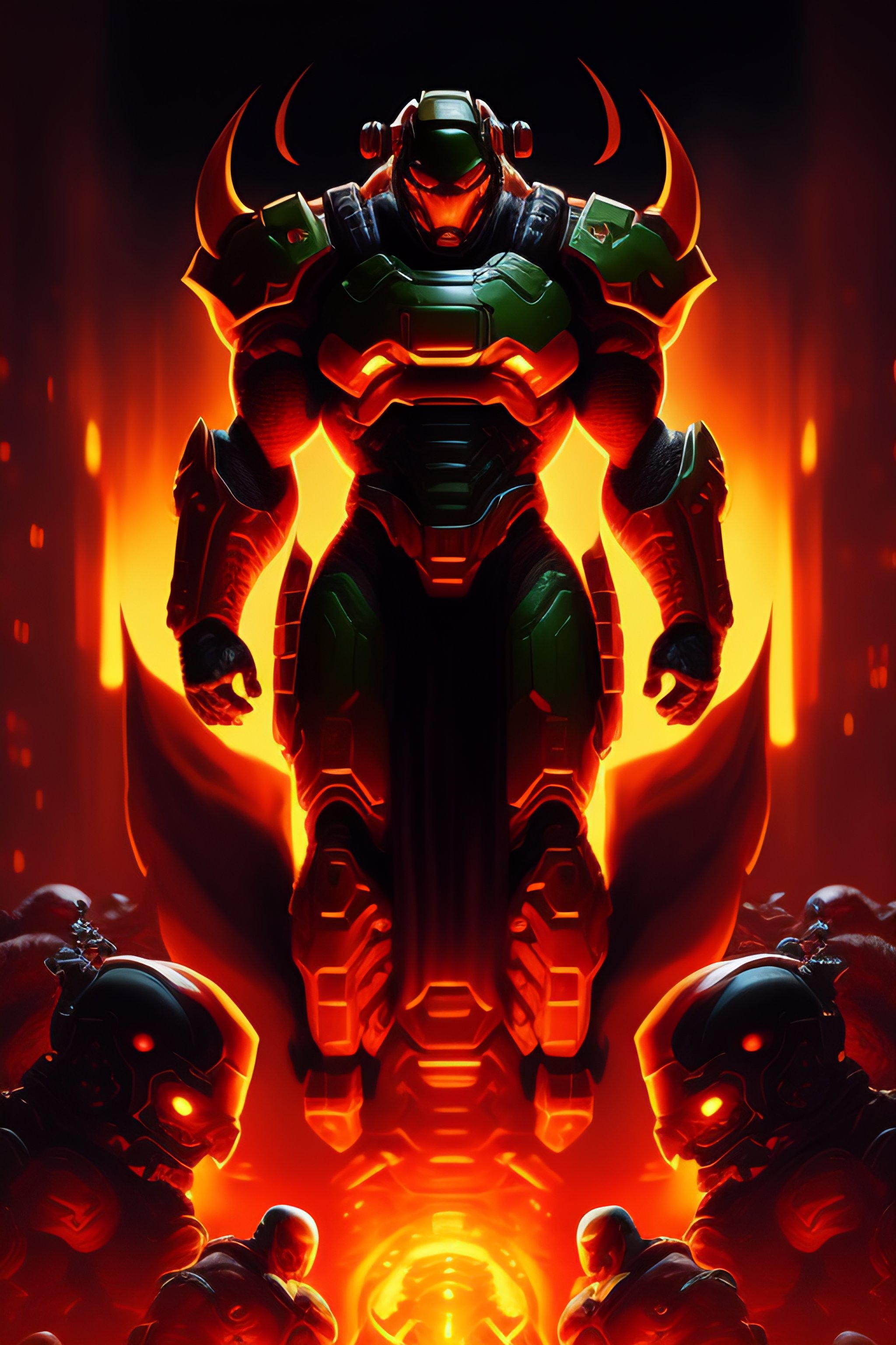 ( doom ) cover featuring doom guy!! doom marine!! surrounded by demons, by kenneth scott, artstation, vivid gaze