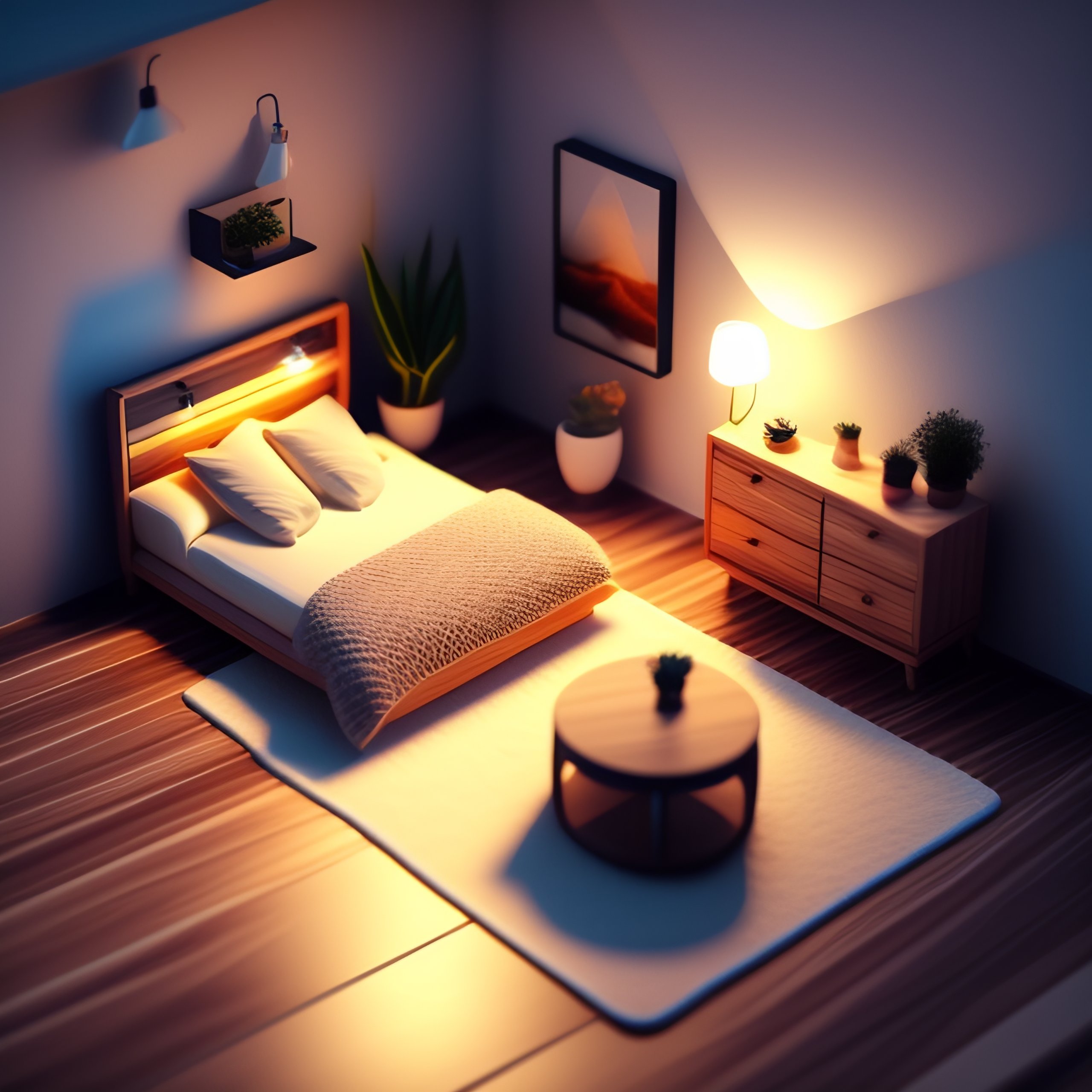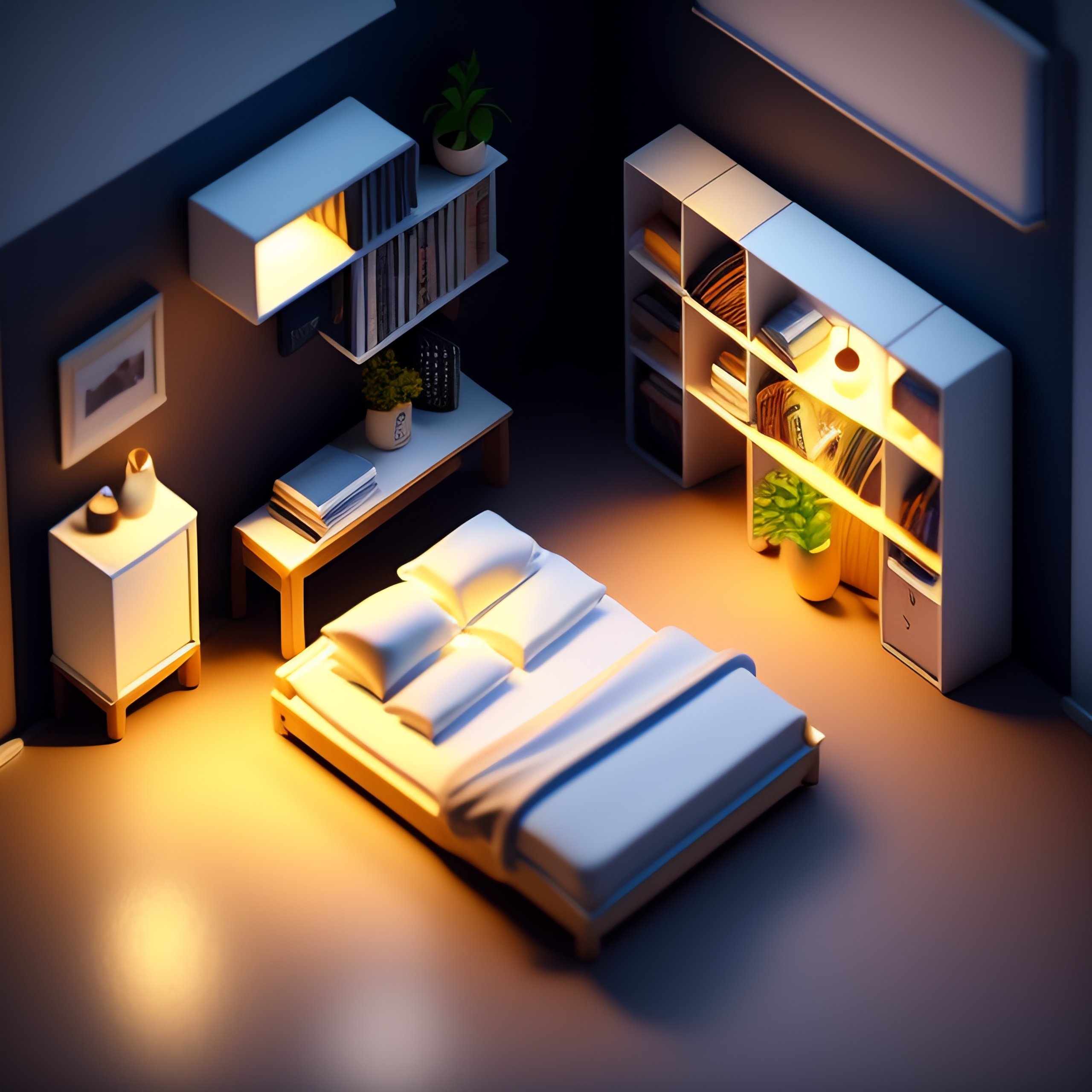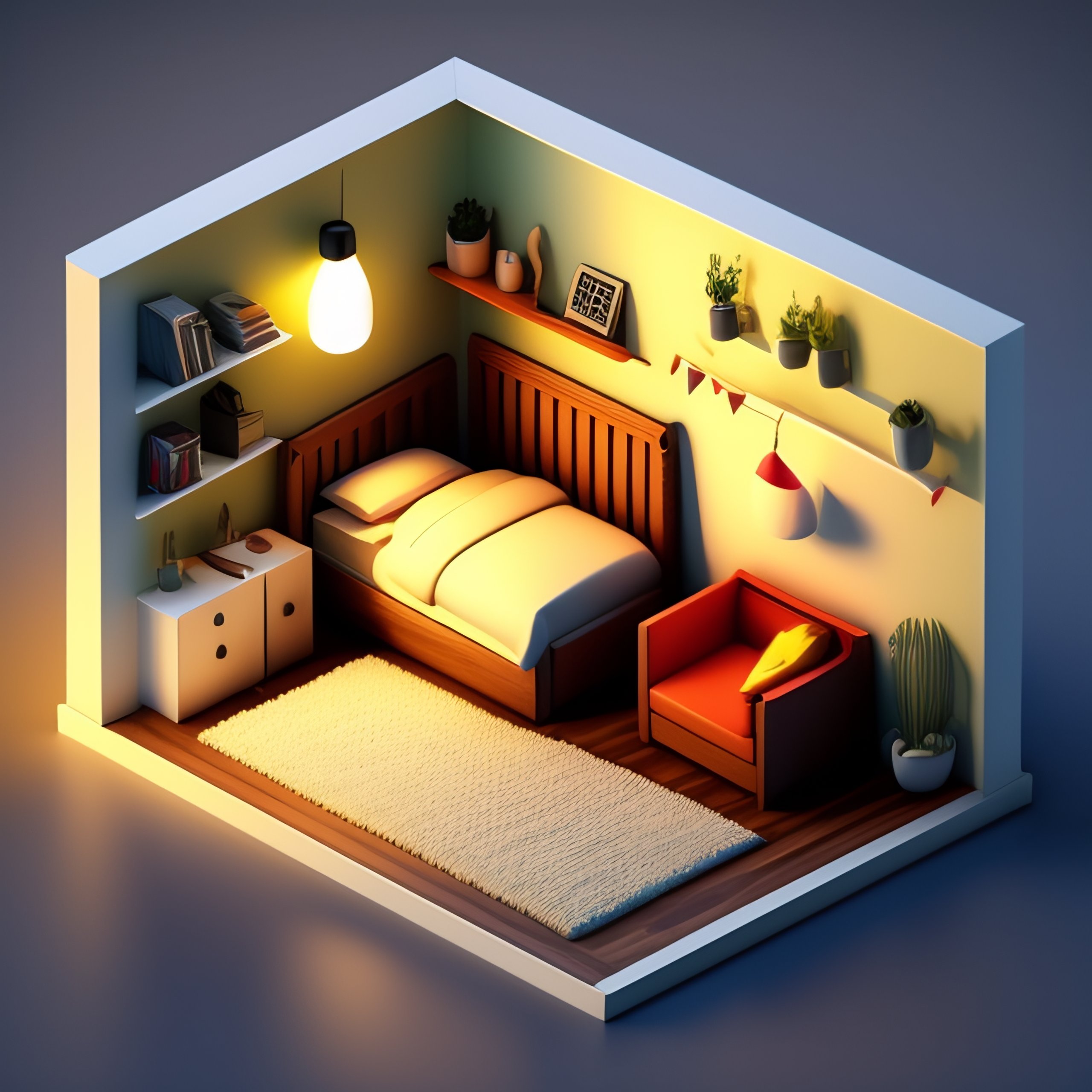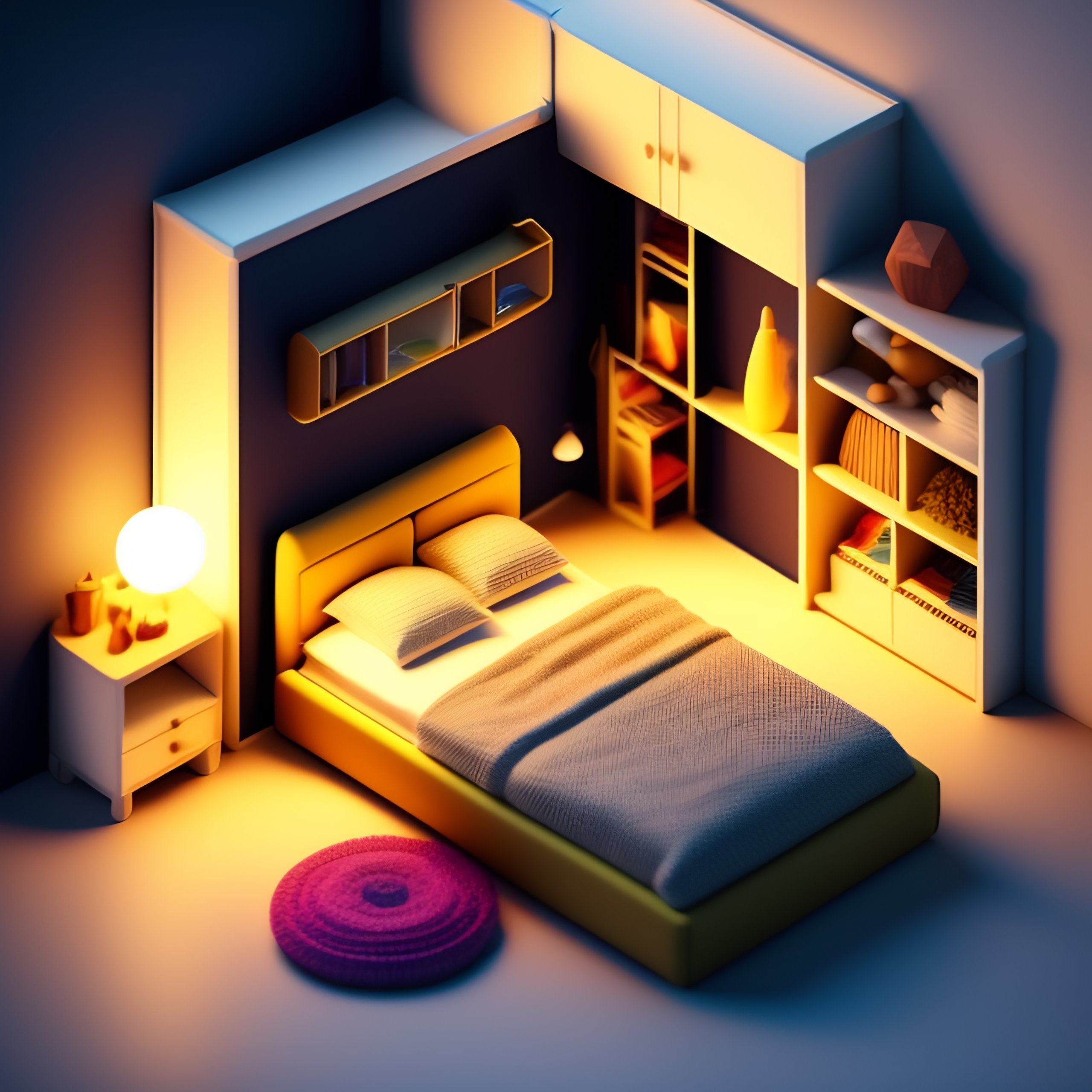 Ikea room interior of an isometric low - poly 3 d bedroom