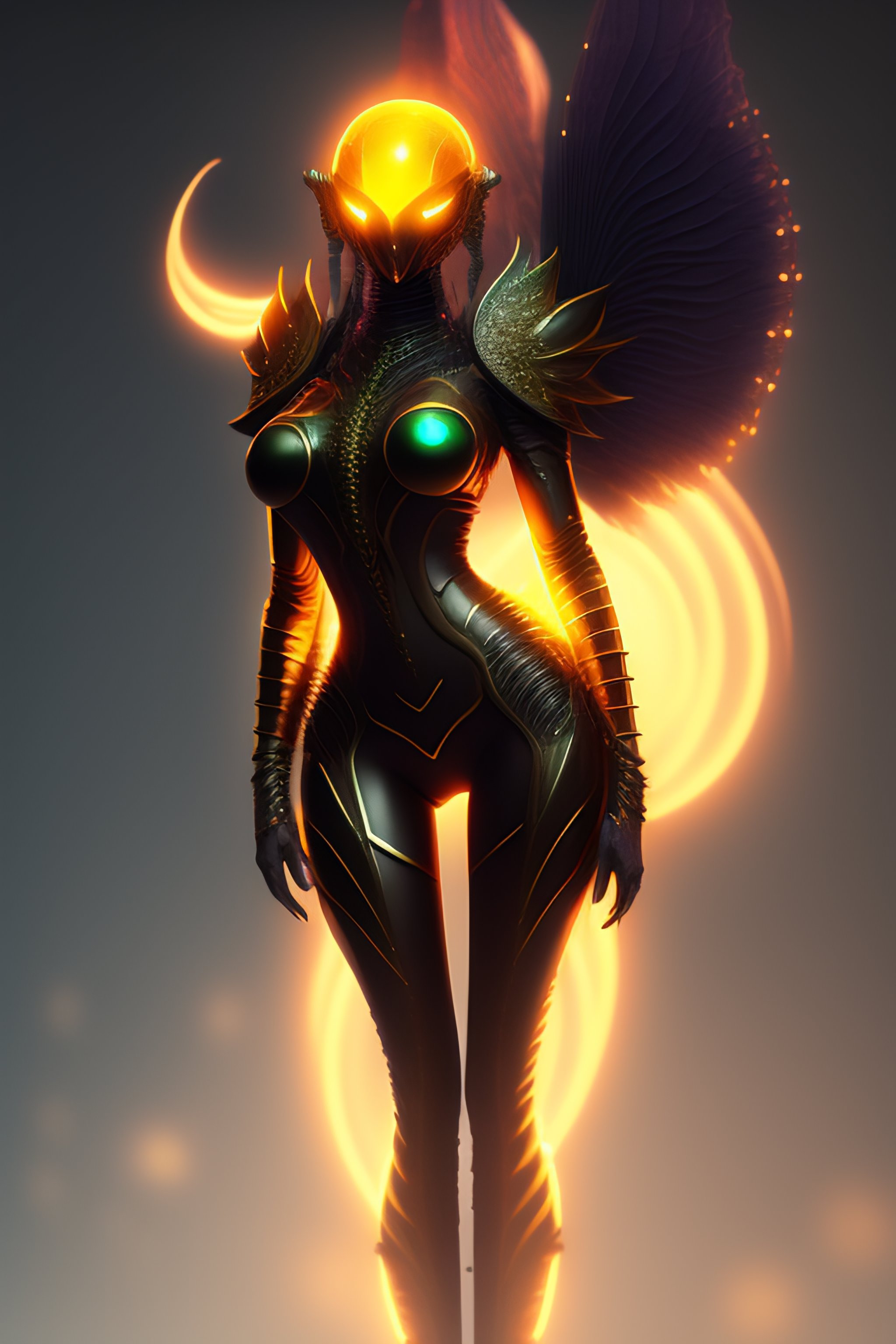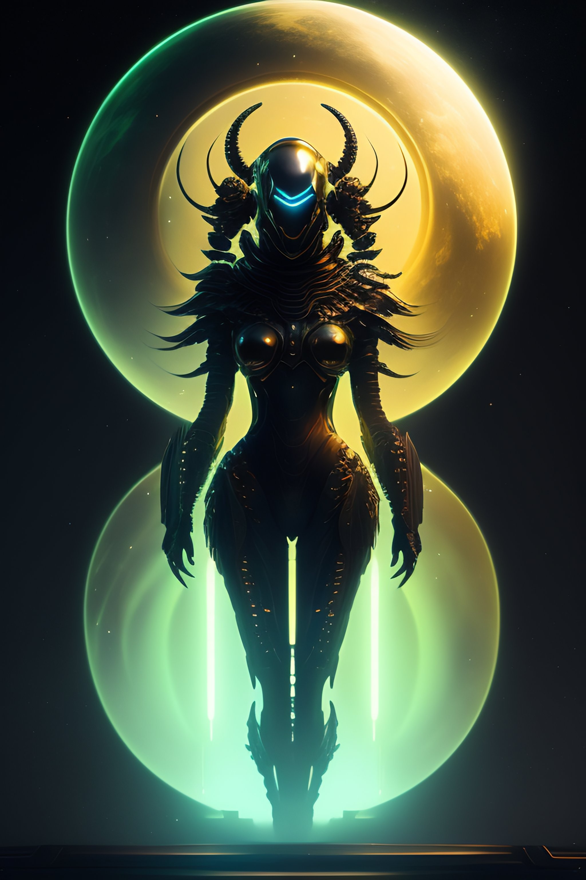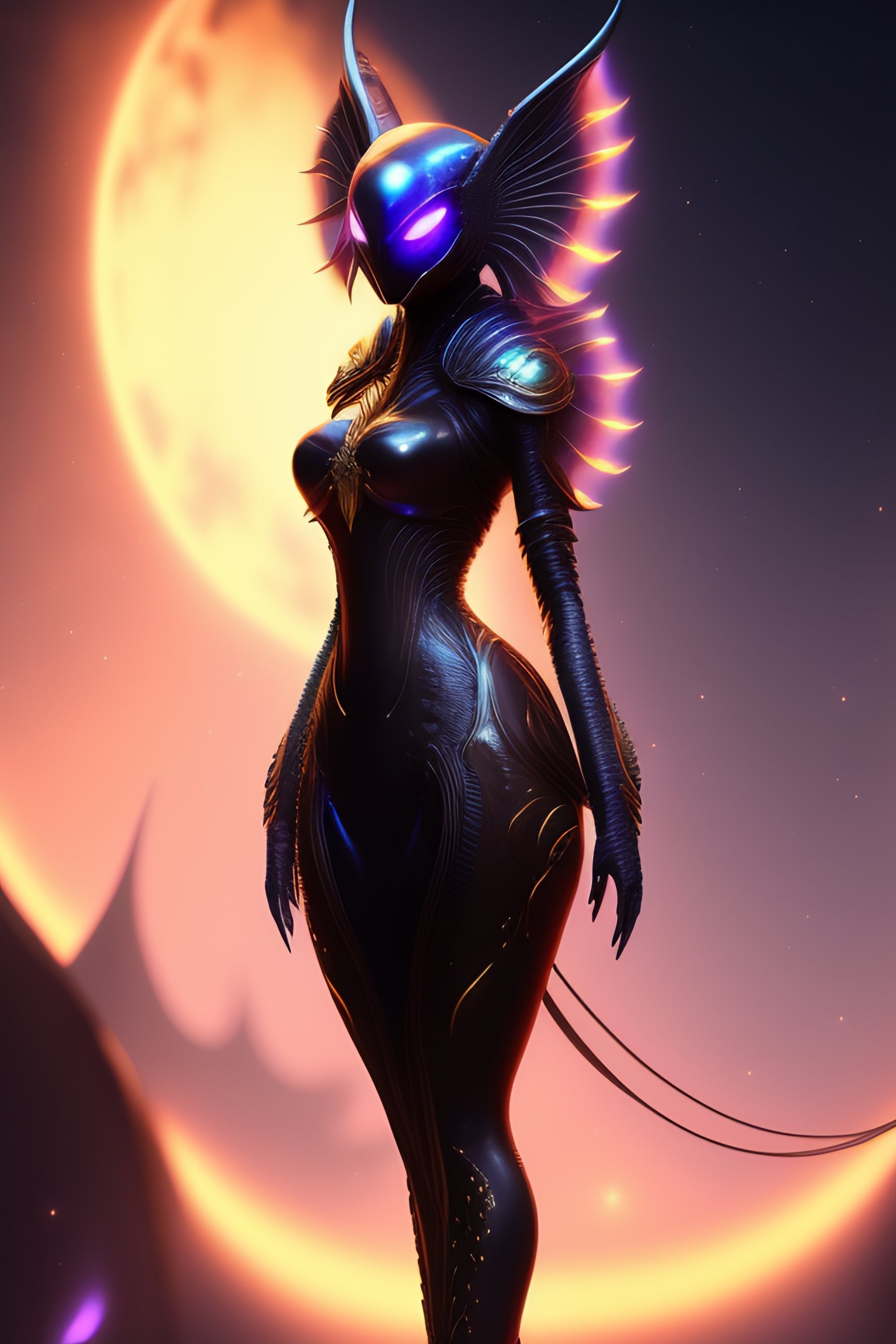 Alien female with six long spider legs, powerful jaws, beautiful and terrible, flexible body, long snake tail, luminous eyes, inspired by stellaris game, dark souls style