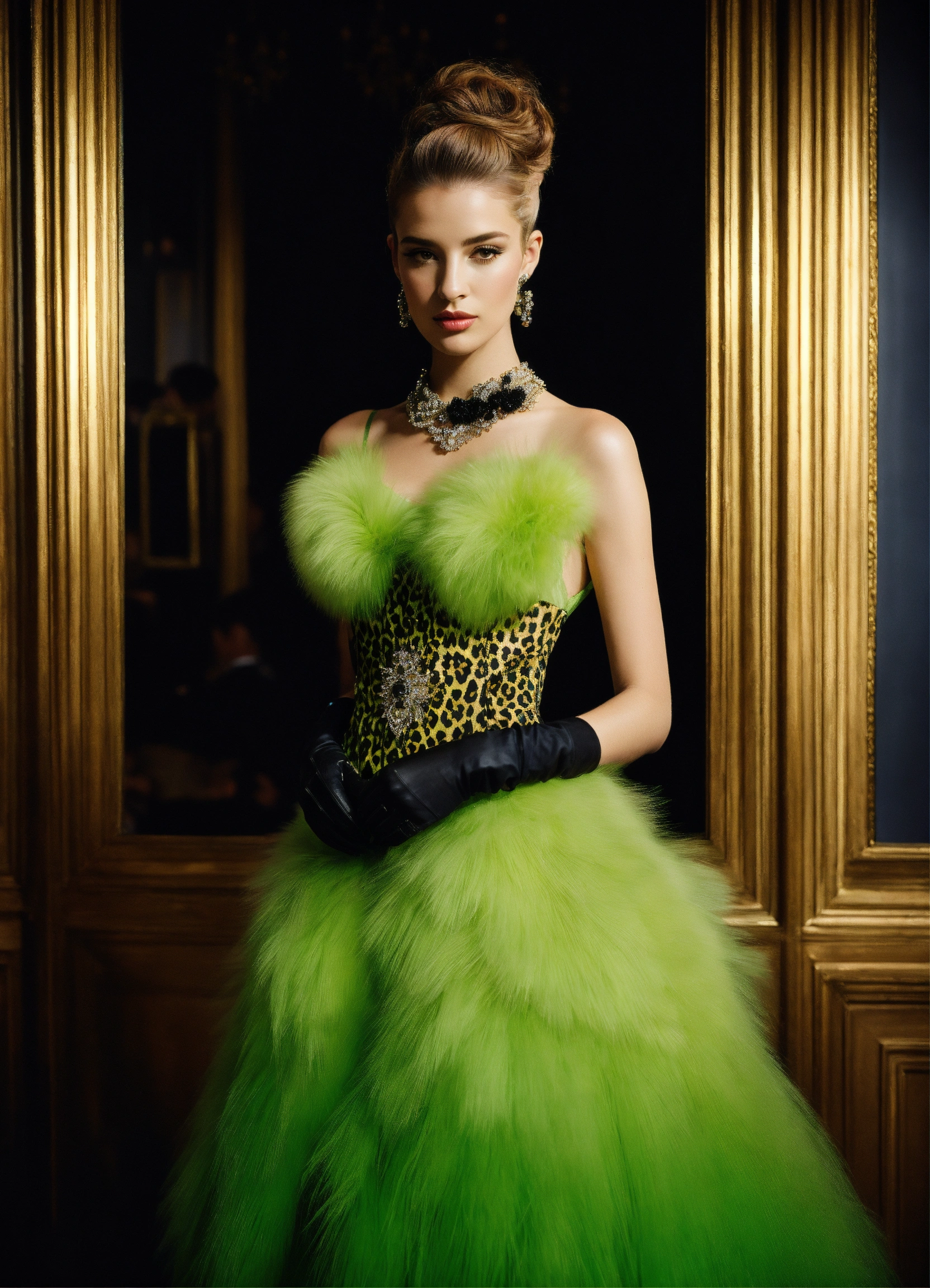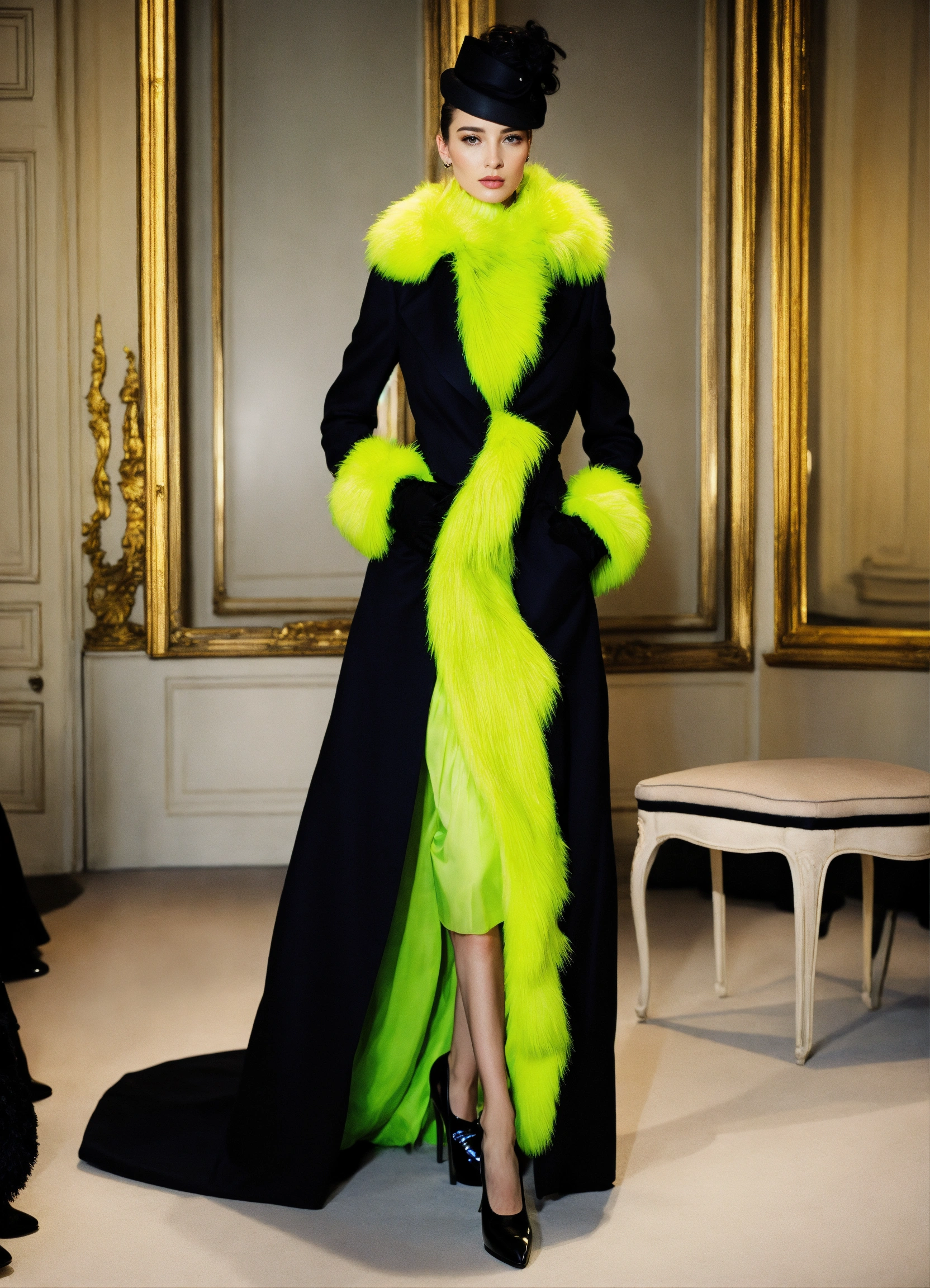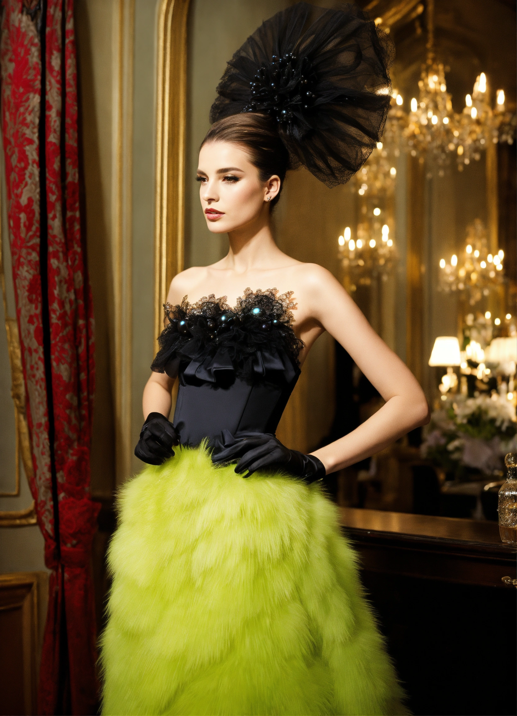 Christian dior, galliano john, haute couture fall 2009, basques, girdles, lace-edged slips, petticoats, black pearl, black gloves, touch of leoperd, curly hair chignon, tule vail, high heels, parisian salon, boutique, montaigne avenue, bright space well lit suit, bar suit, le new look, white walls, fluorescent green fur, leopard, edith bouvier beale