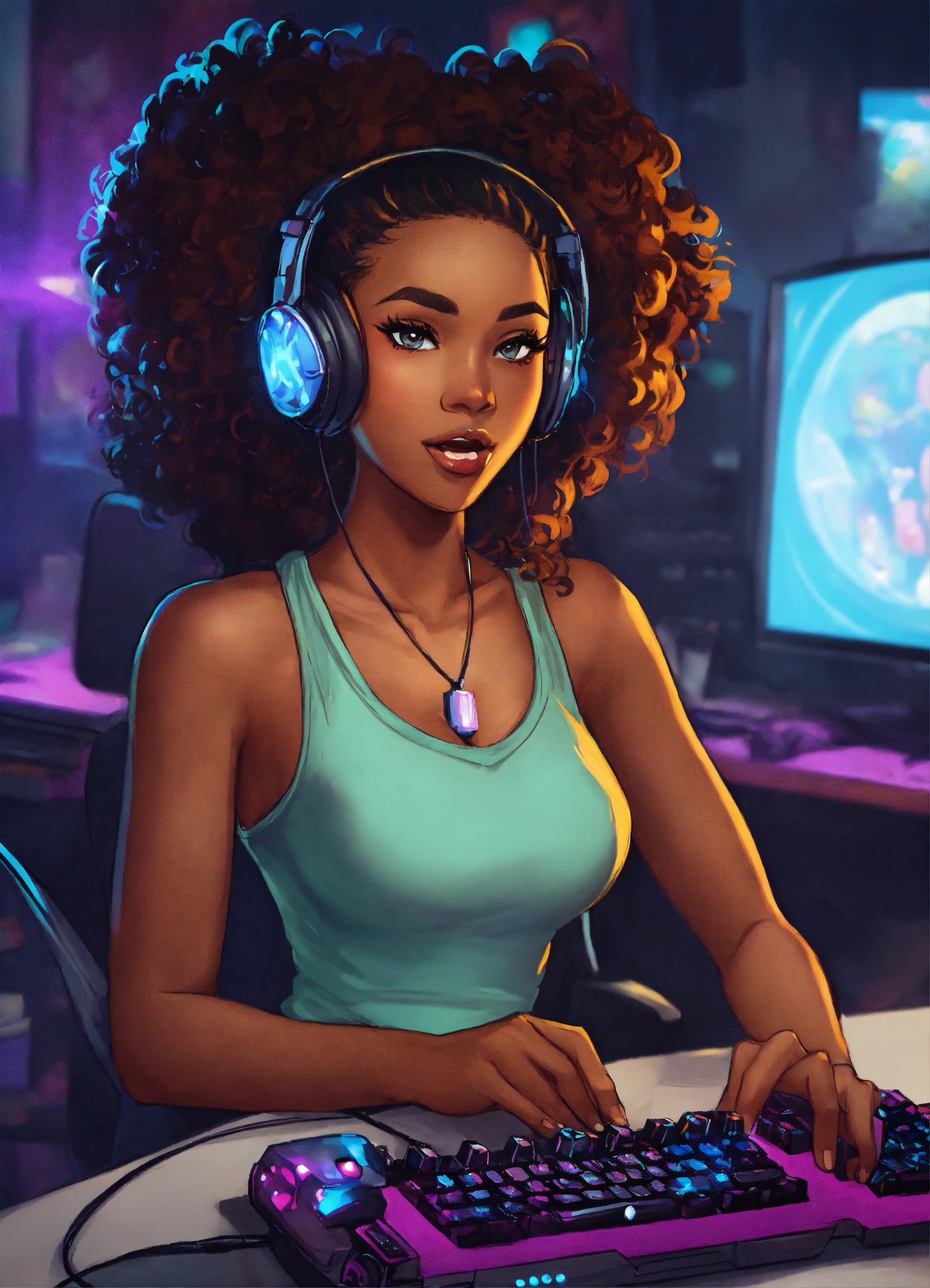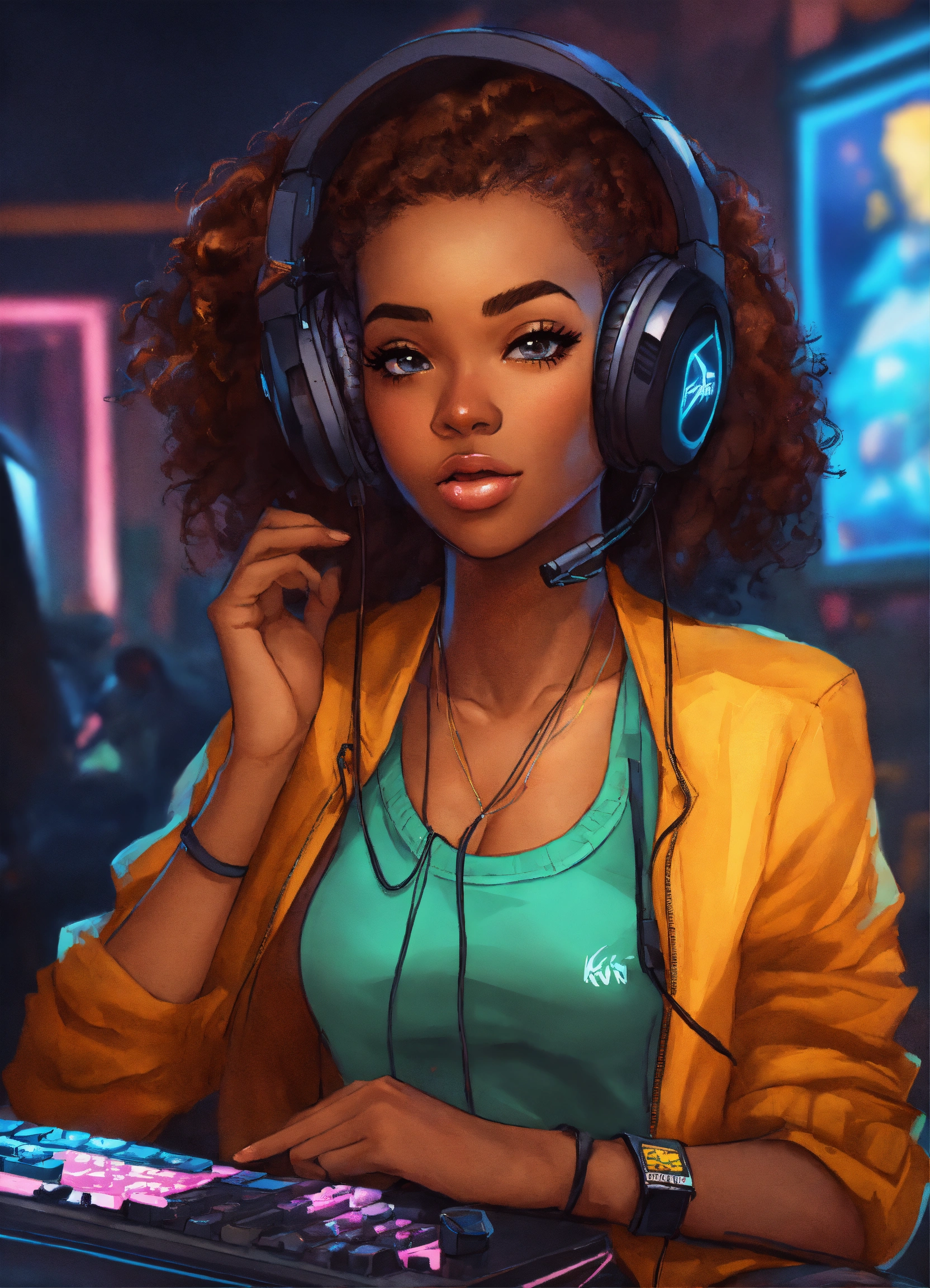 Cartoon art for pretty black girl gamers kwai