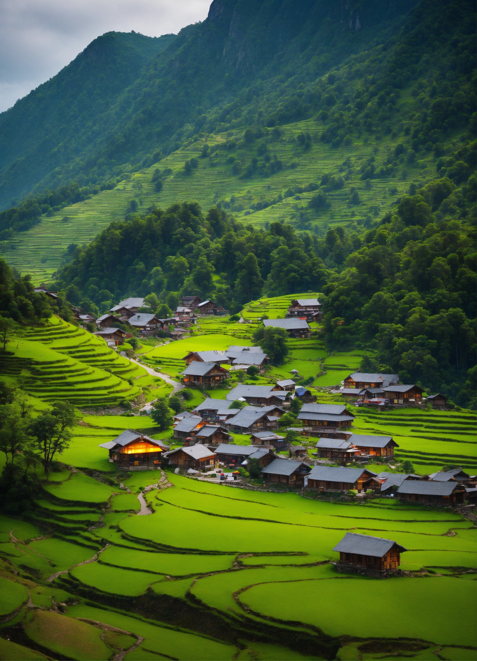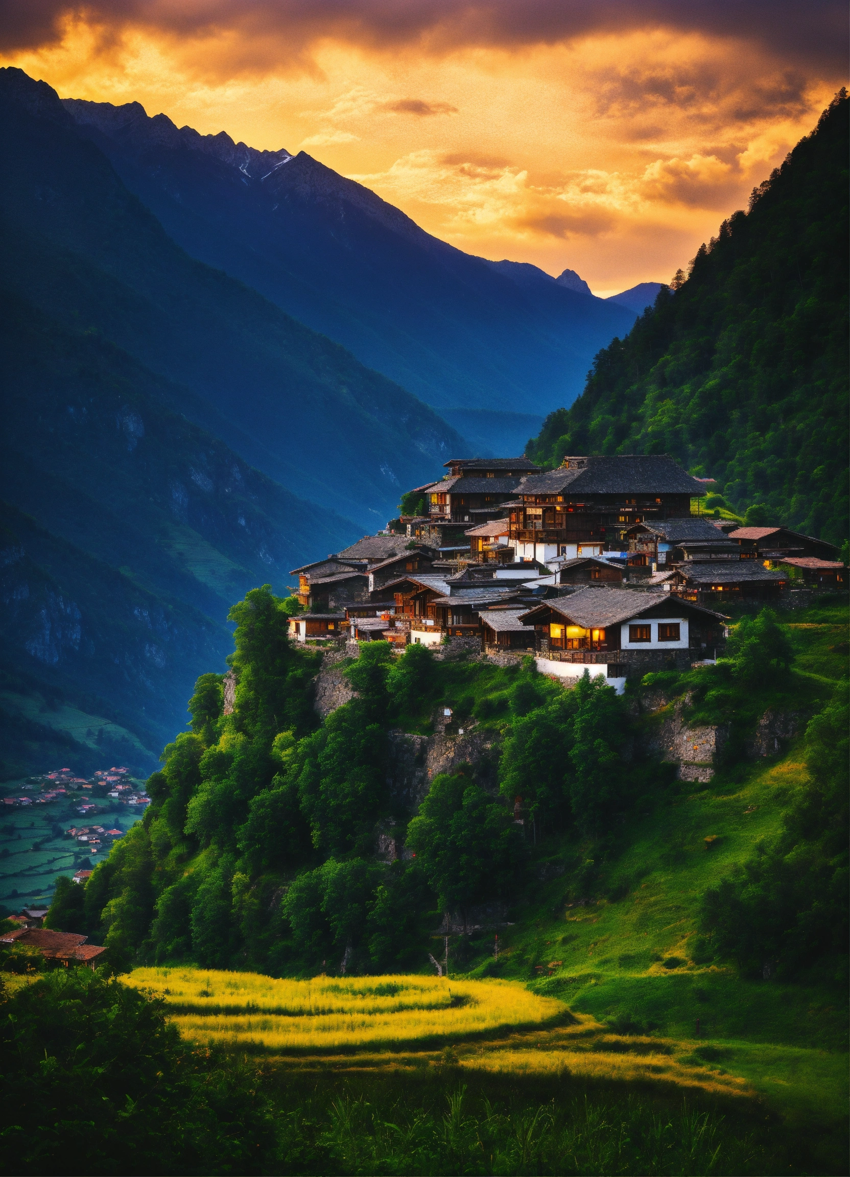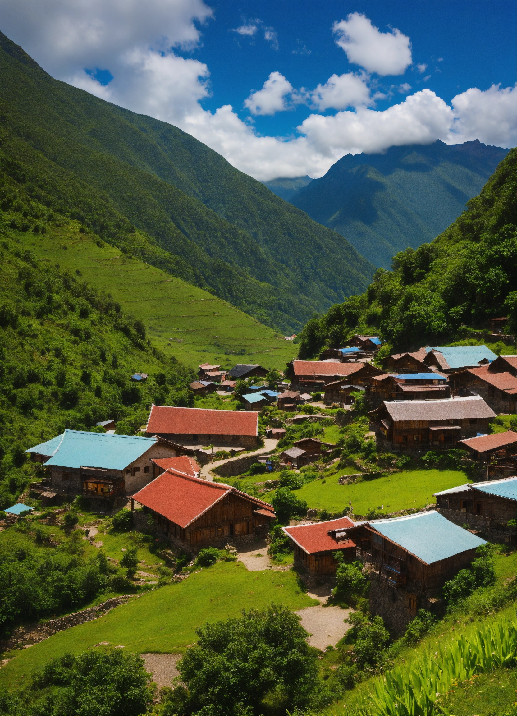 A remote mountain village in breathtaking scenery