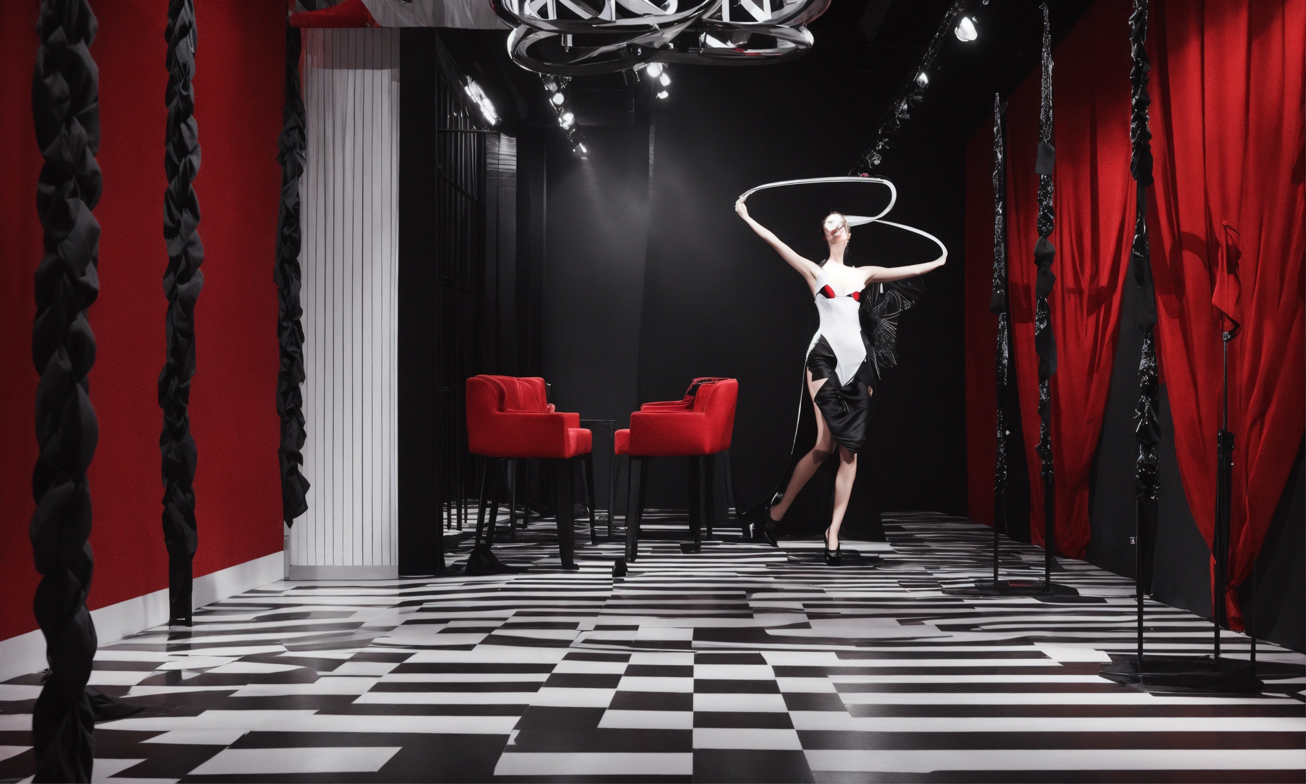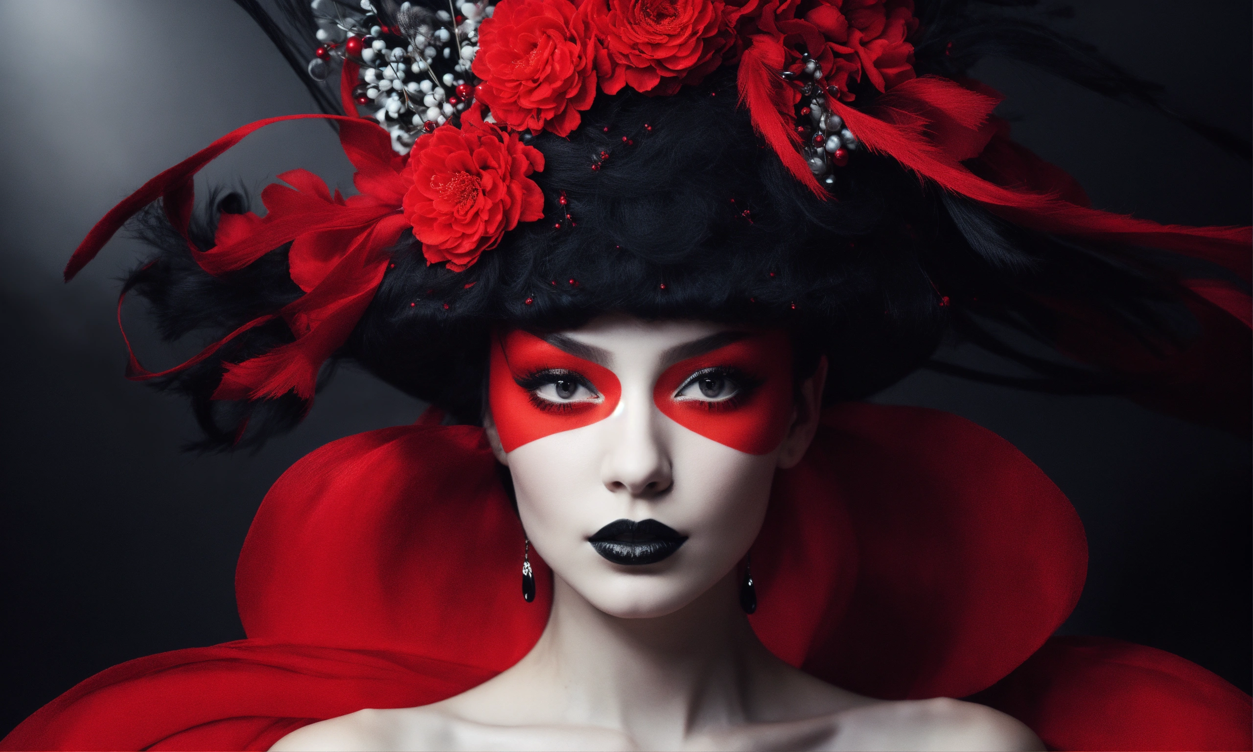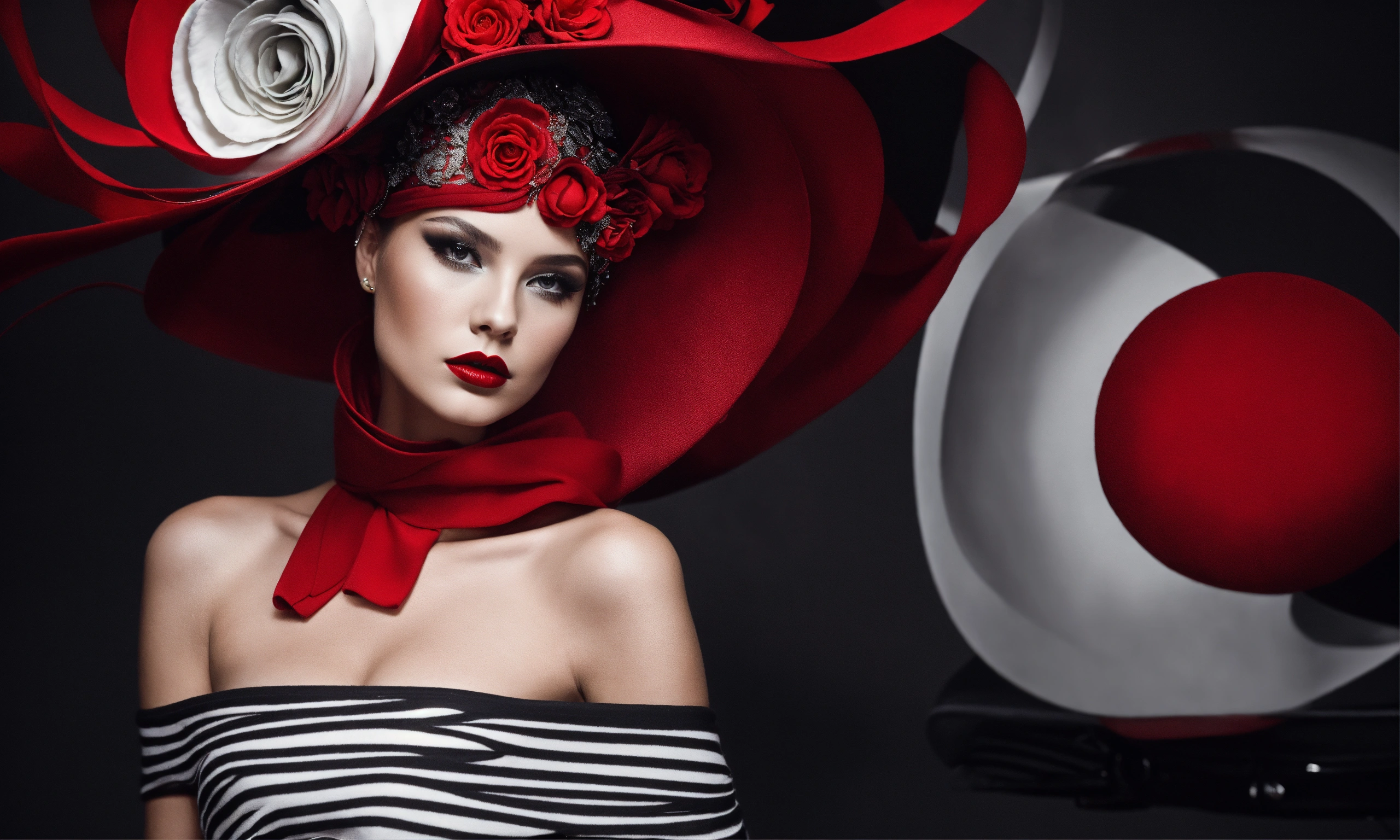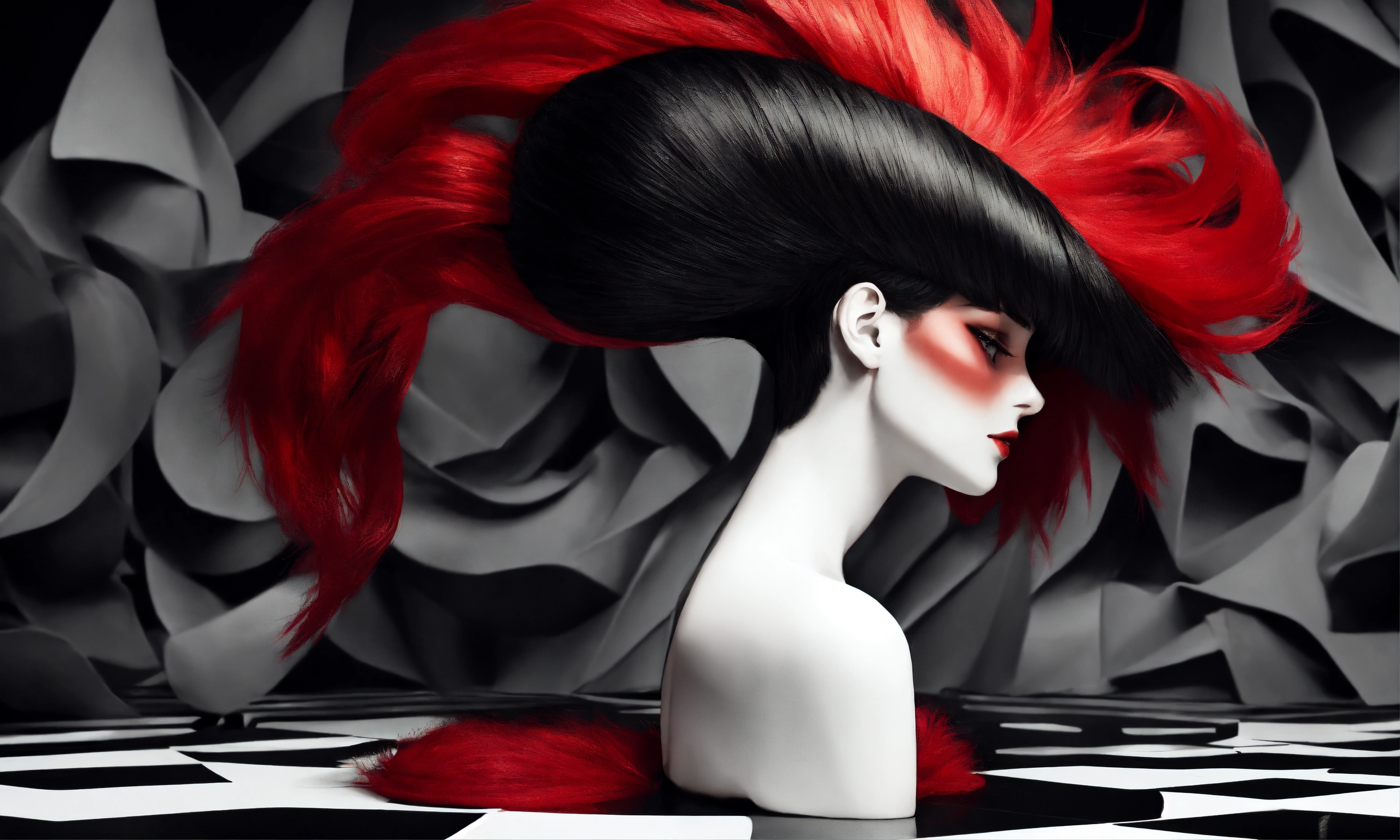 Italian surrealistic elegance black white red backgrouns for hairshow