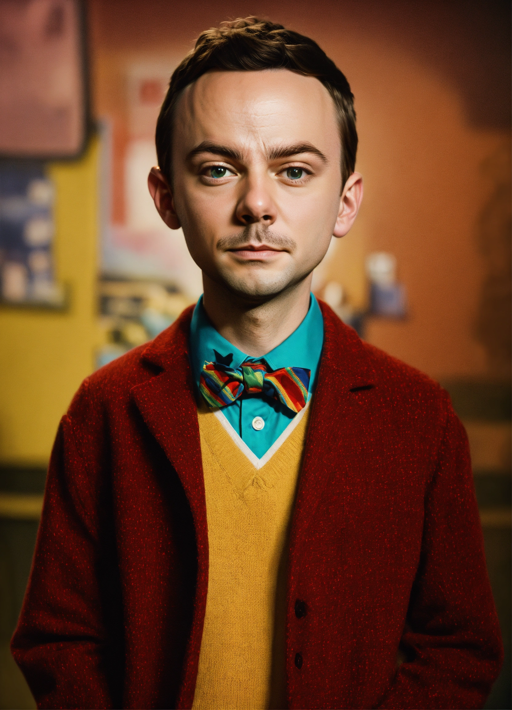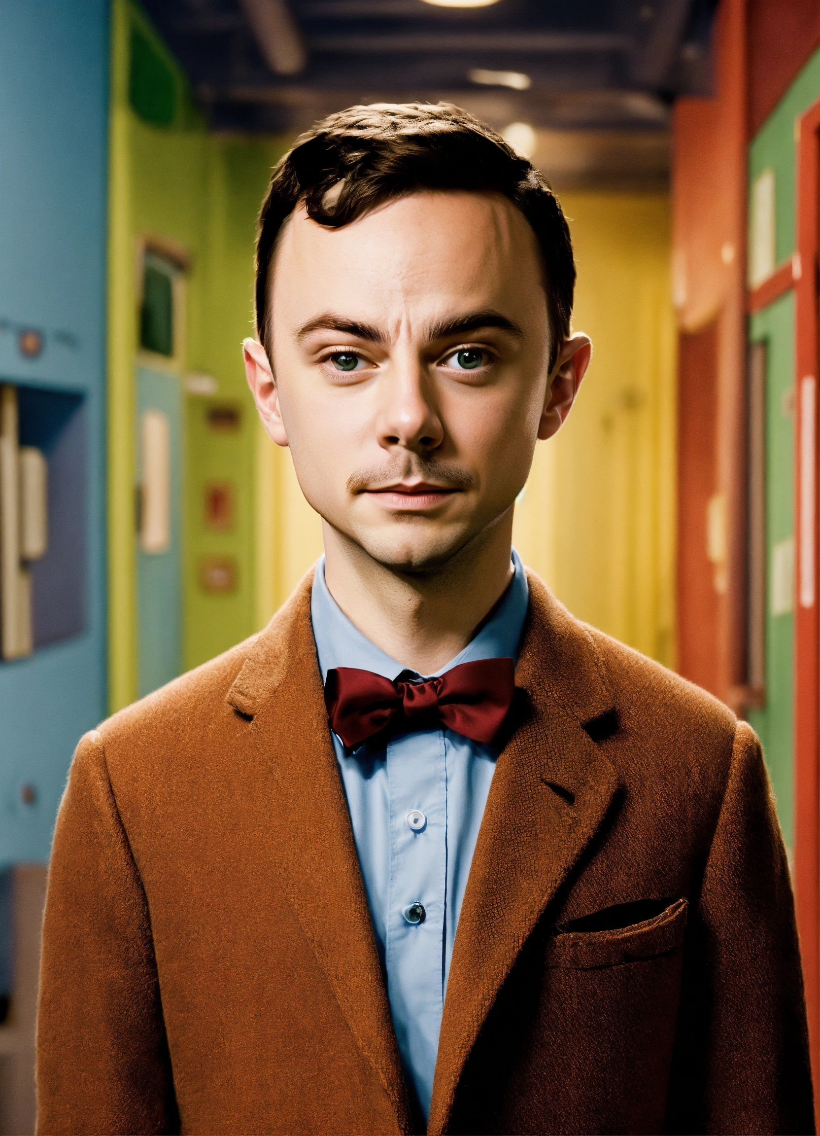 Un portrait cinématographique du petit sheldon cooper debout de face
