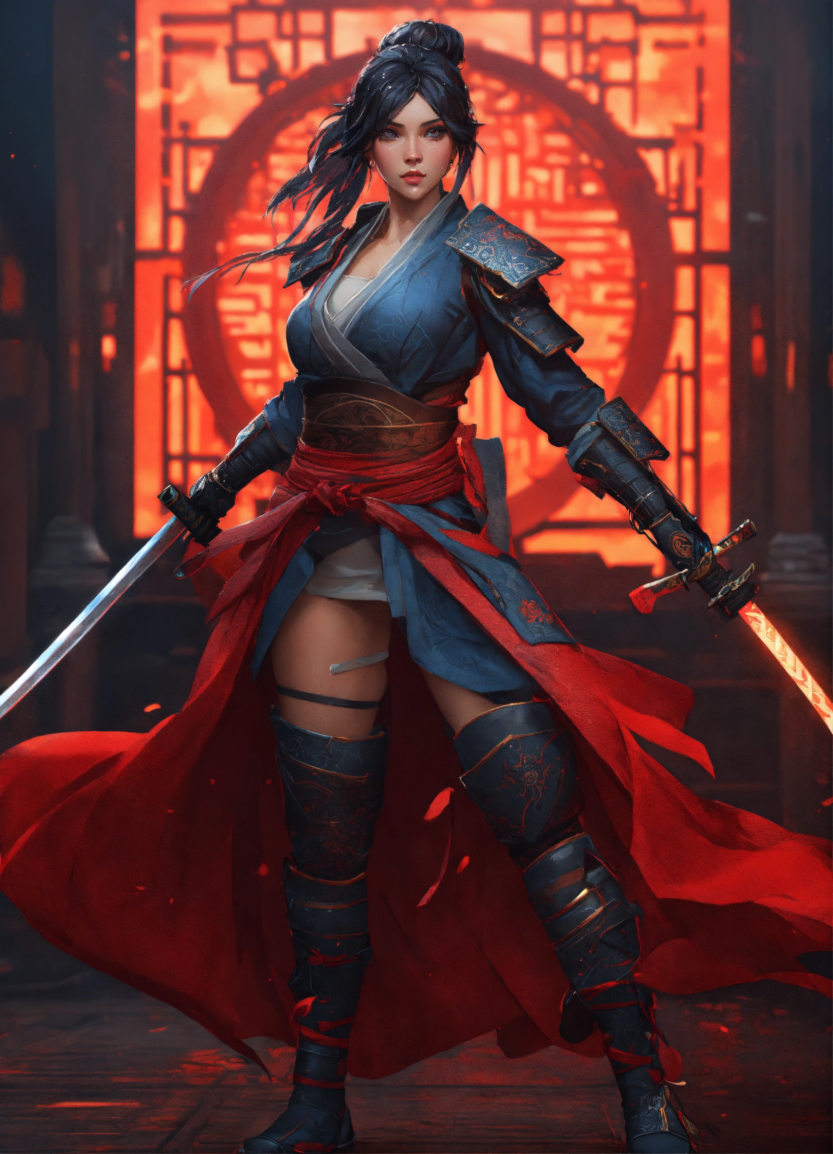 "female ninja", heroine, katana, samurai, full body, intricately detailed eyes, 8k resolution concept art portrait by greg rutkowski, artgerm, wlop, alphonse mucha dynamic lighting hyperdetailed intricately detailed splash art trending on artstation unreal engine 5 volumetric lighting