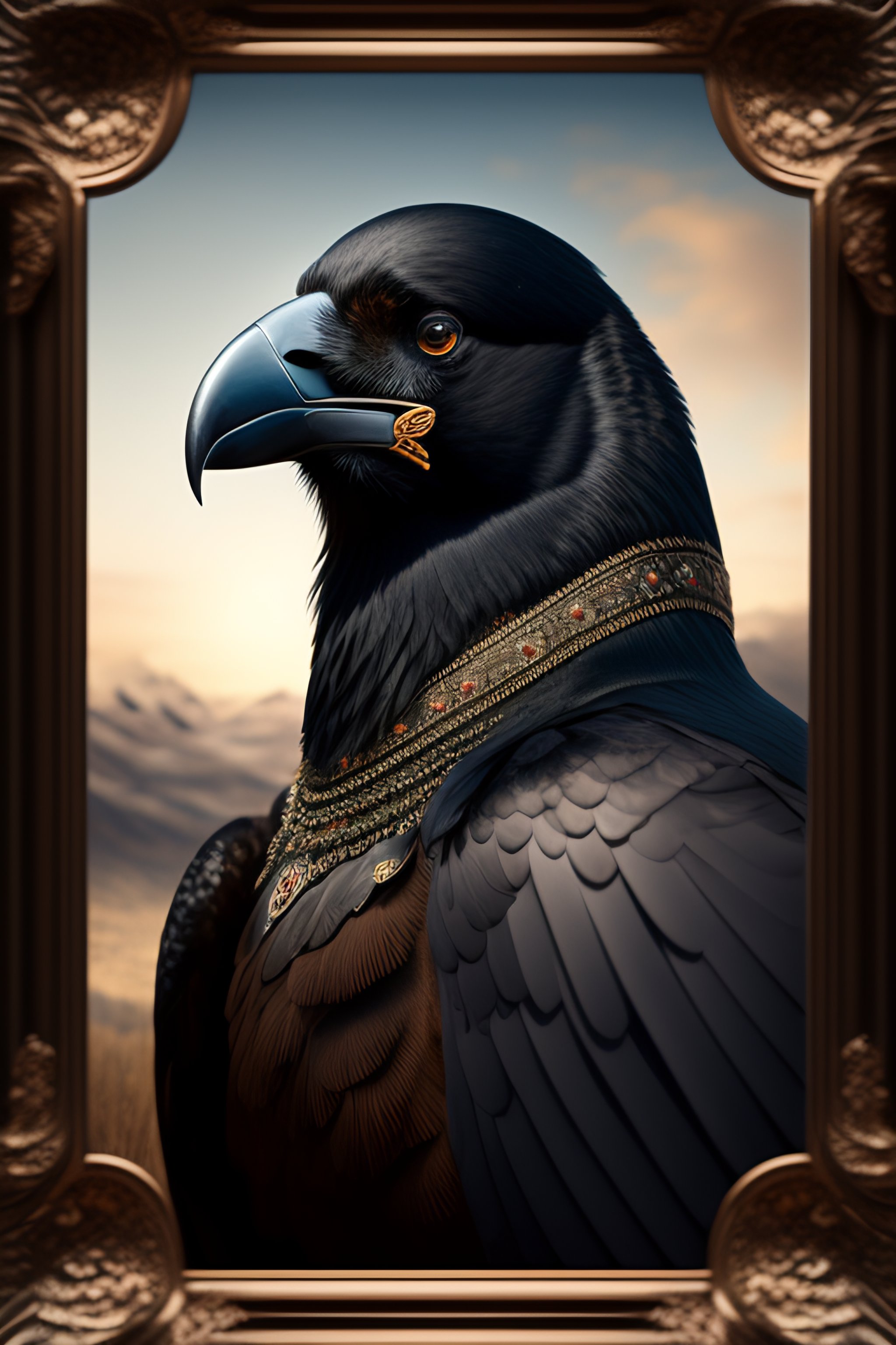 Beautiful portrait, man, realistic detailed face portrait of a rugged handsome male raven on the background, gothic
