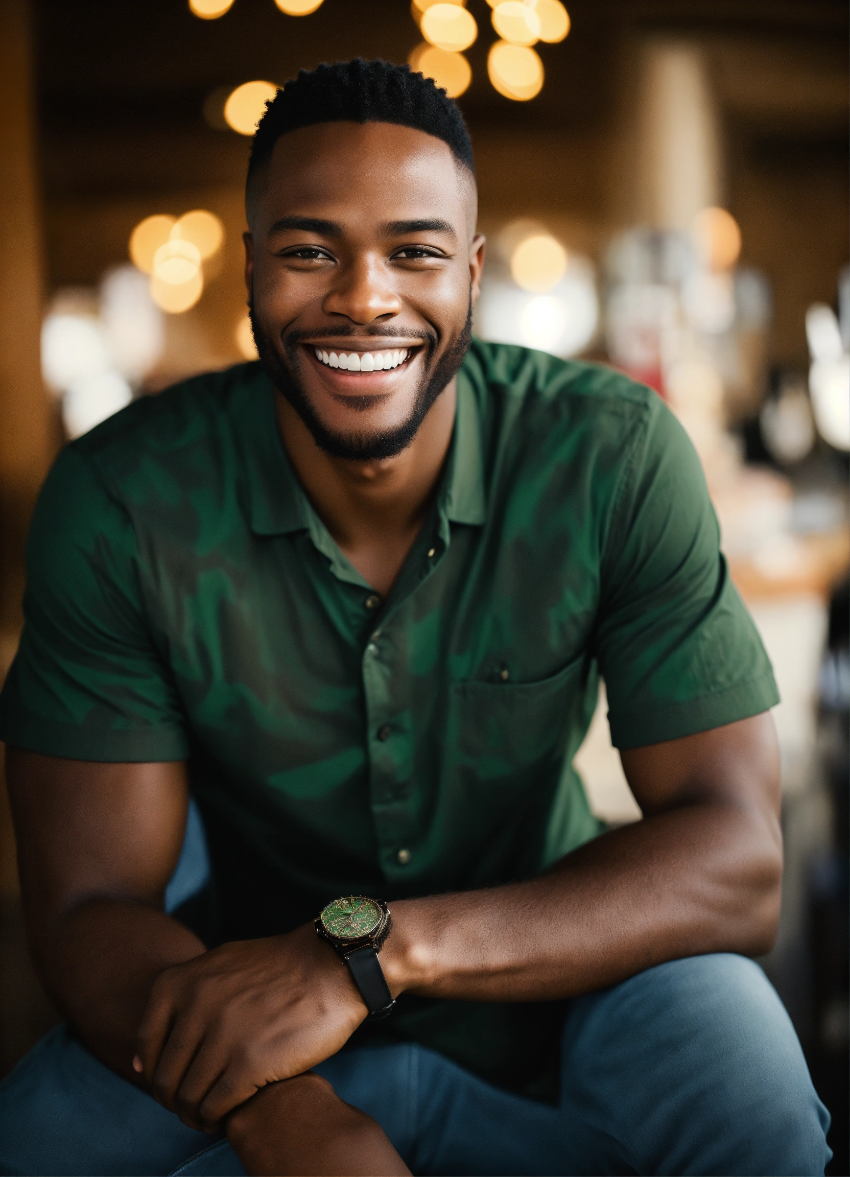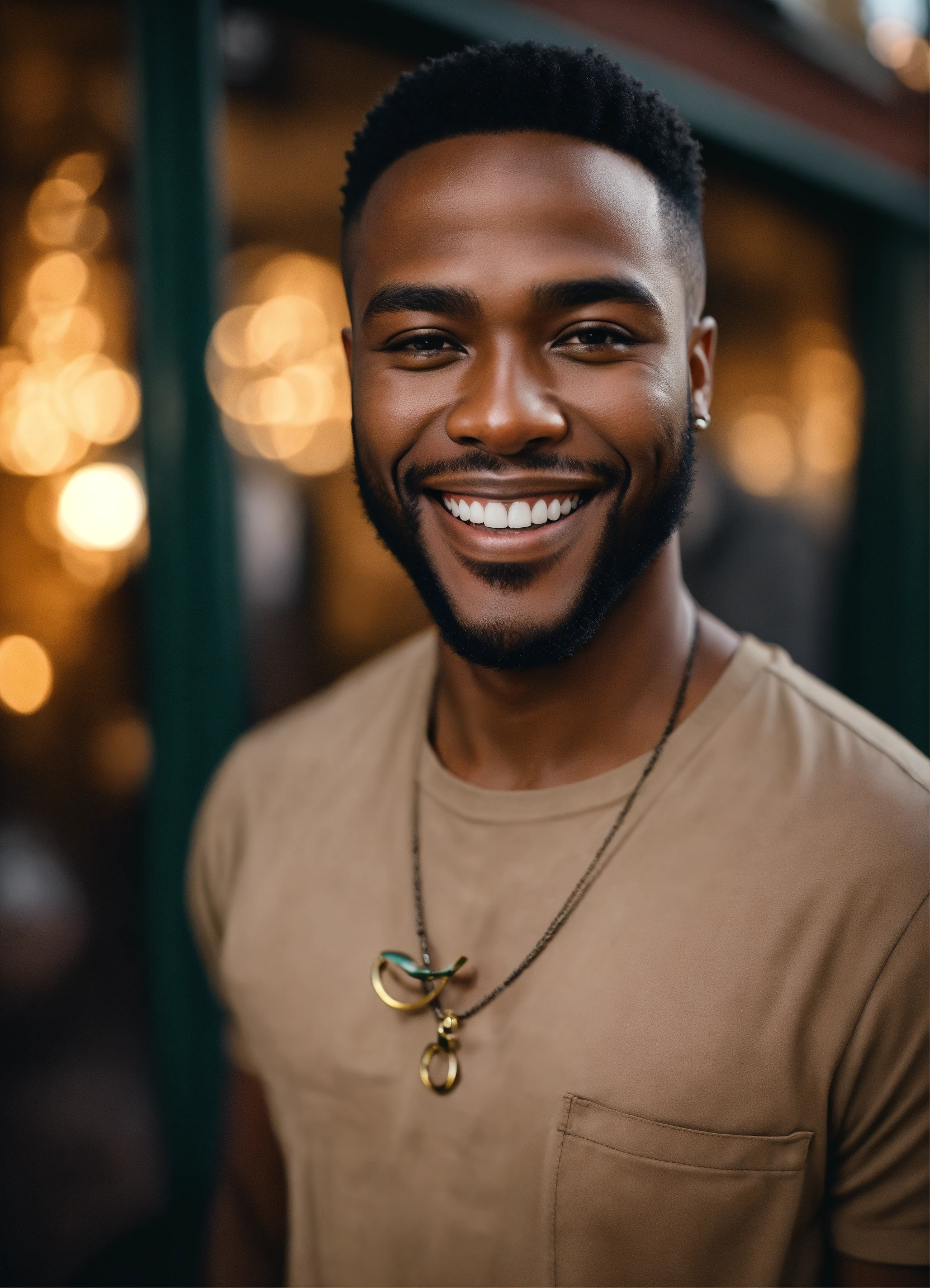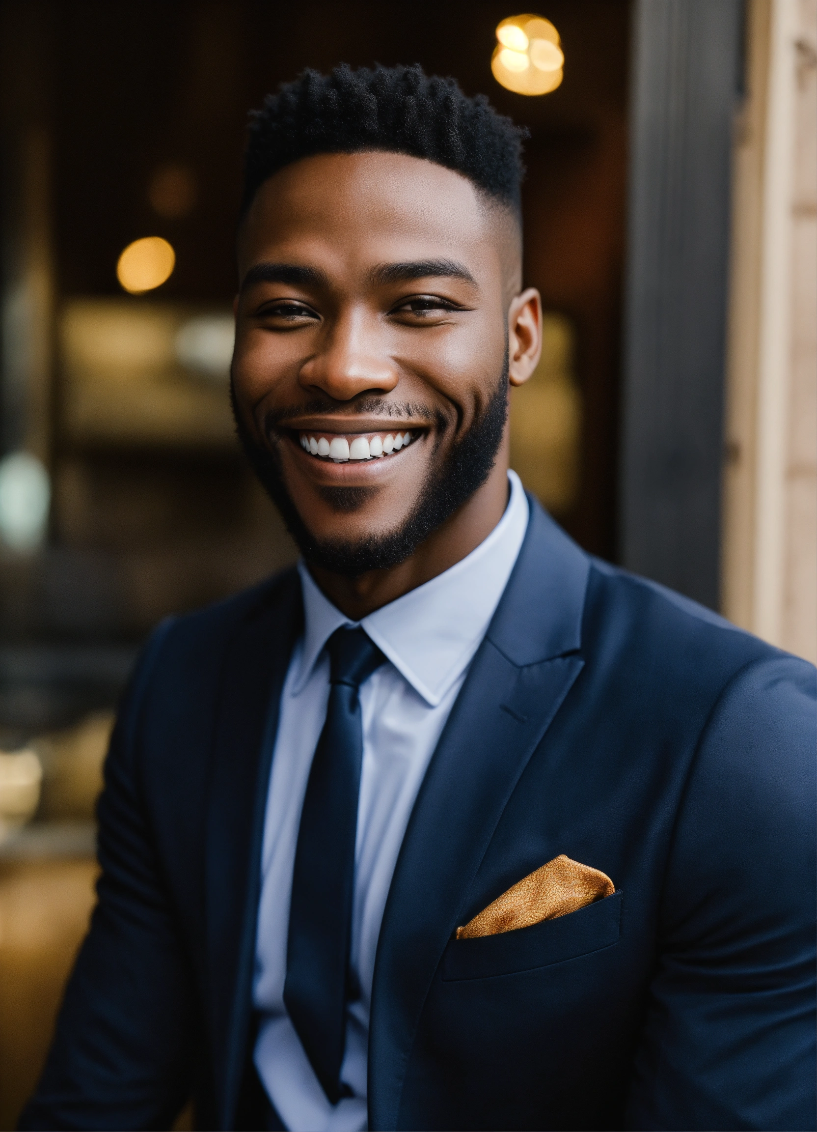 A strikingly attractive african-american man with ebony skin and a debonair smile