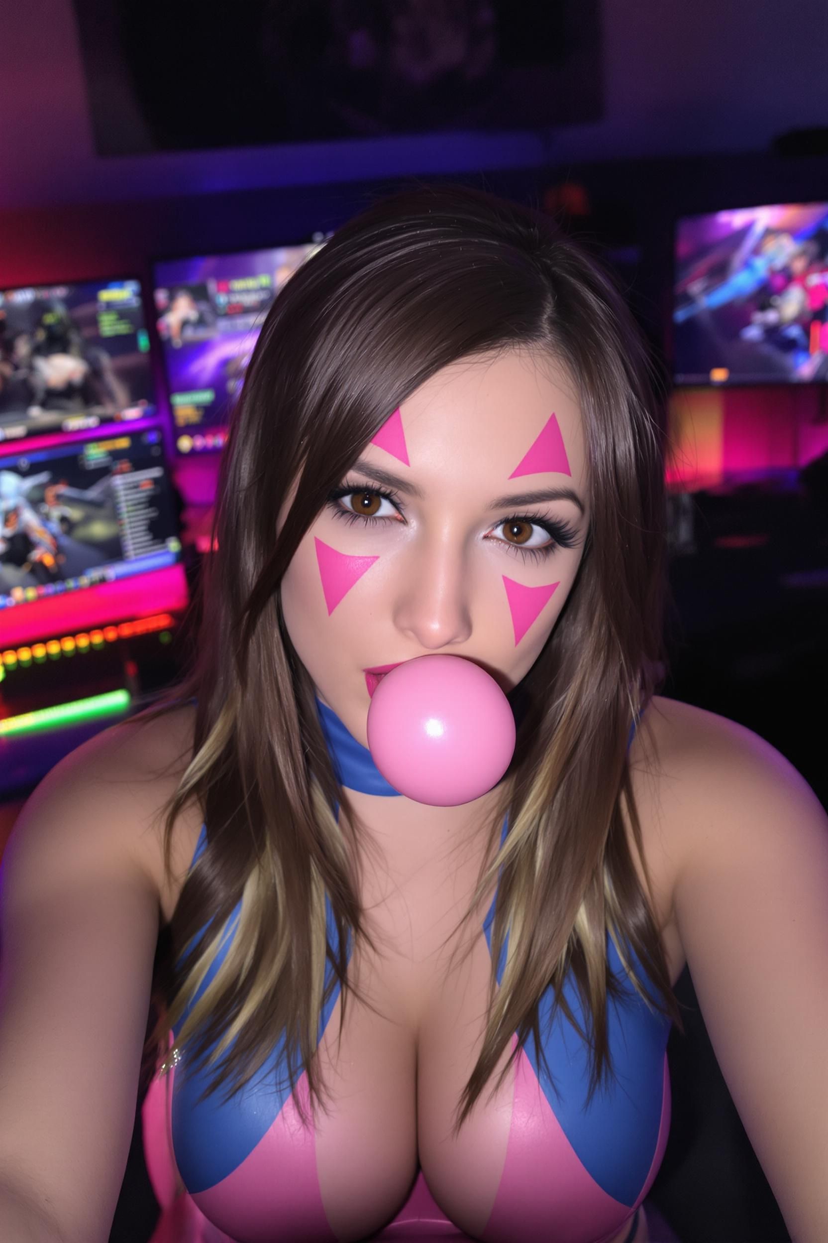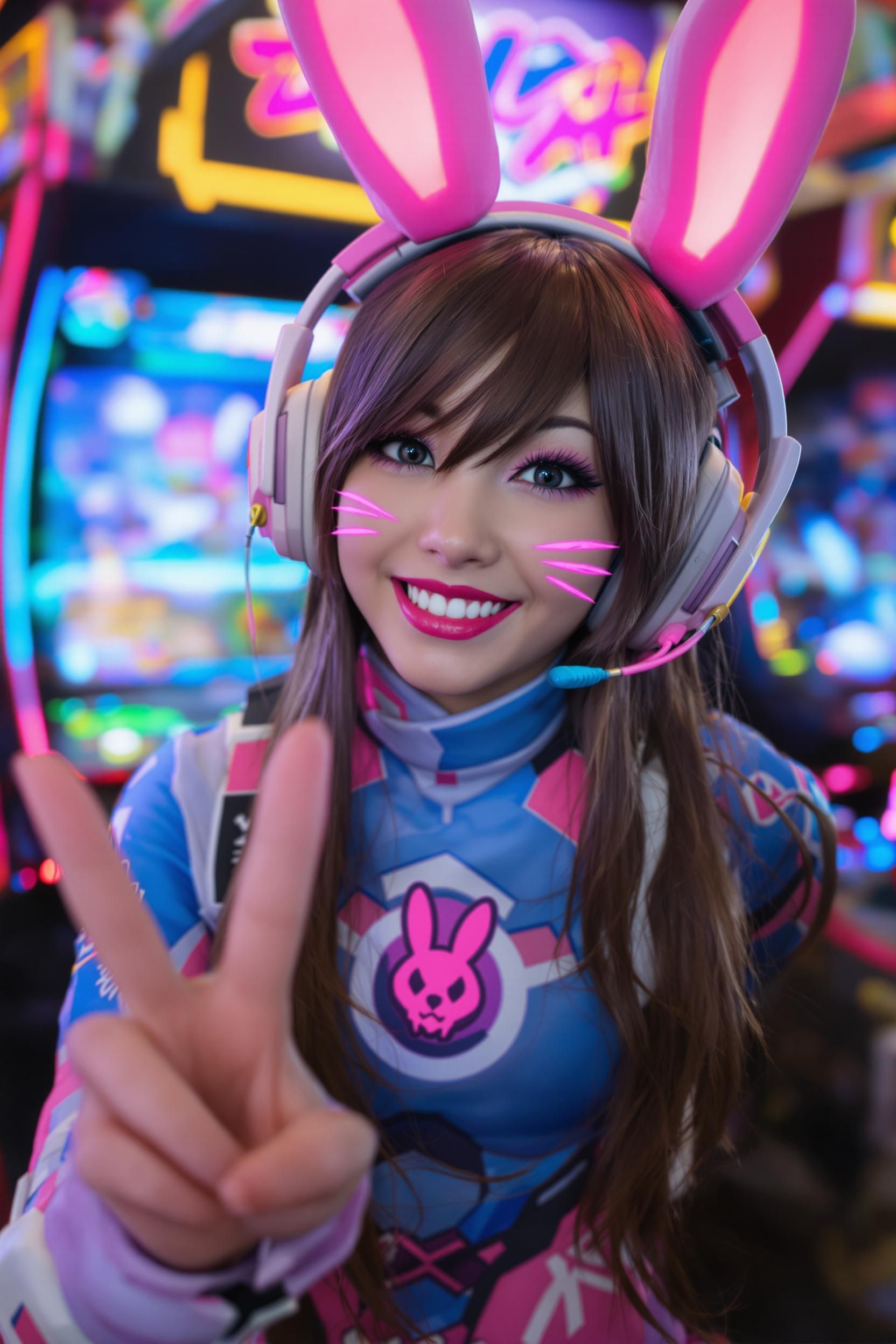 she smiles brightly or strikes a playful expression
