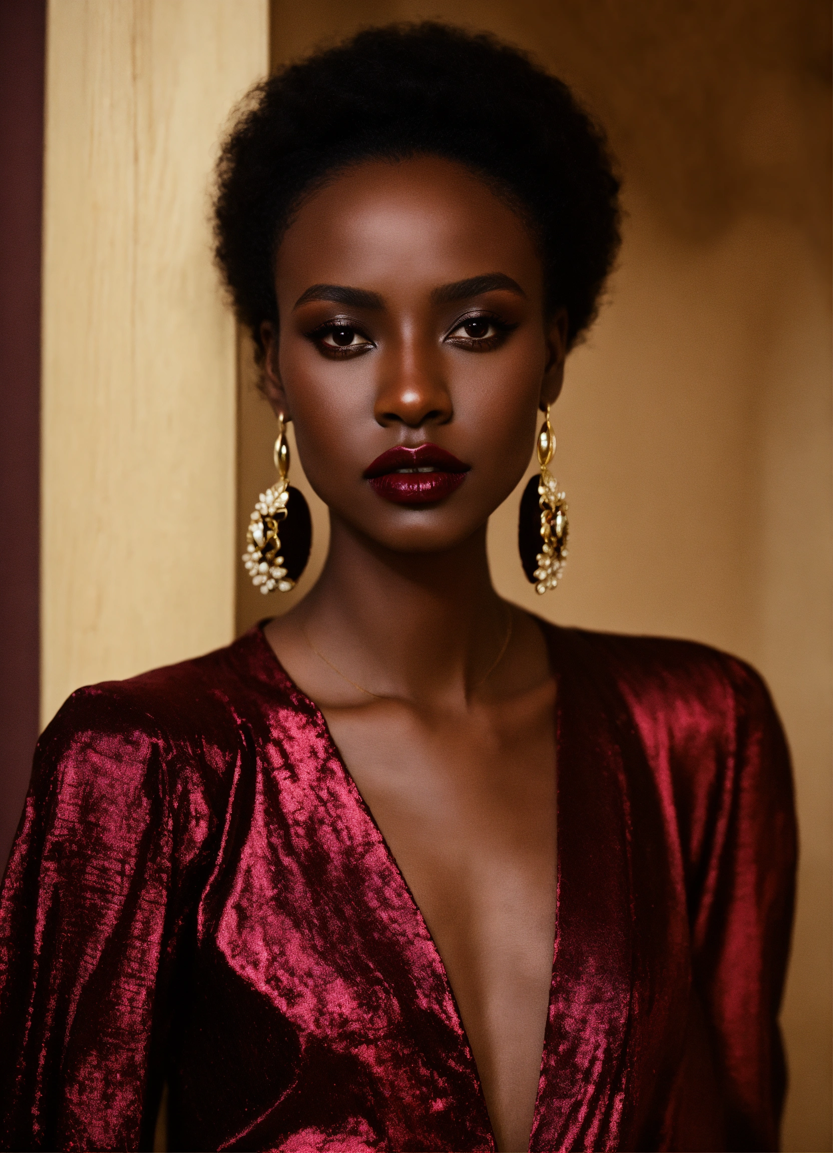 Senait gidey high class photographer deep cocoa skin bright maroon lipstick