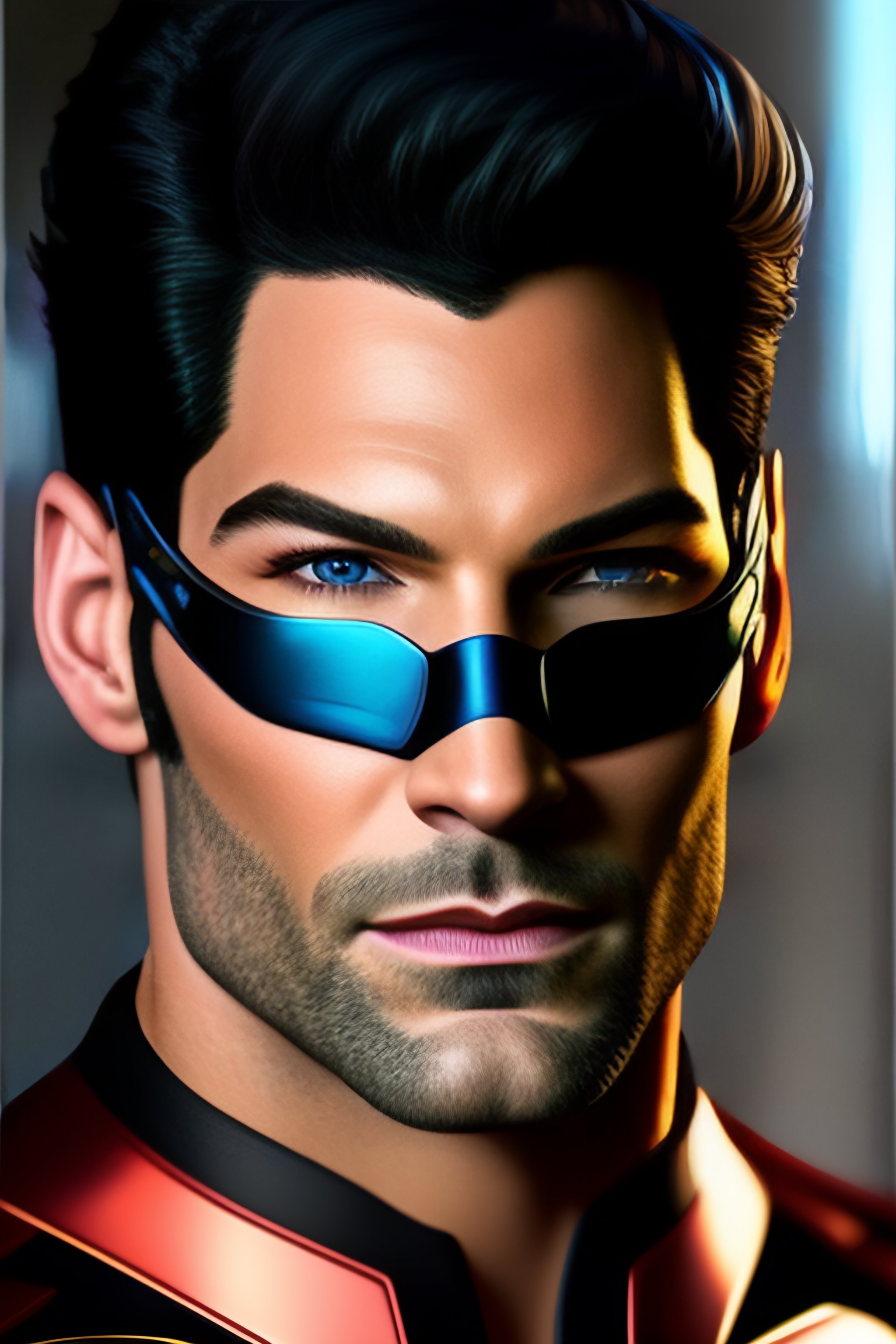 Realistic highly detailed potrait of tom ellis in nightwing suit