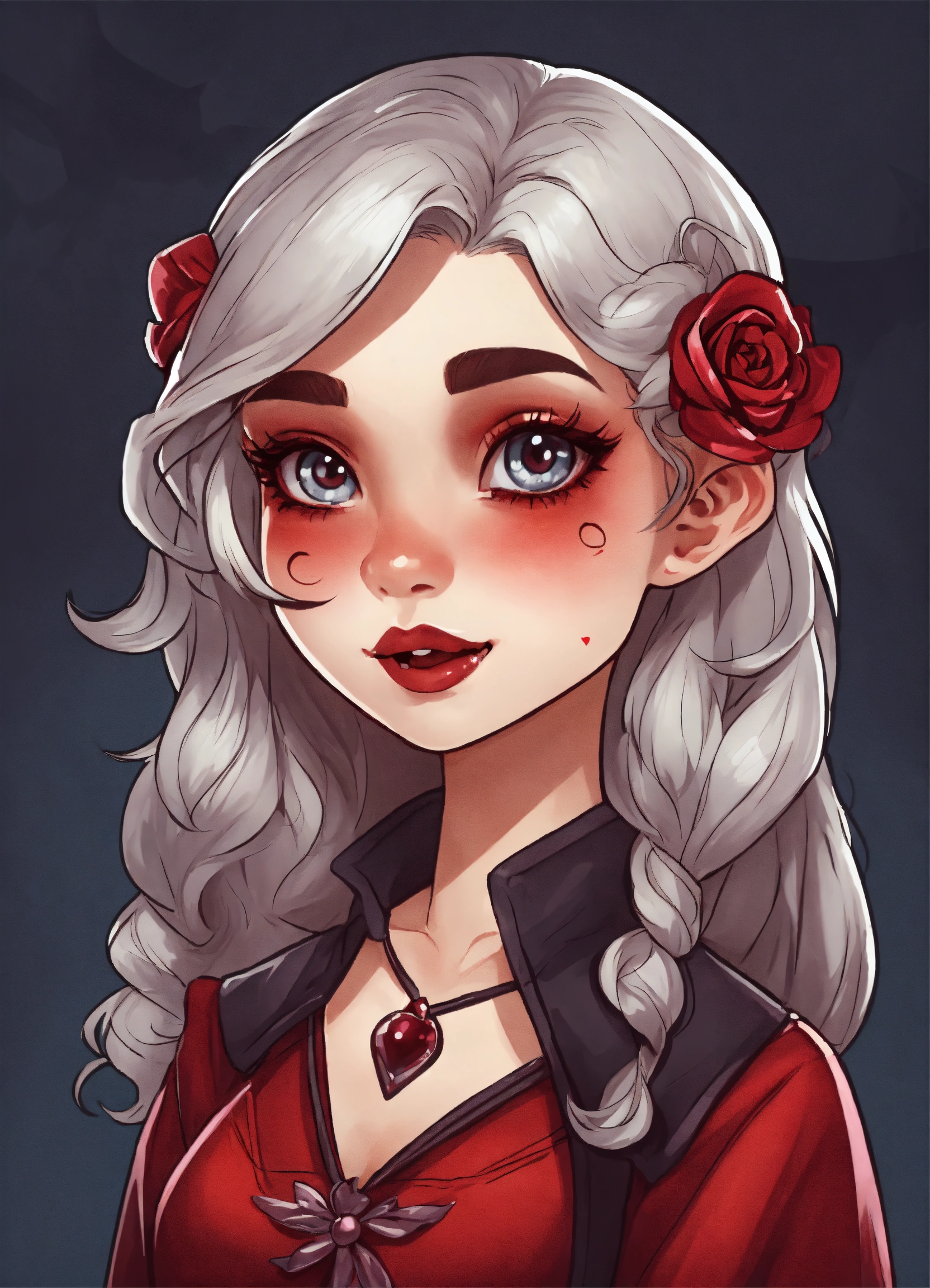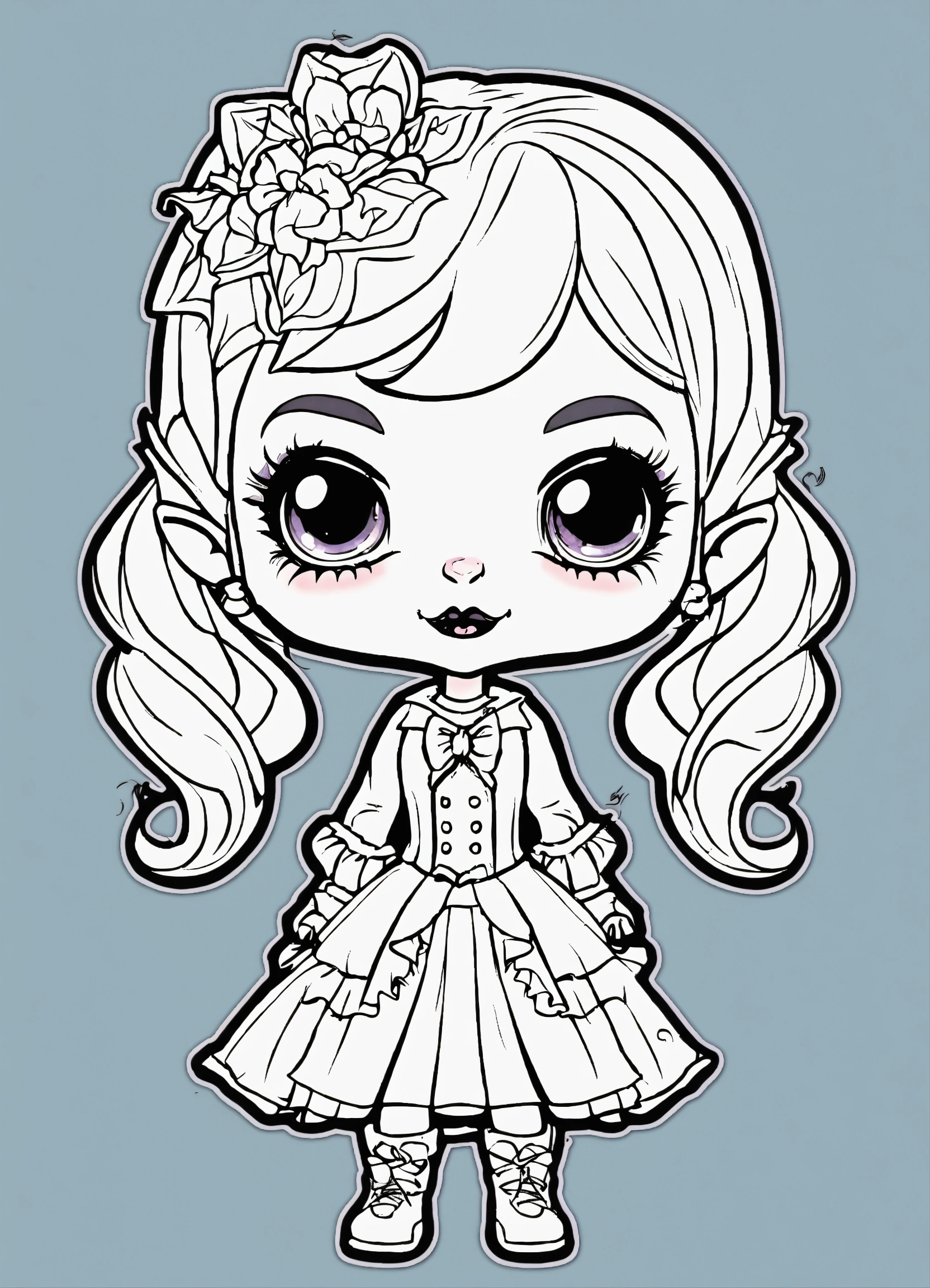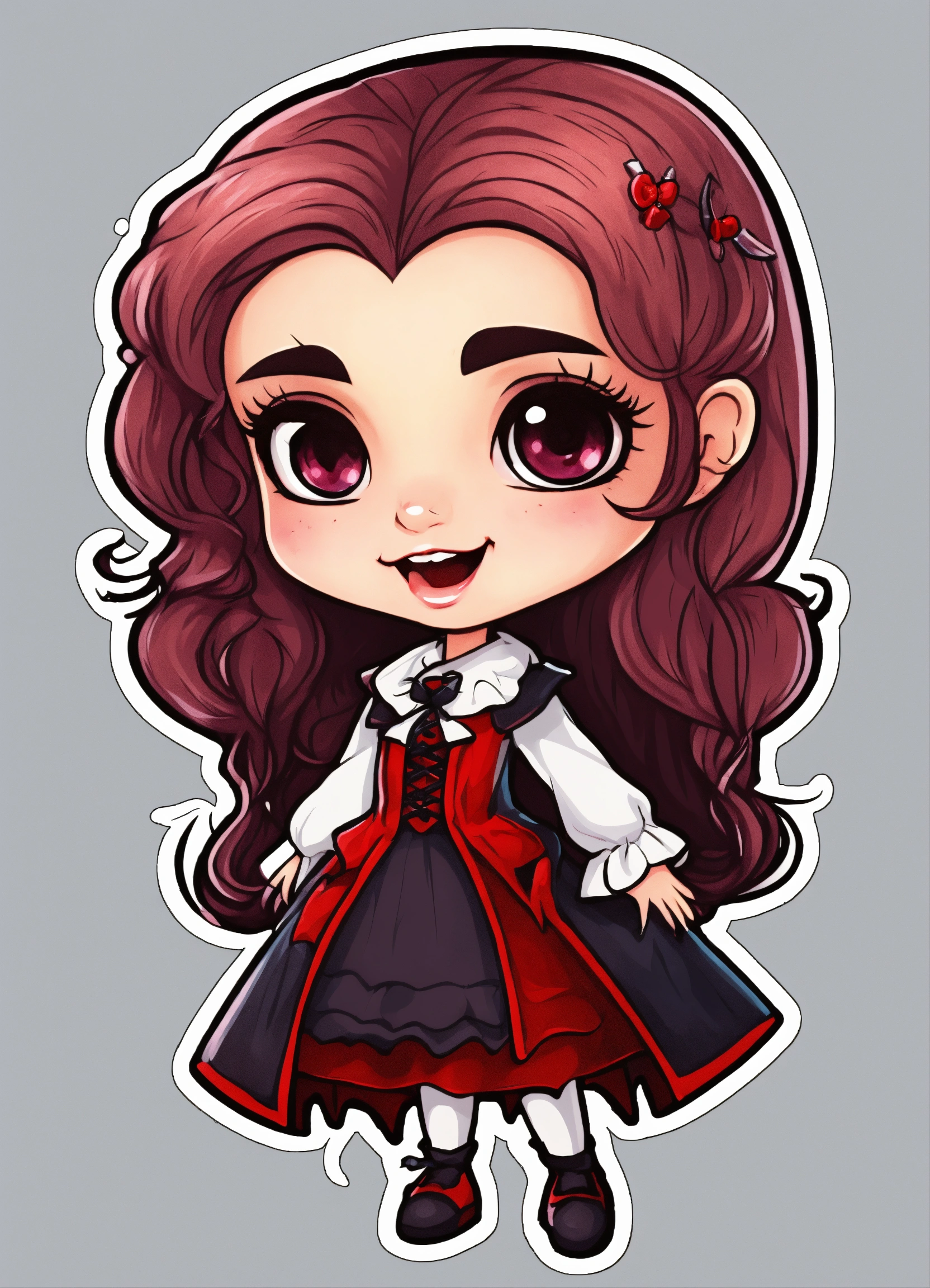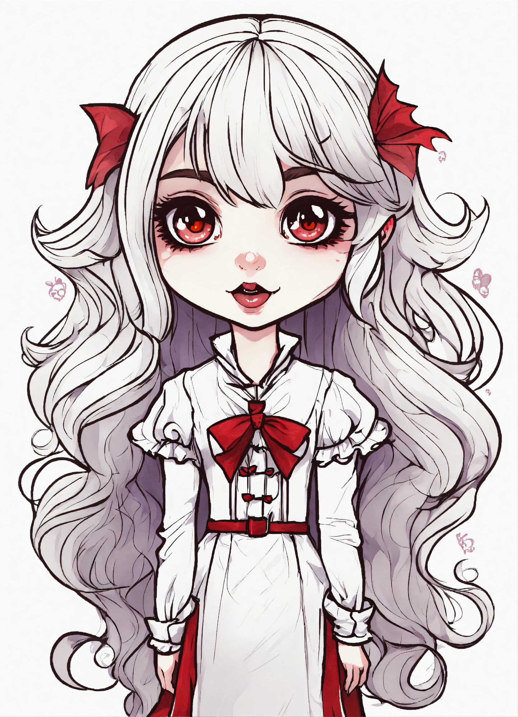 Generate a cute vampire girl illustration, 4k resolution, cartoon-sticker style with clear lines on a pure white background suitable for a children's coloring book.