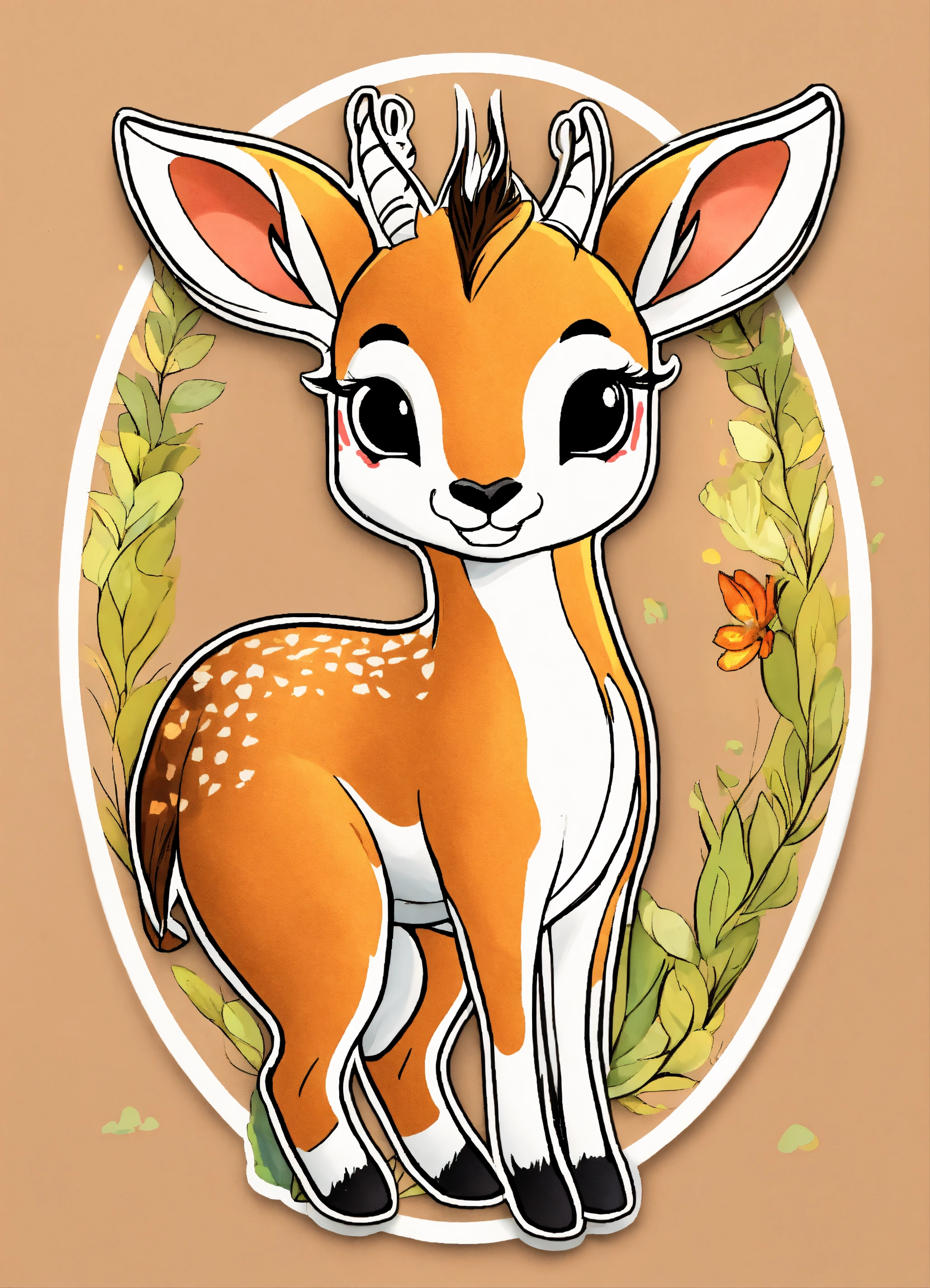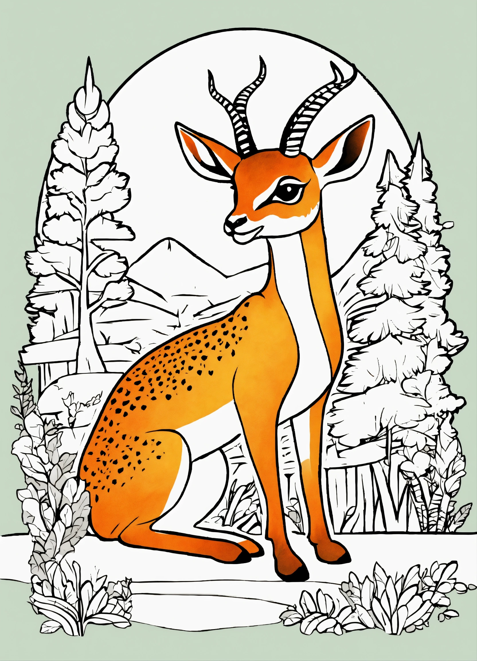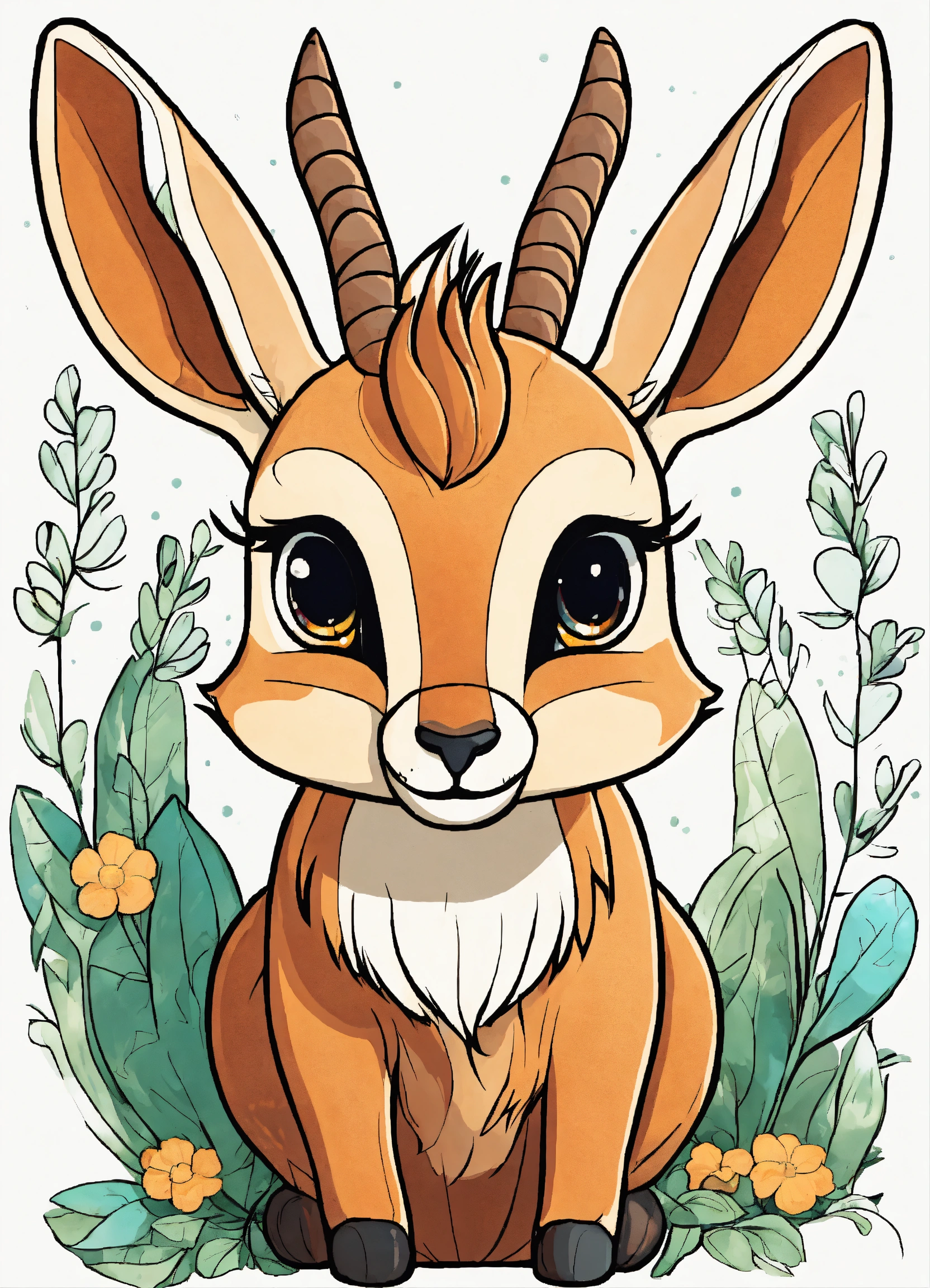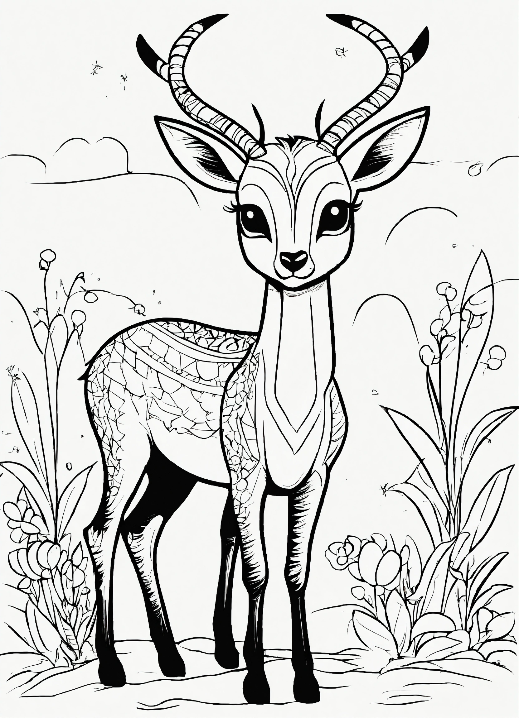 Generate a cute gazelle illustration, resolution, cartoon-sticker style with clear lines on a pure white background suitable for a children's coloring book.