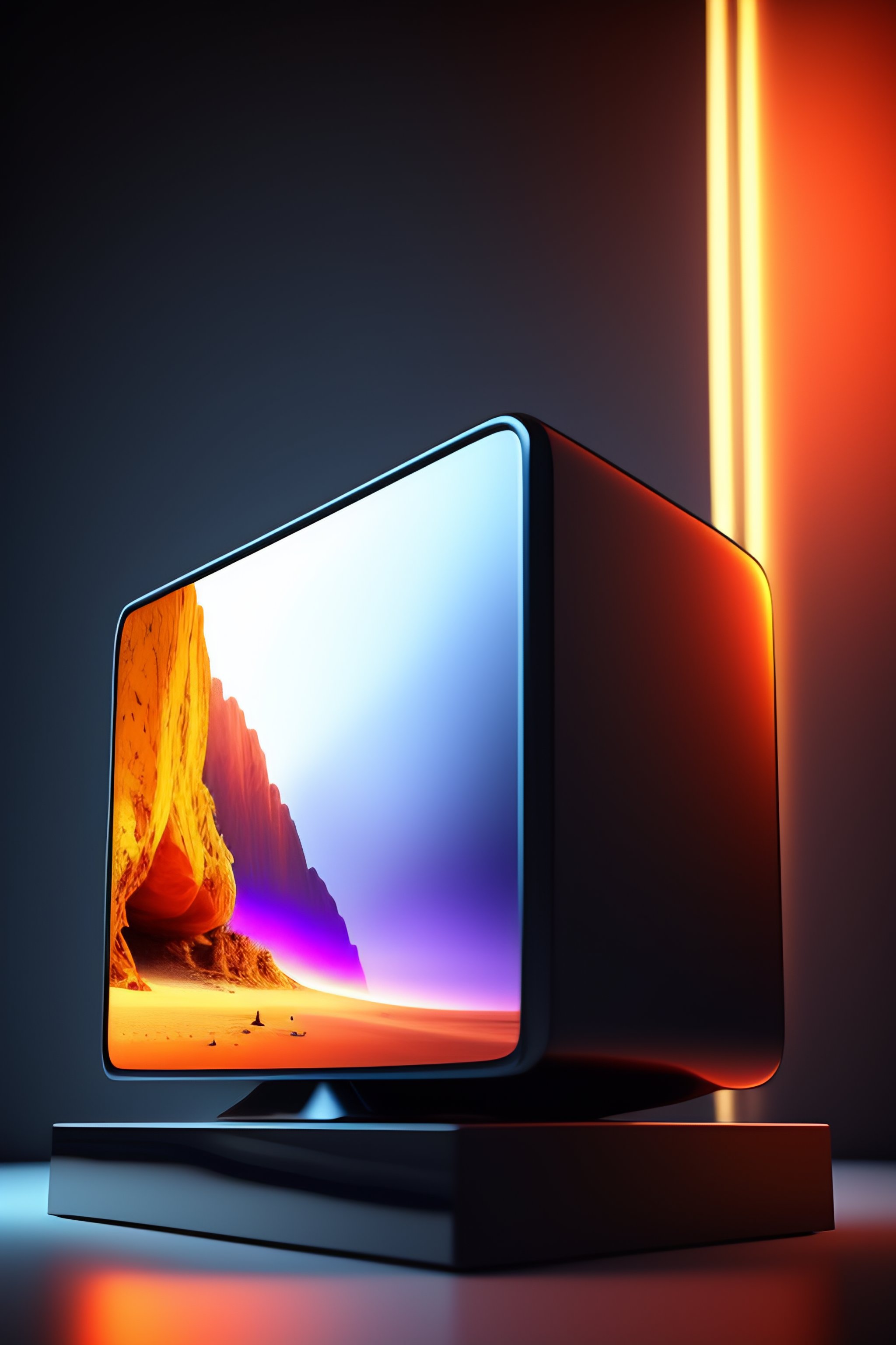Tv with a 3d cube on the screen