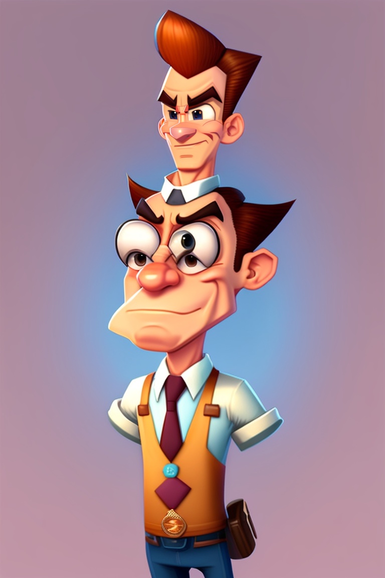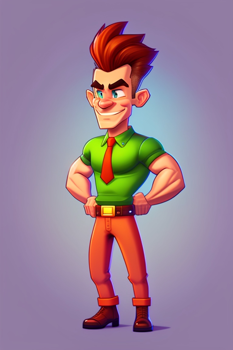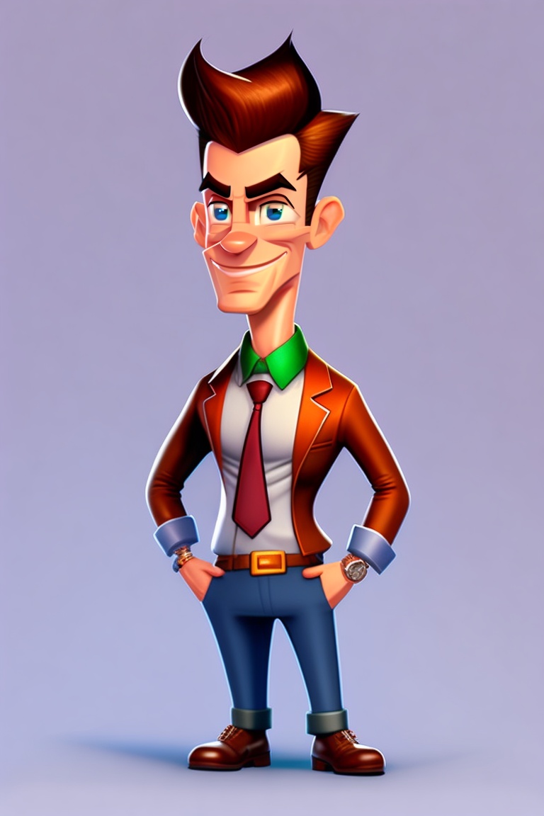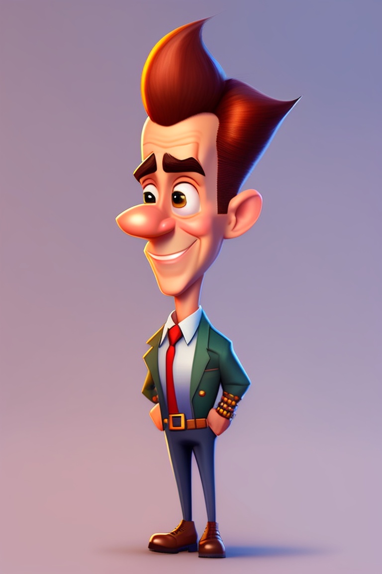 Cartoon style, cute 2d drawing, jimmy neutron style of drawing, kind employee, mr nice guy, standing straight, full body shot, front view, wearing wrist watch, clean haircut, professional, without beard, without mustache, mr. nice guy, big eyes