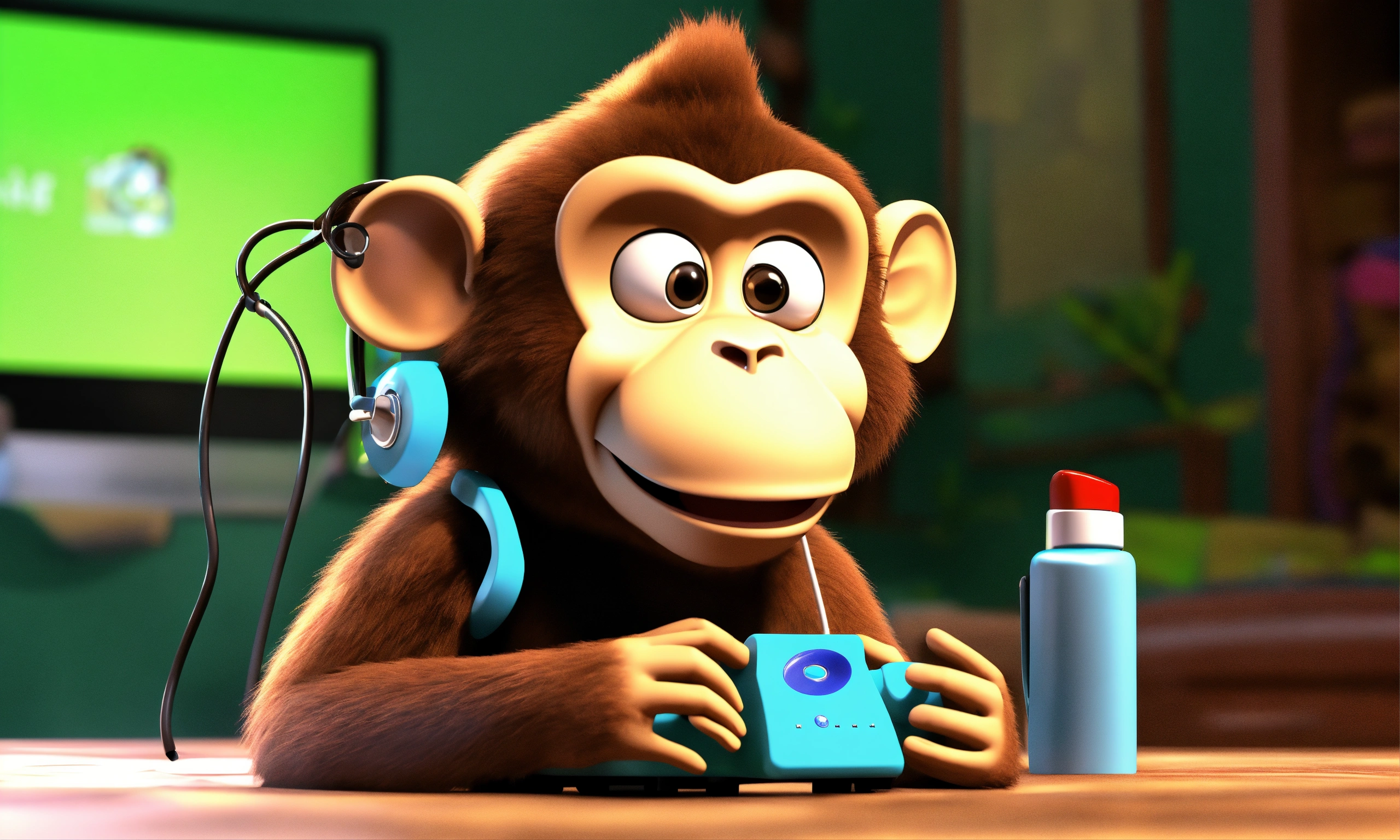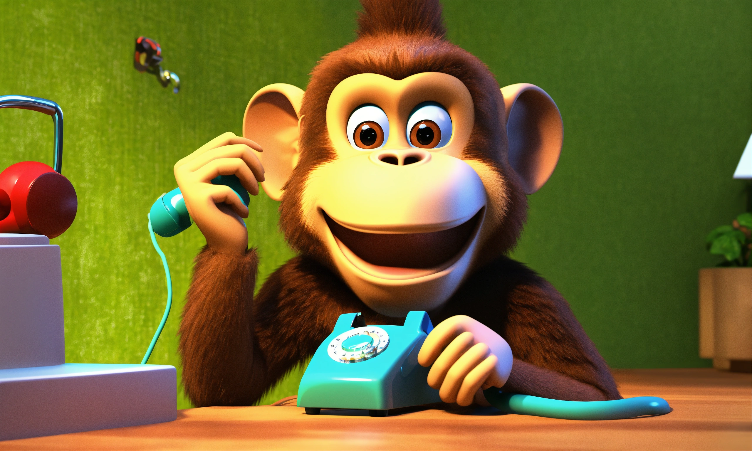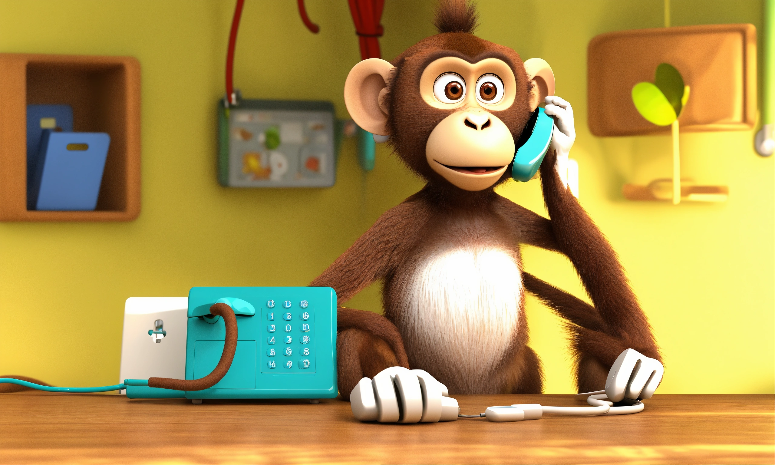 Mother monkey calls the doctor monkey on the phone