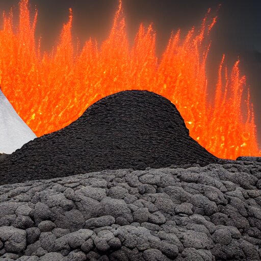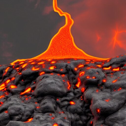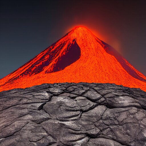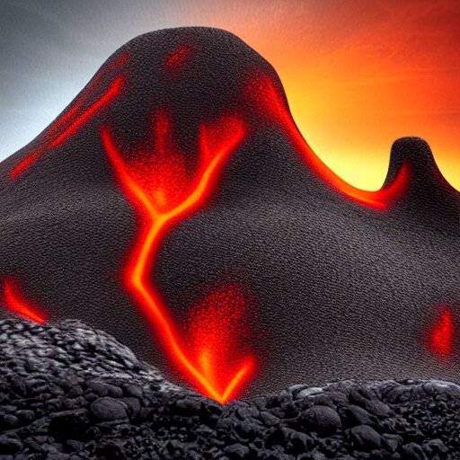A baby magma golem made of rock and lava, photography, dark grey and orange colours, volcano in the background, detailed