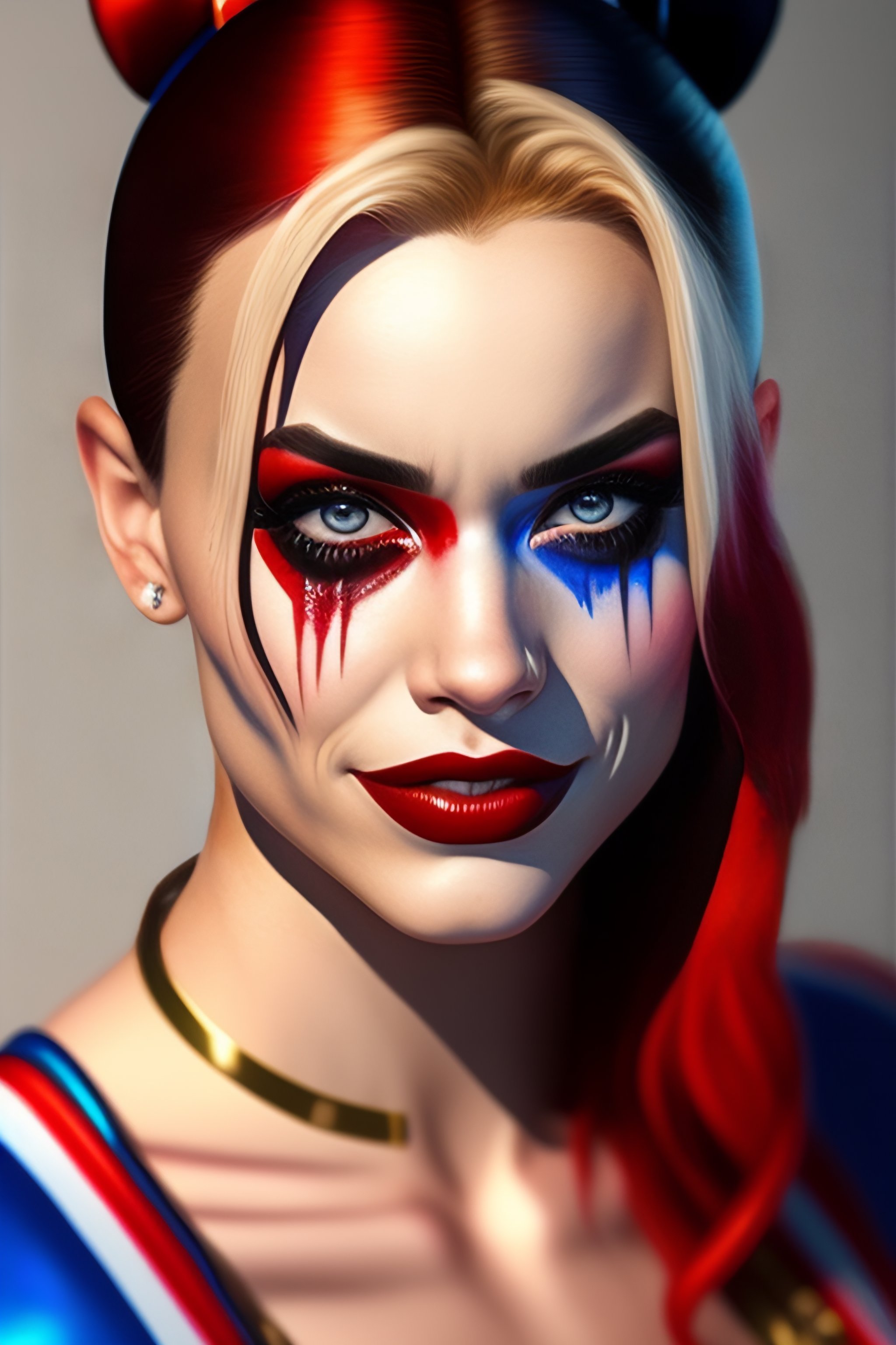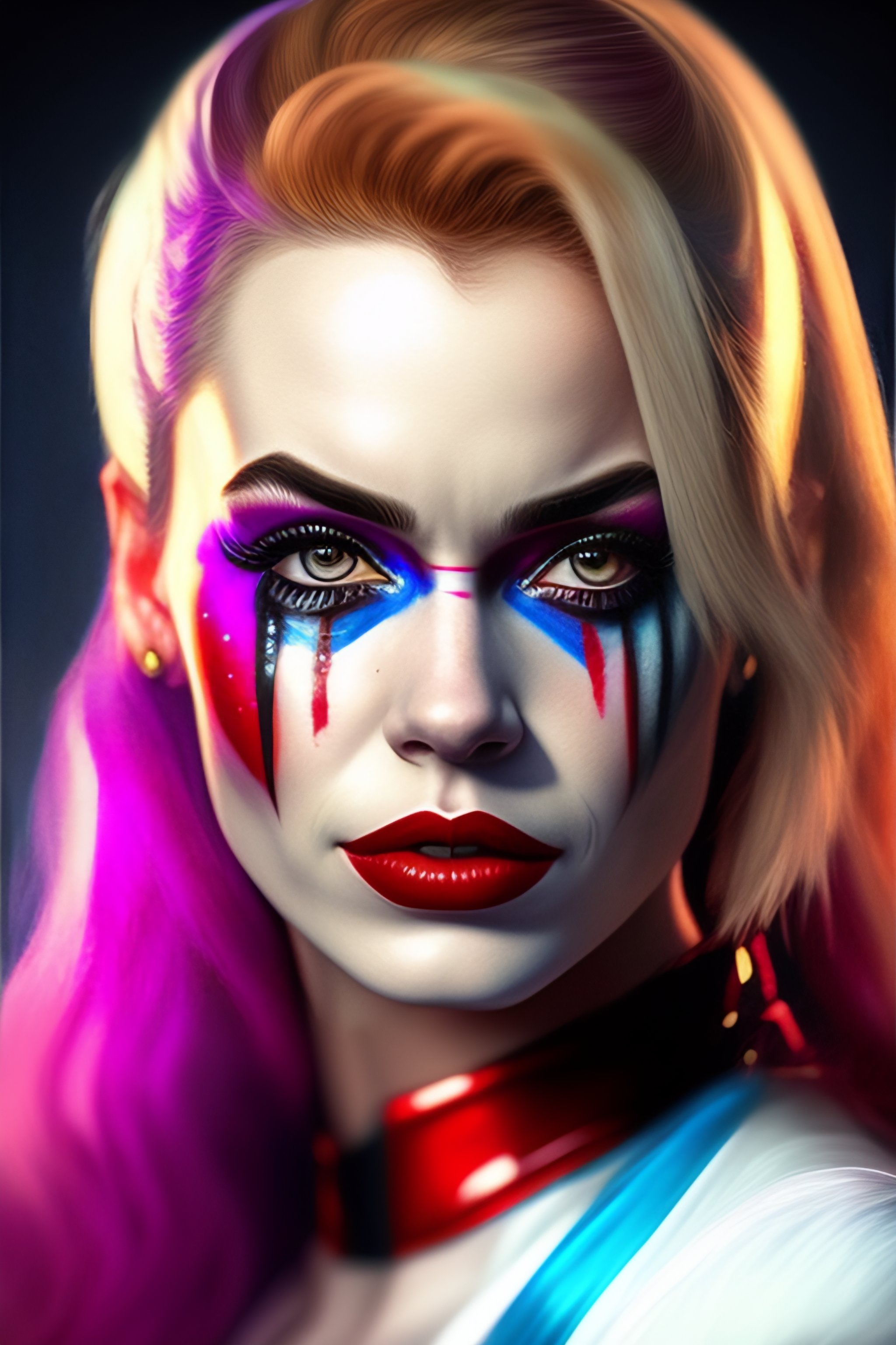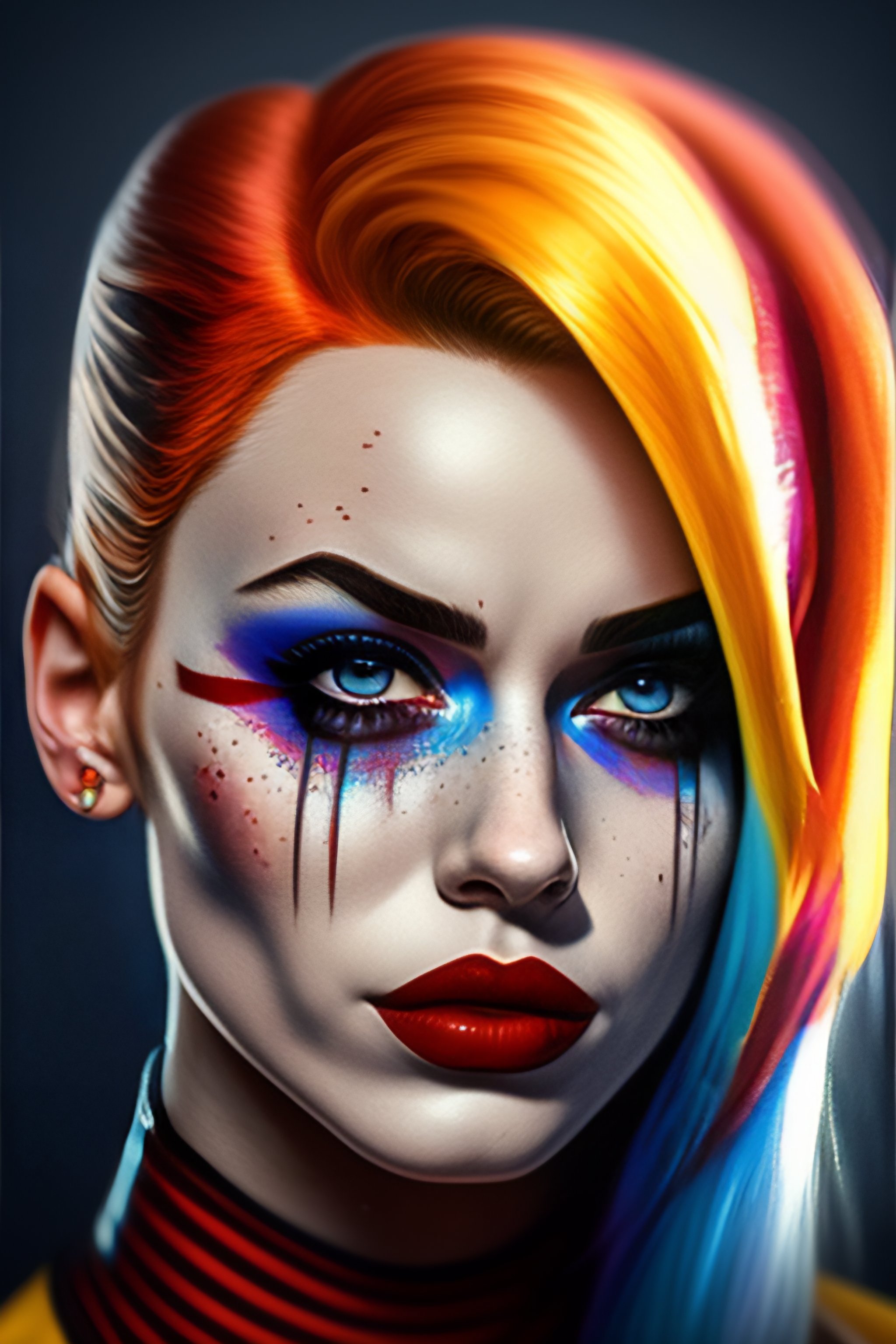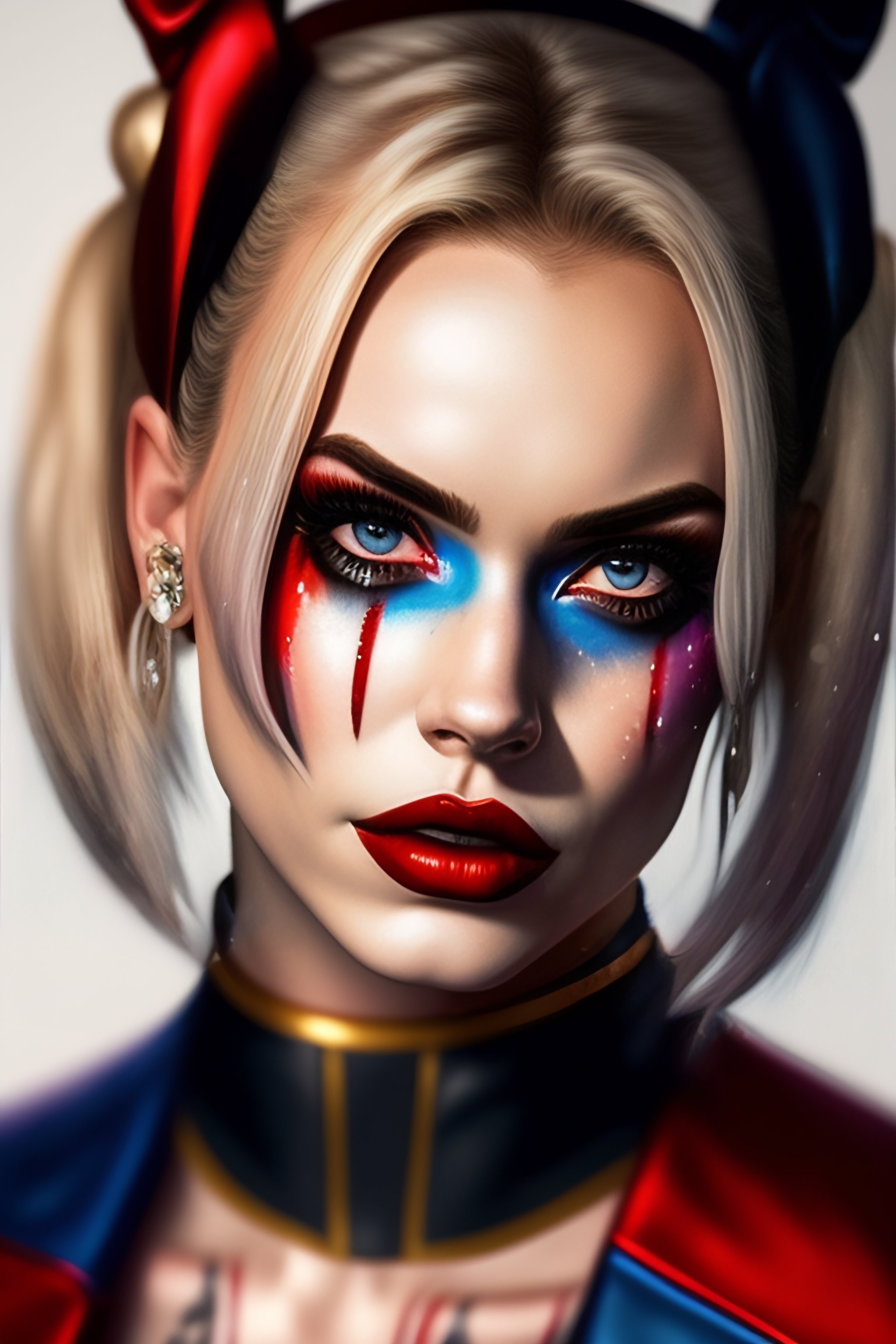 A portret of harley quinn crying hyperrealistic