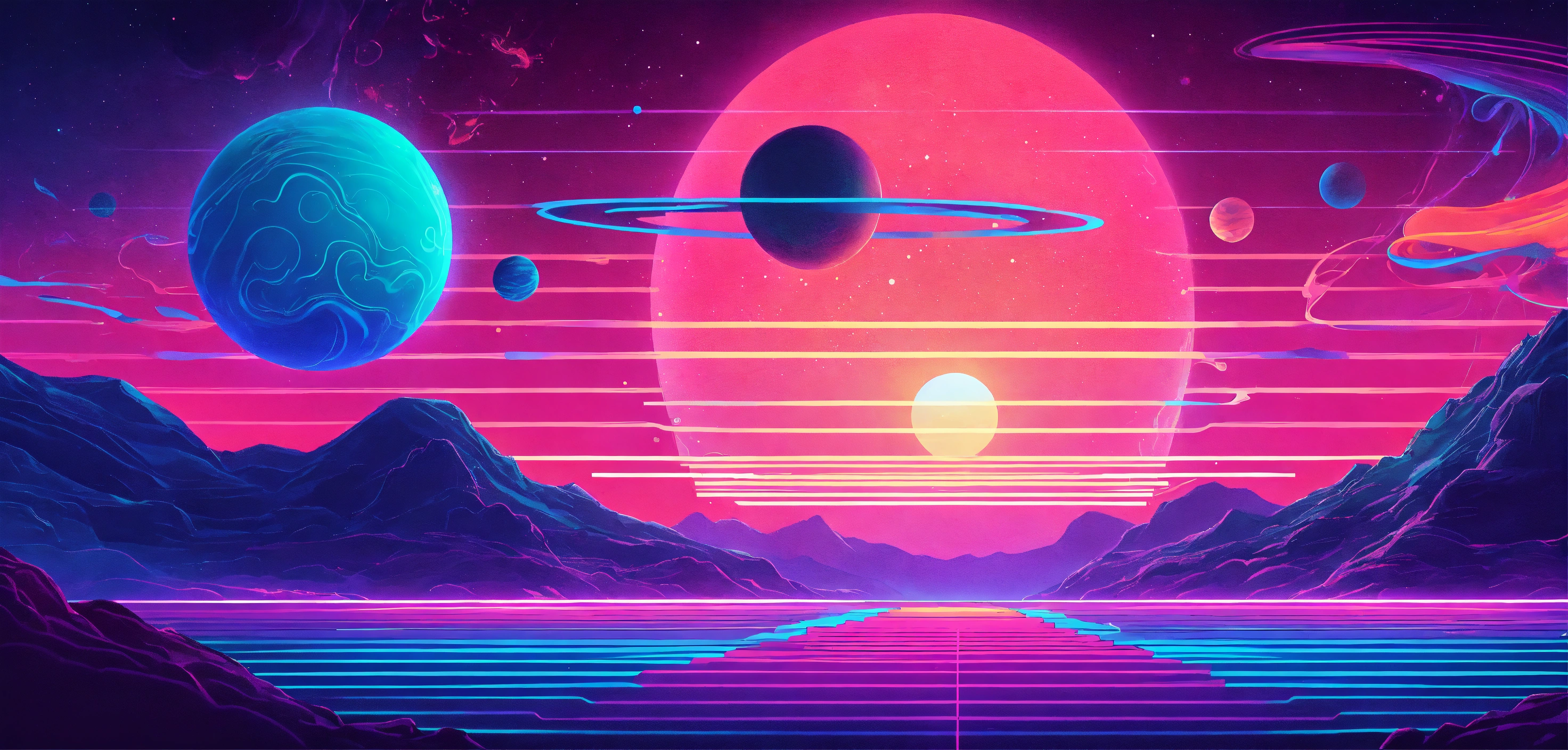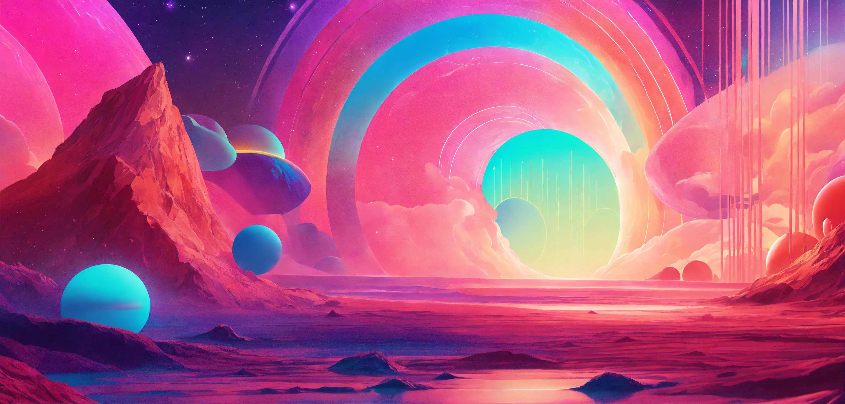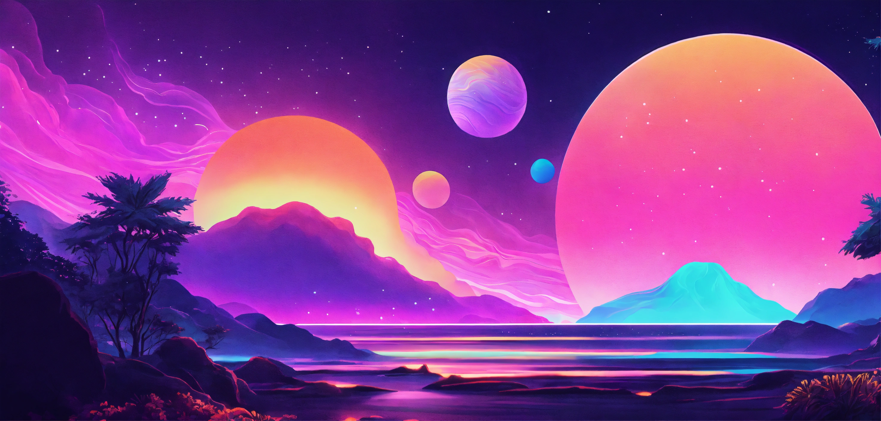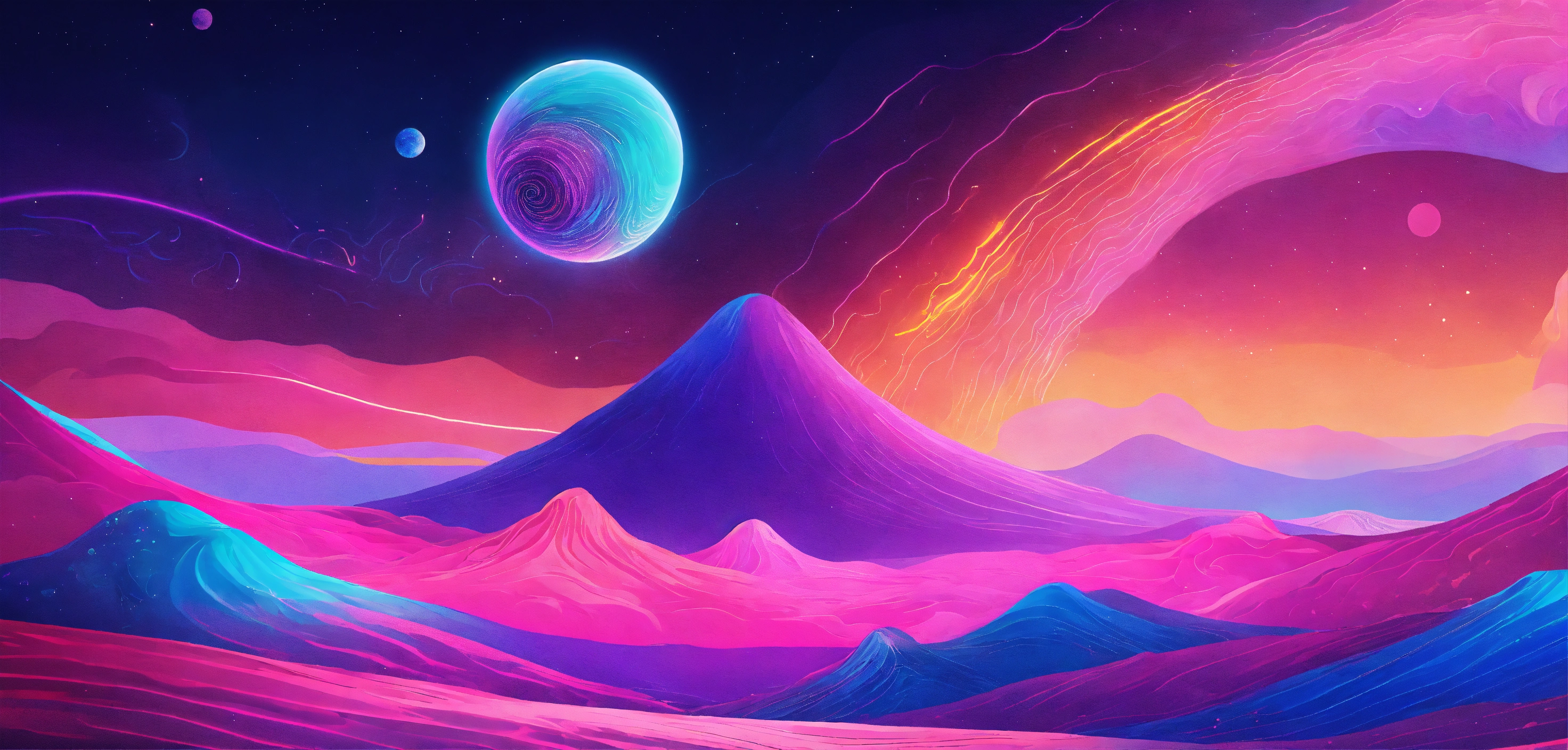 In psychic waves graphics, patterns serve as calming, even spiritual elements. pastels and neons abound. and fonts with thin lines, surreal curves, and neon-light shapes help communicate expanding awareness and bold journeys into mental, emotional, and spiritual realms. space