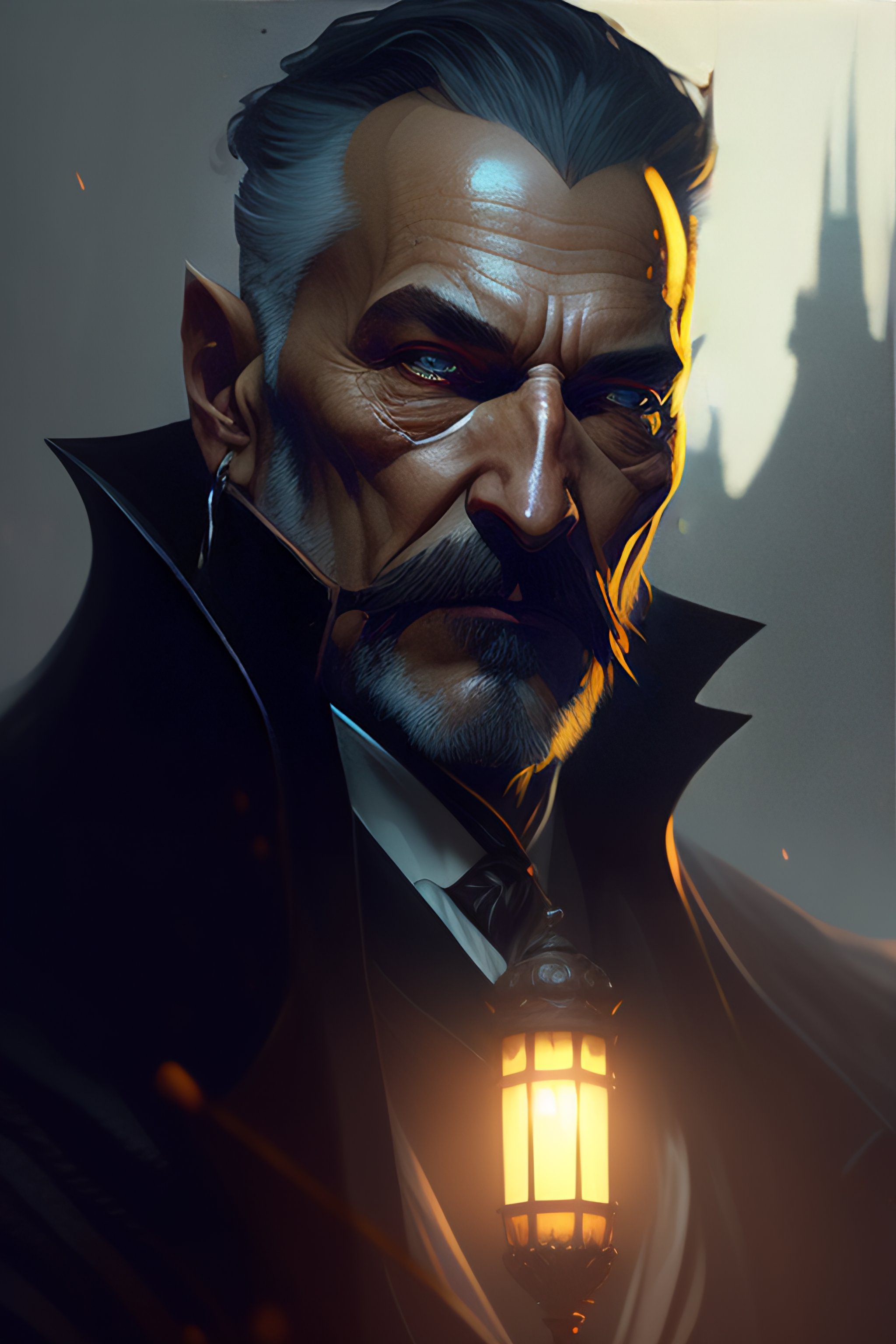 Portrait of old evil creepy oneiric, unsettling fantasy medieval businessman, dramatic lighting, illustration by greg rutkowski, yoji shinkawa, 4k, digital art, concept art, trending on artstation