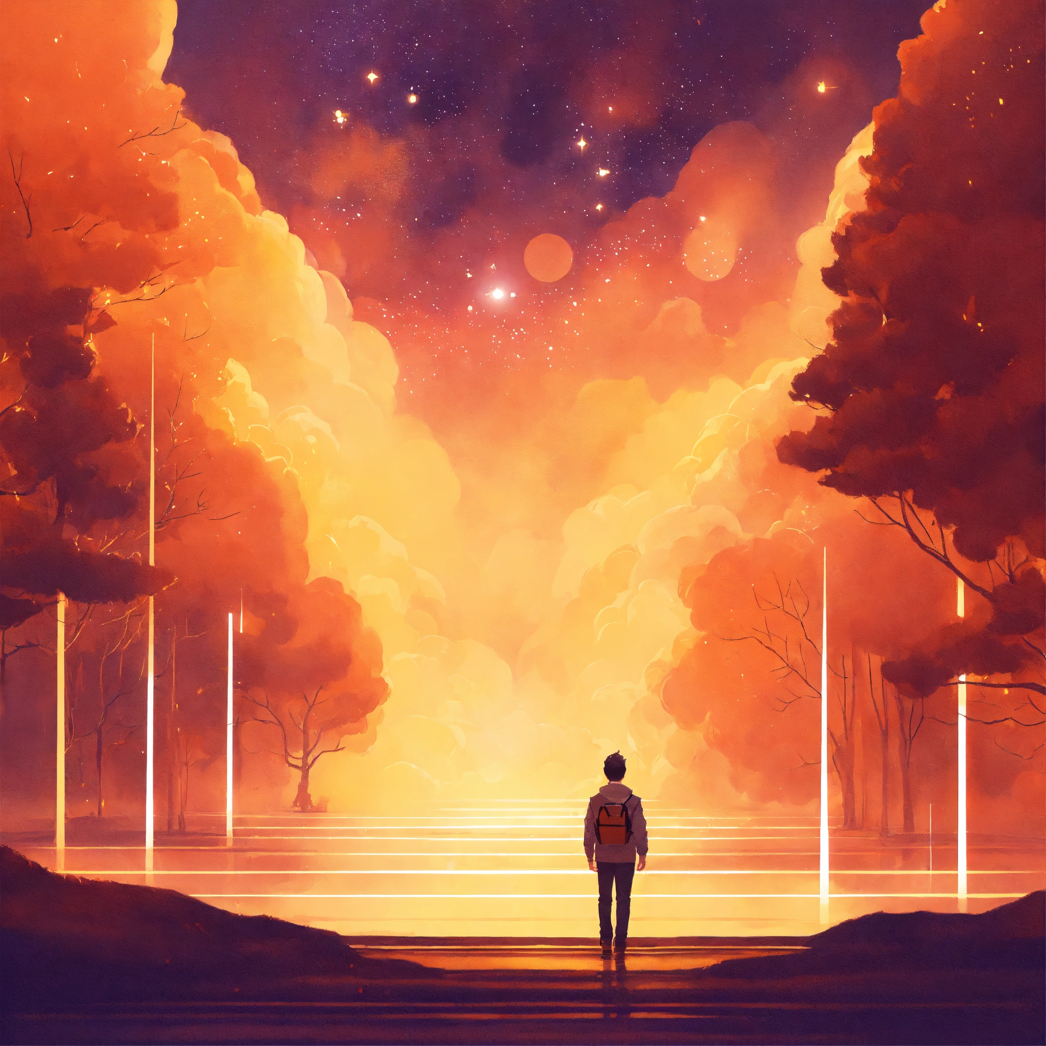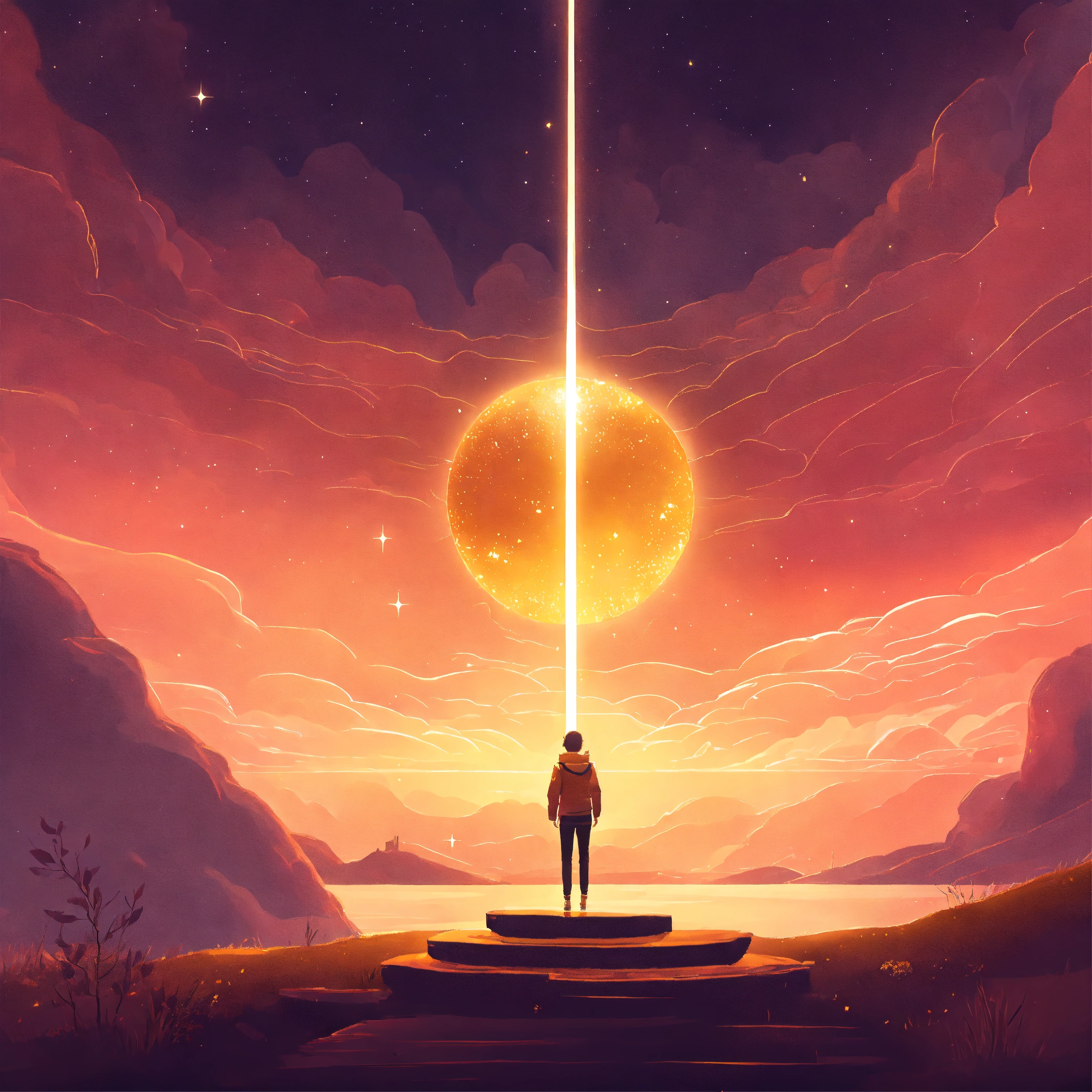 I am presence, light, illumination, golden light, divine, sci fi, abstract, nature cozy webpage background hero image for adorable platform modern minimalist illustration
