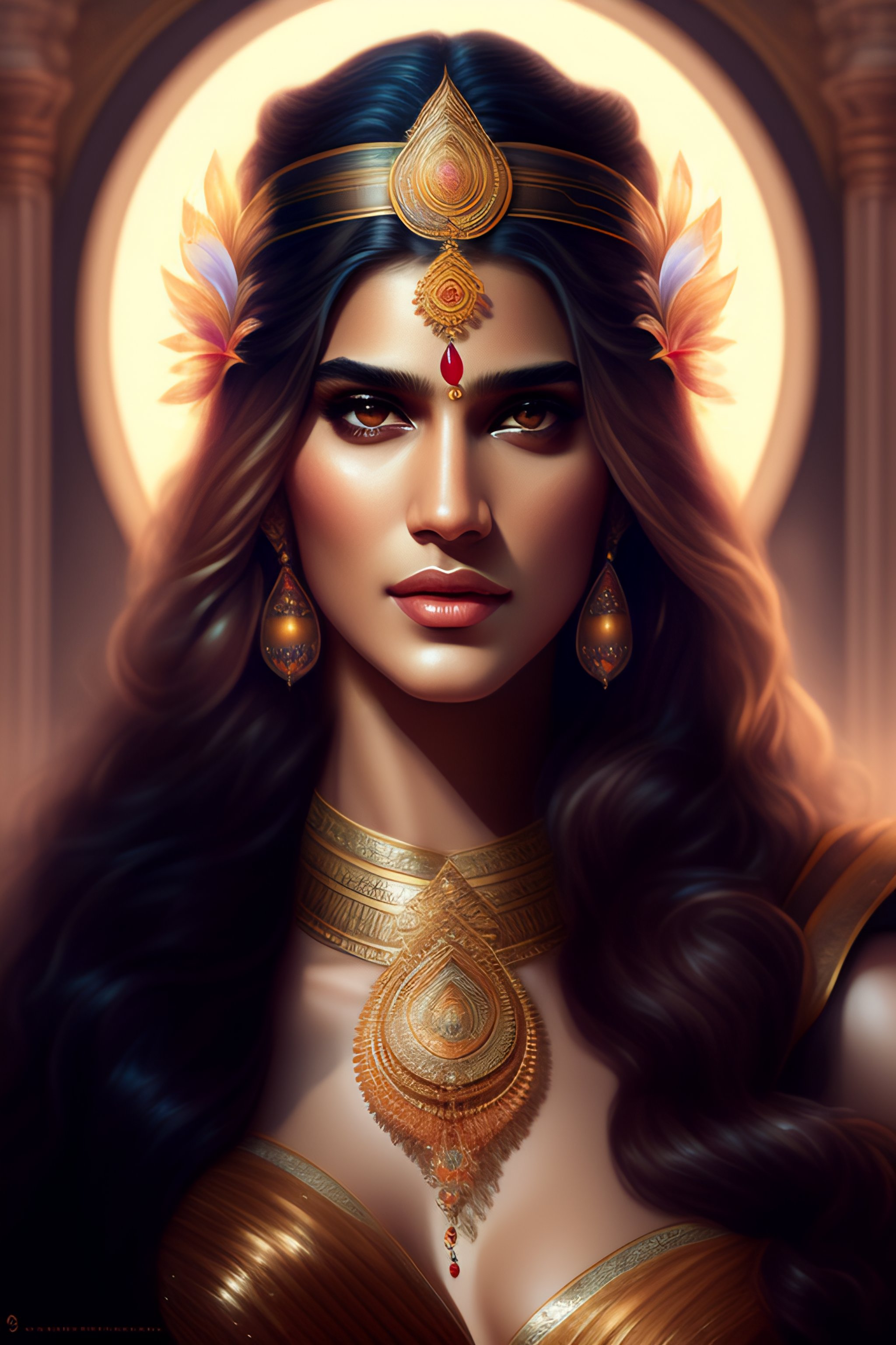 Kriti sanon as an extremely beautiful greek goddess, gorgeous, fantasy, intricate, elegant, highly detailed, digital painting, 4k, hdr, concept art, smooth, sharp focus, illustration, art by artgerm and h r giger and alphonse mucha