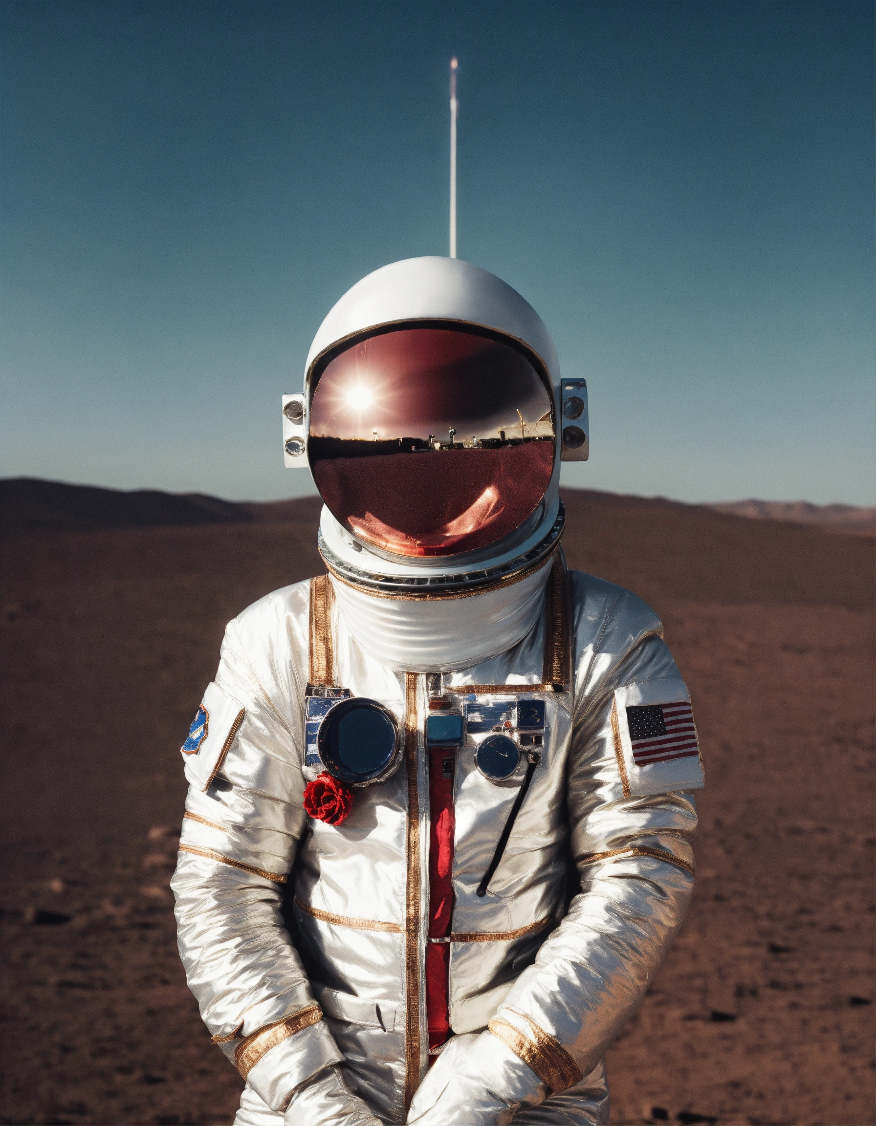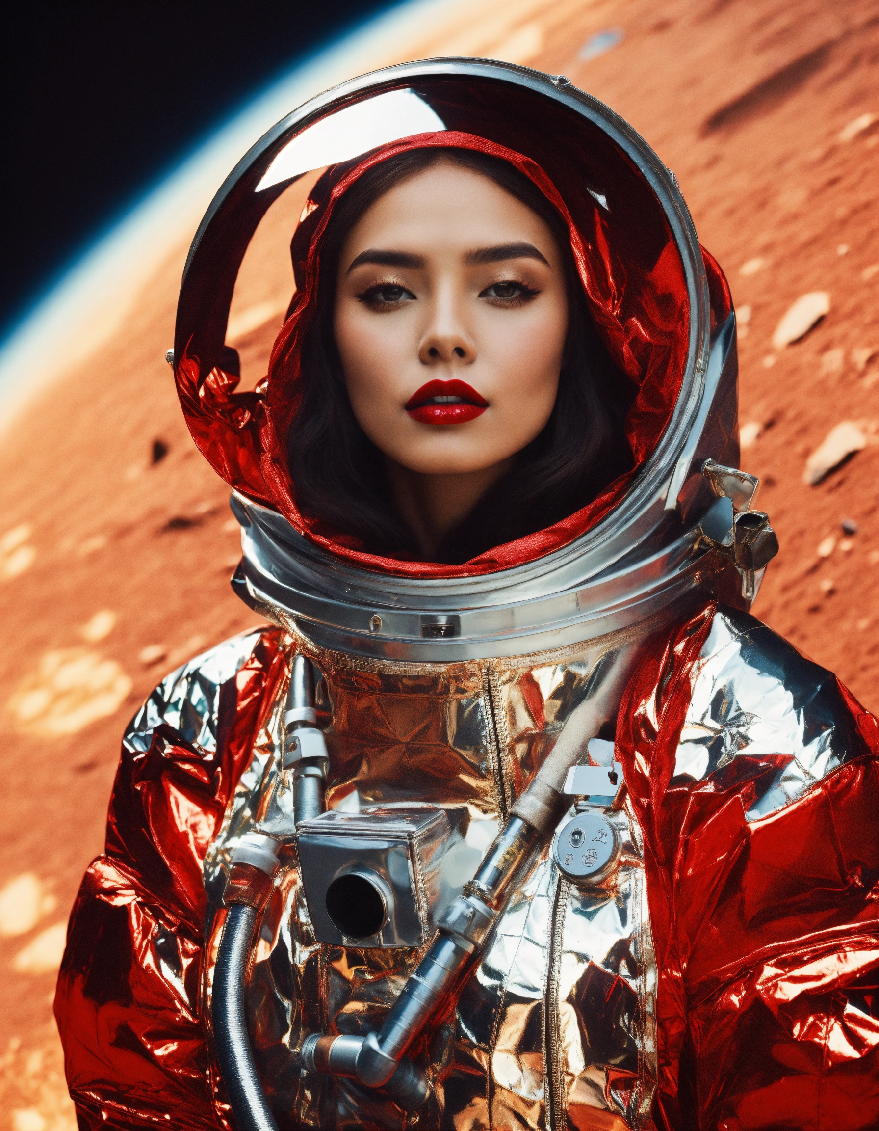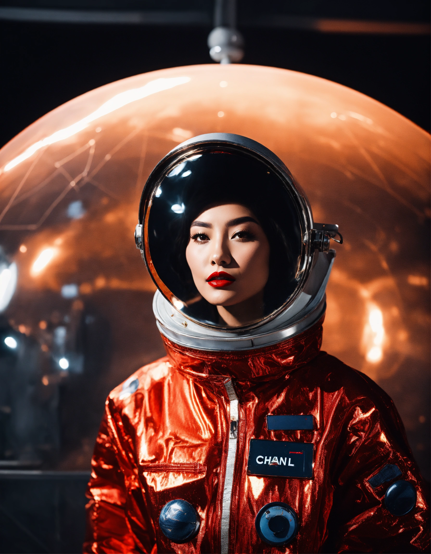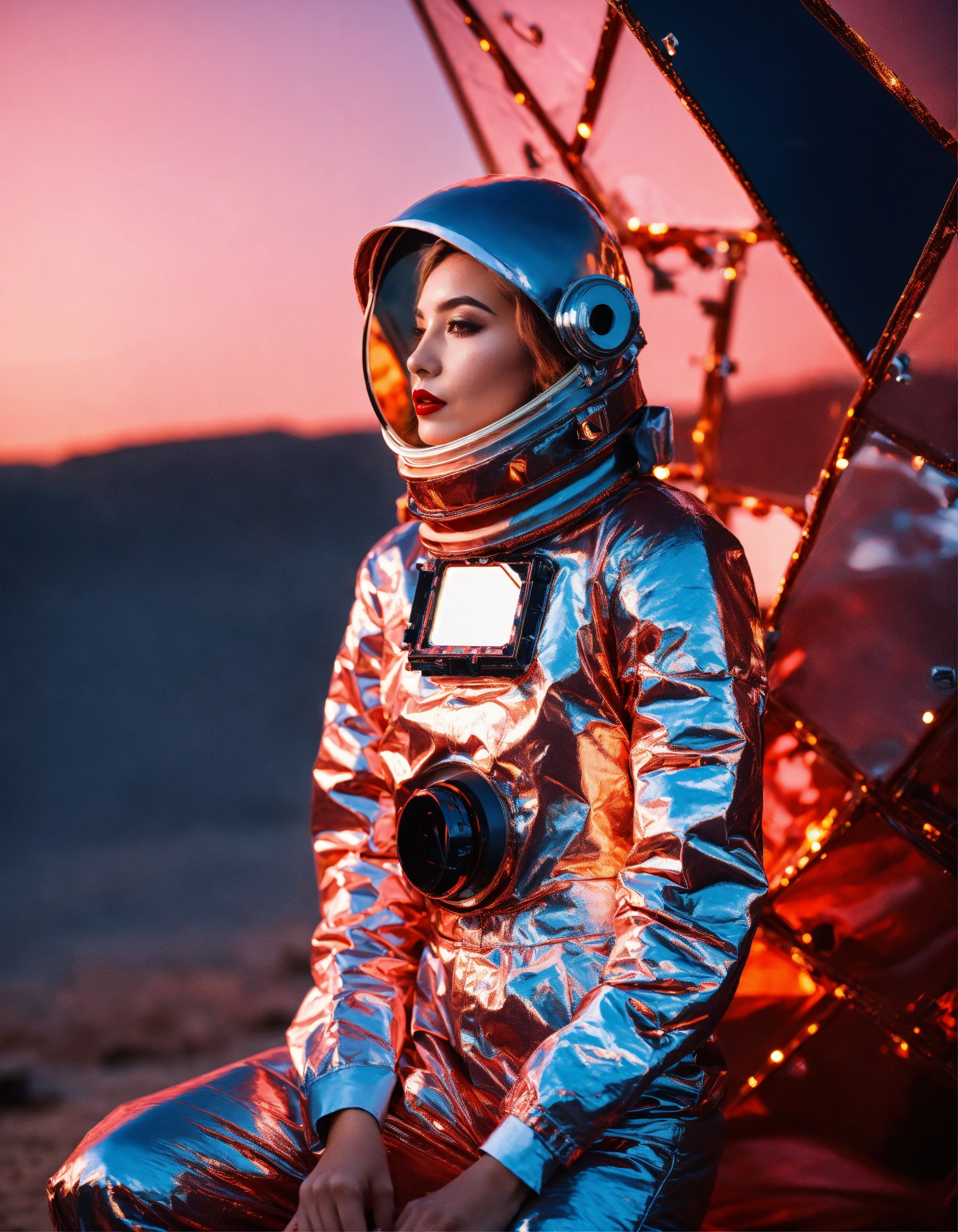 Space satellite kerosene mirror minimalist bisht chanel suit solar panel tin foil red lipstick model