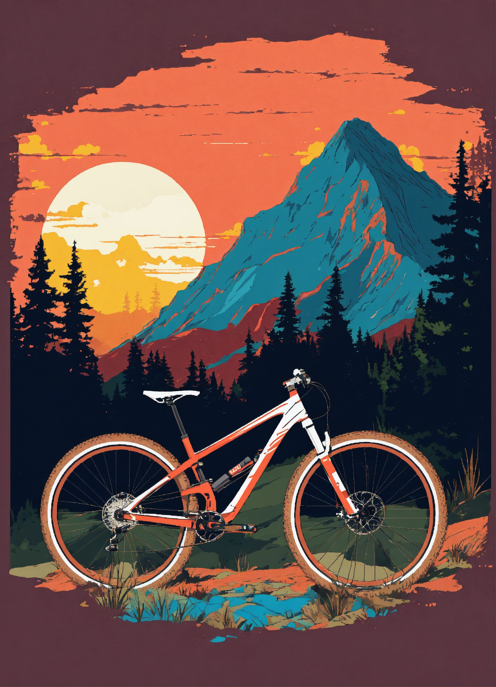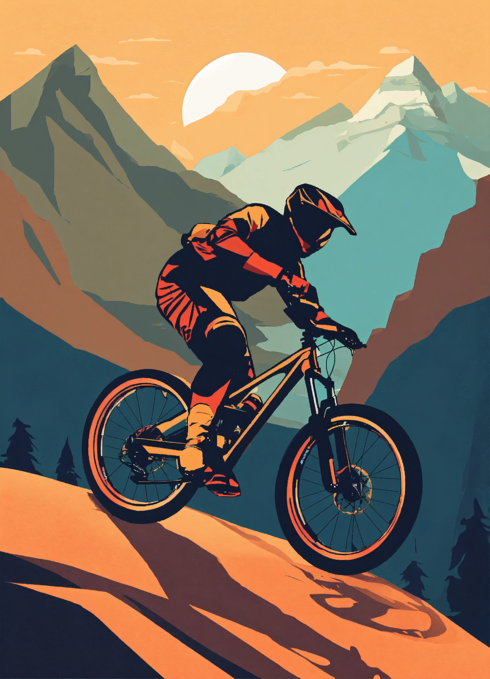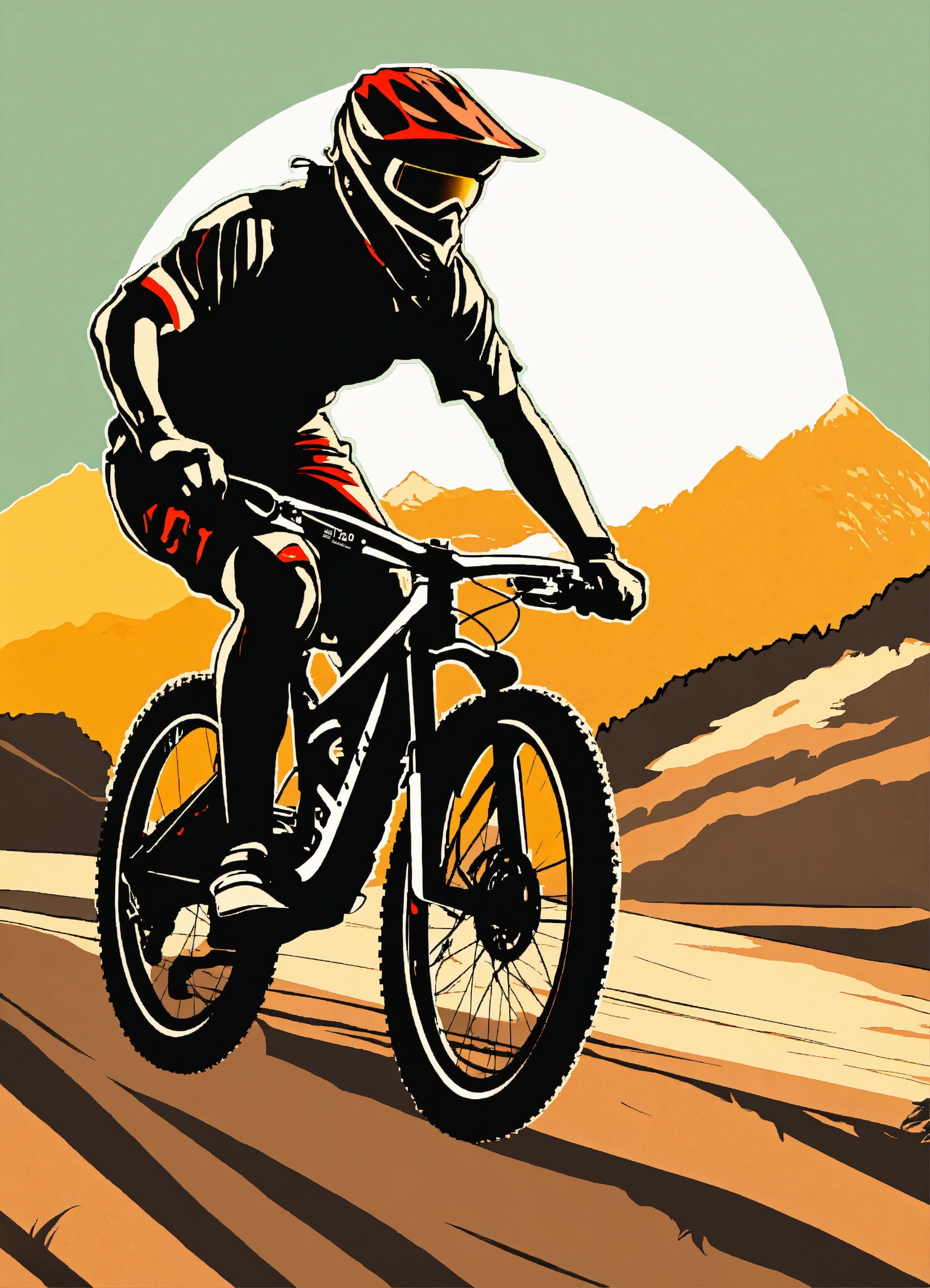 Siluet mountain bike, downhill, flat color, 2 color, vector, white back ground, t-shirt sticker, vector art, 8 k