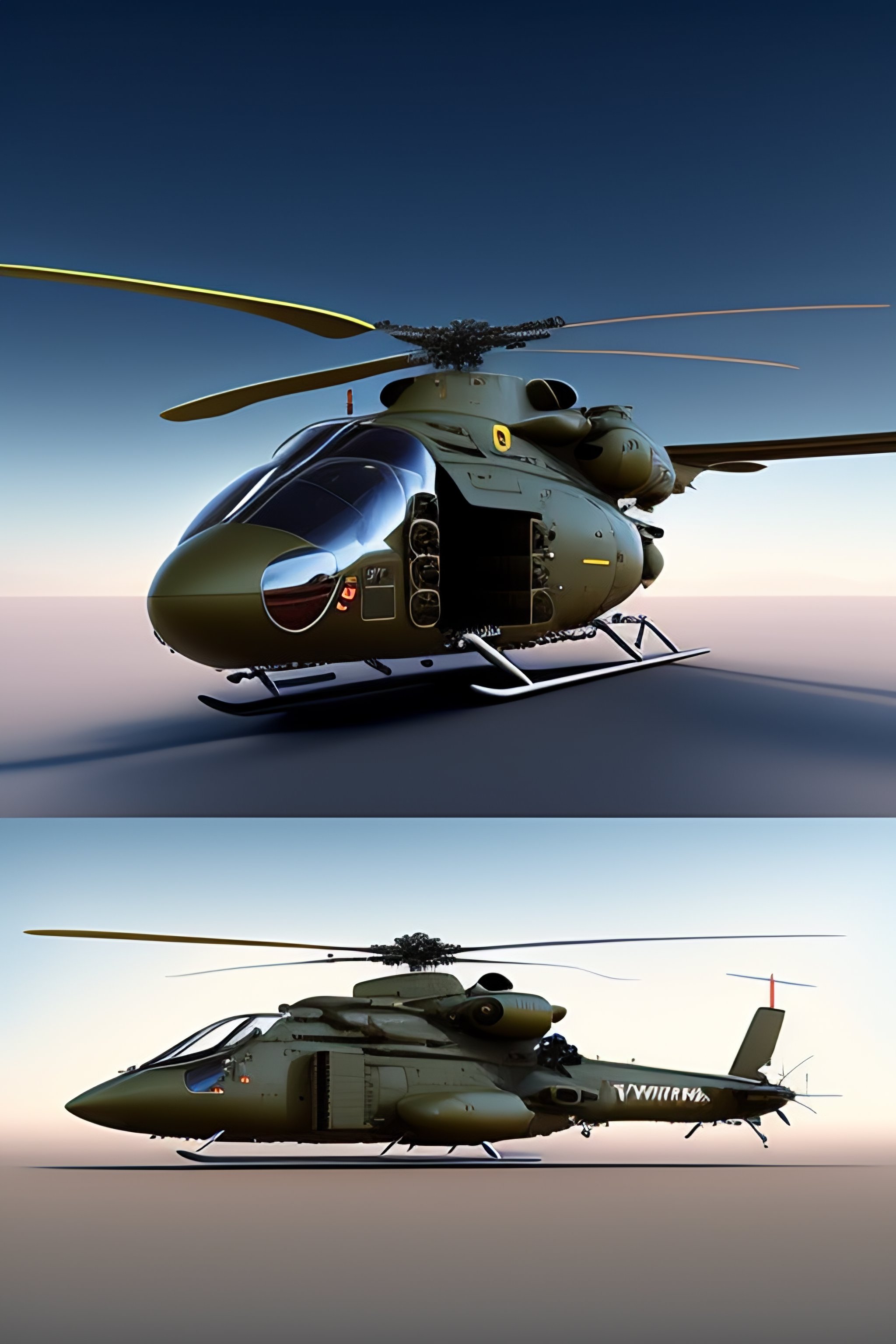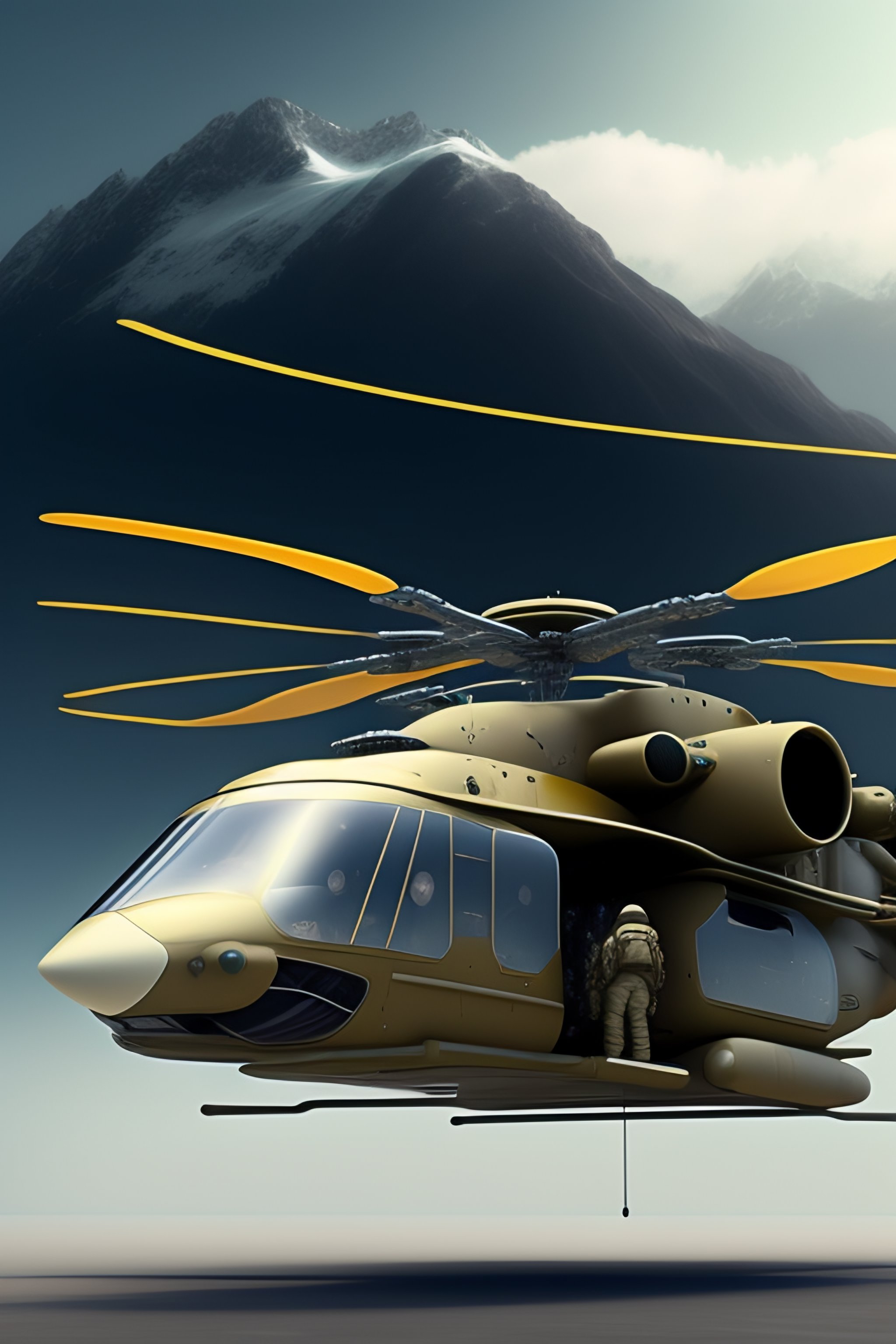 Futuristic military cargo helicopter concept art