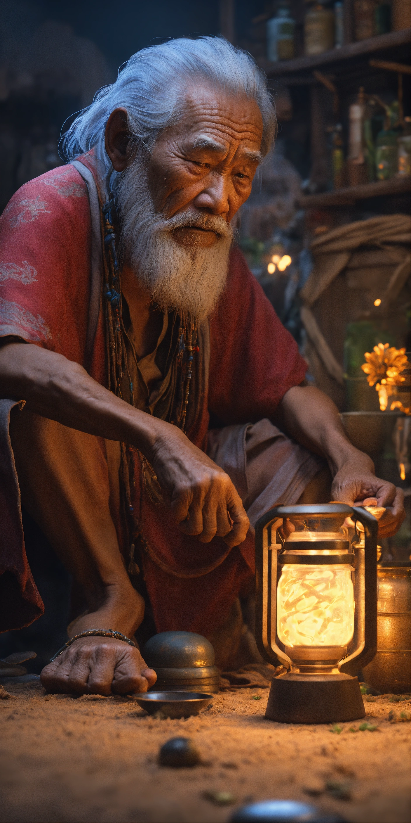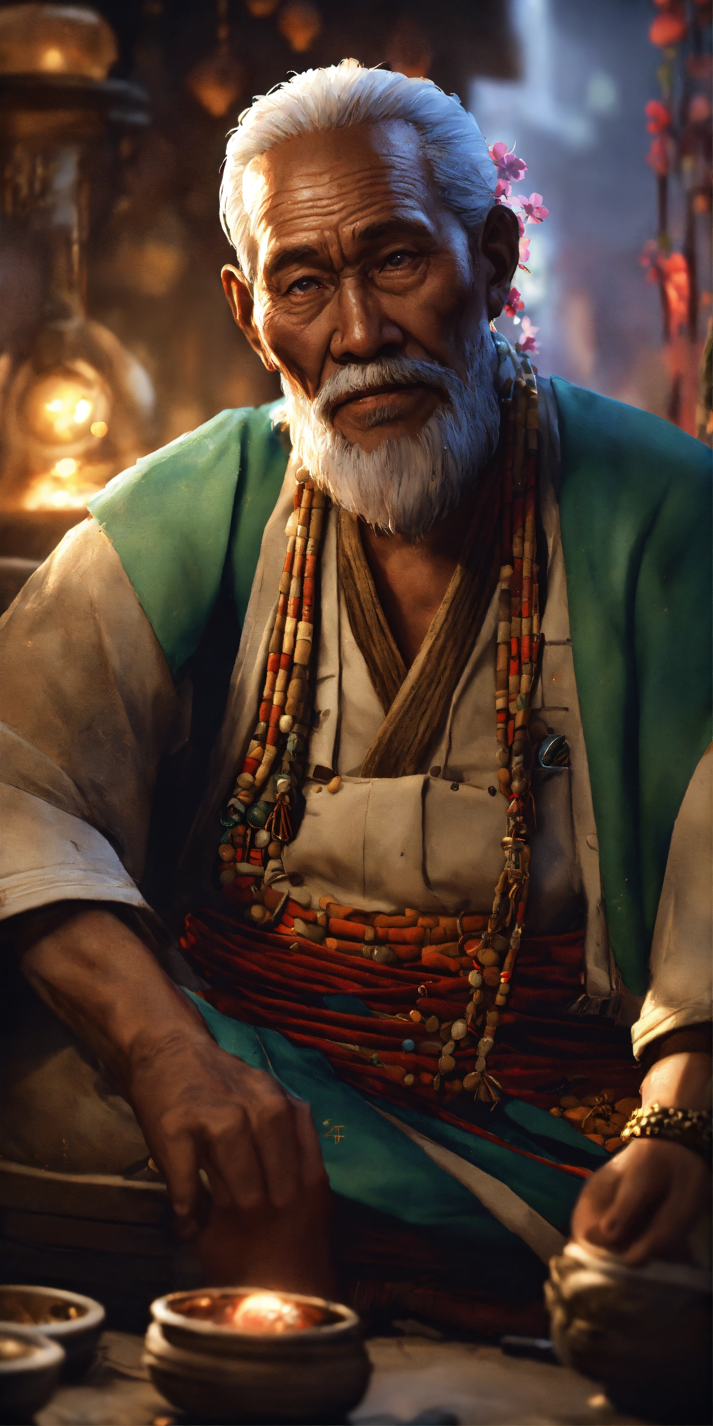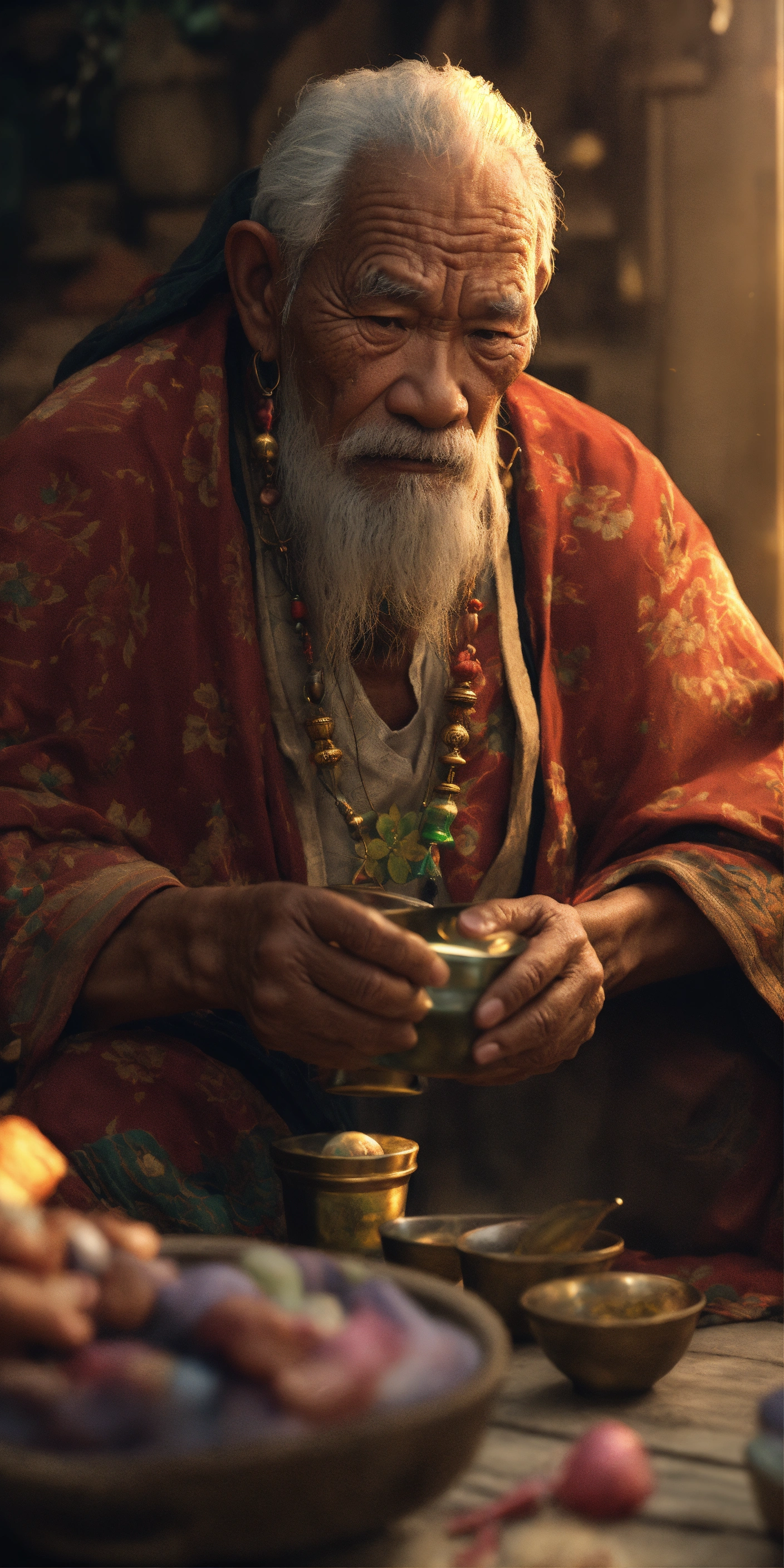 Pilipino albularyo dirty oldman, traditional healer giving medicine, old man philippines, intricate, sharf focus, concept art, artstation, fantasy, octane render, cinematic lighting, otherworldy